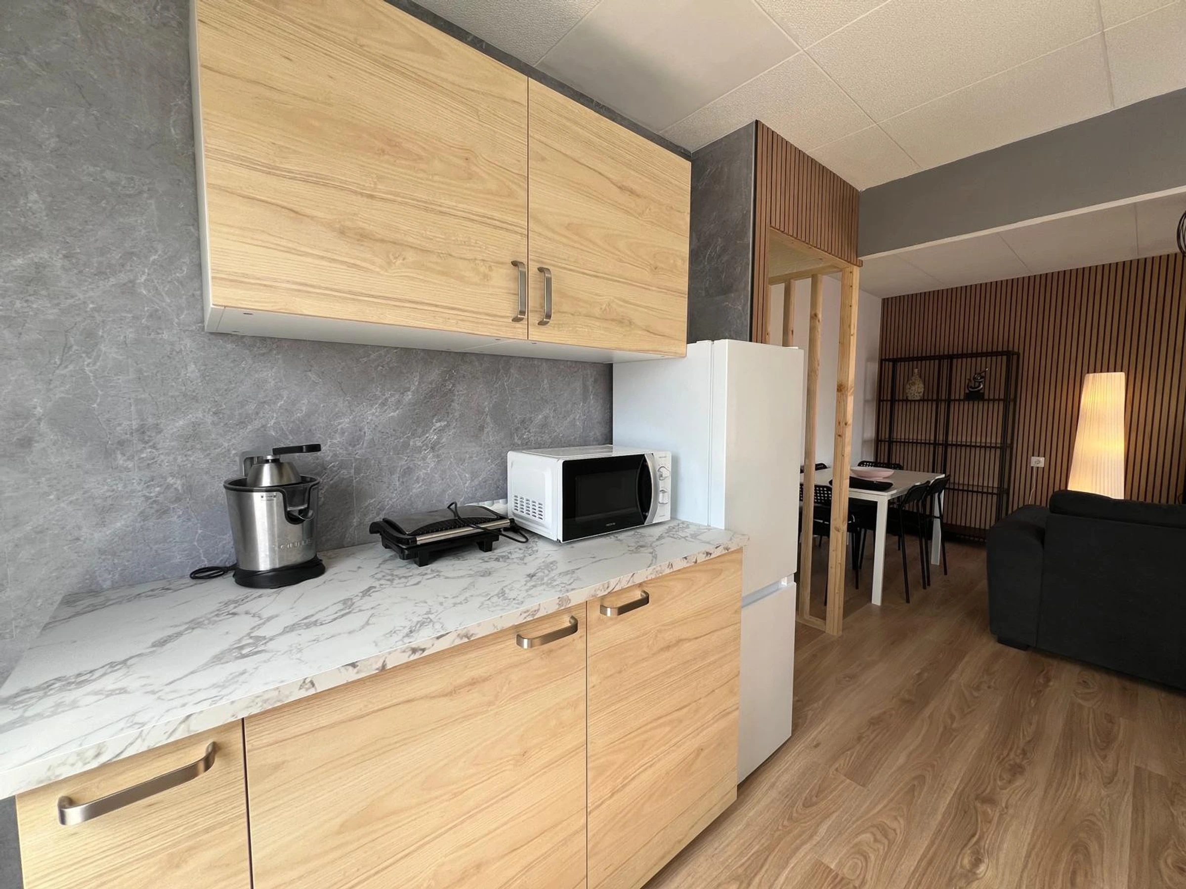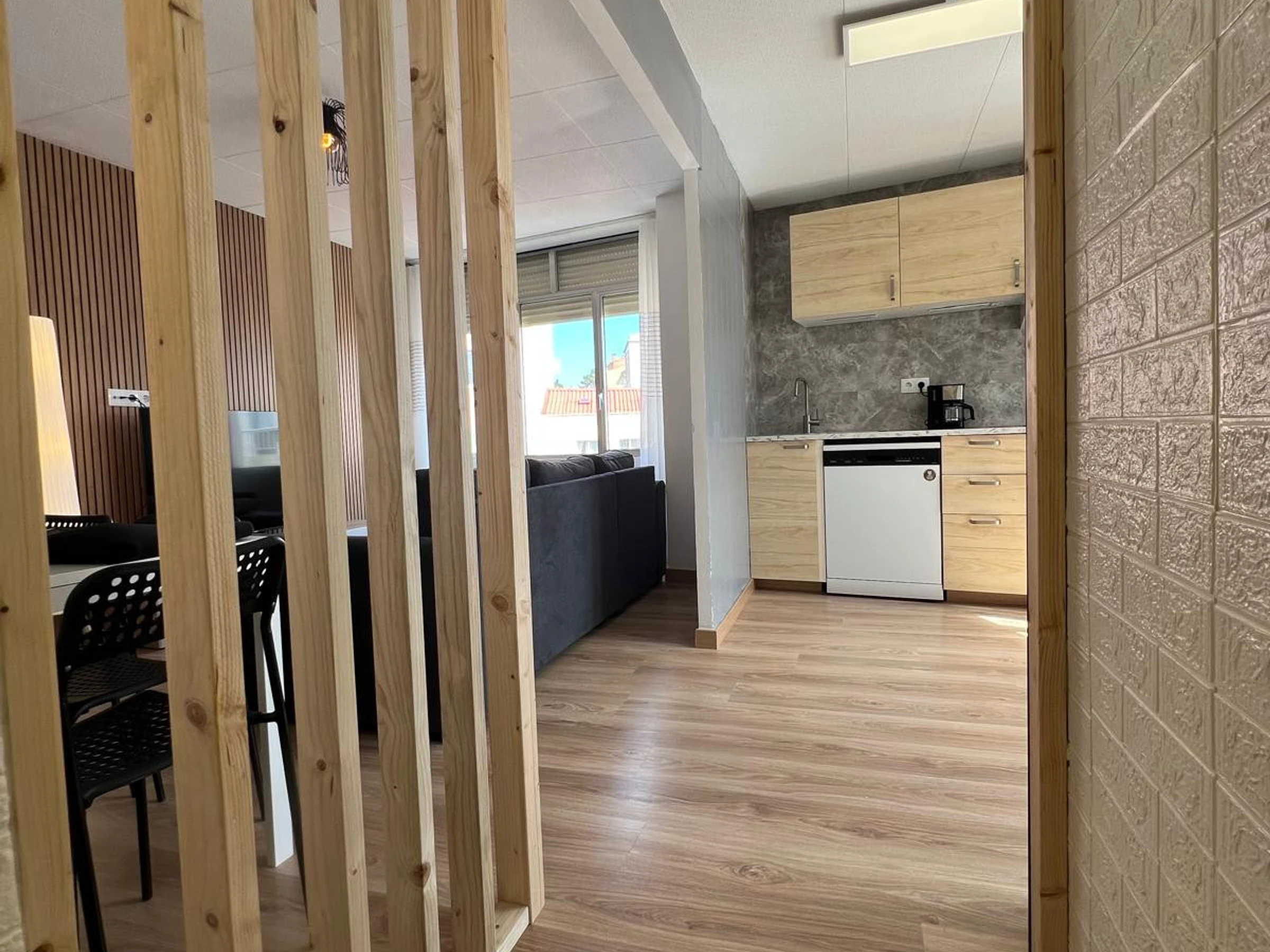 Die Wohnung mit Meerblick verfügt über ein lichtdurchflutetes Wohn-Esszimmer, das mit einem gemütlichen Stil eingerichtet und mit einem bequemen Sofa und Fernseher ausgestattet ist, ideal zum Entspannen nach einem Tag voller Erkundungen der Umgebung. Die moderne Küche ist vollständig ausgestattet mit allem Notwendigen, damit Sie sich wie zu Hause fühlen, einschließlich Geschirrspüler, Filterkaffeemaschine und einem umfassenden Küchengeschirr.
