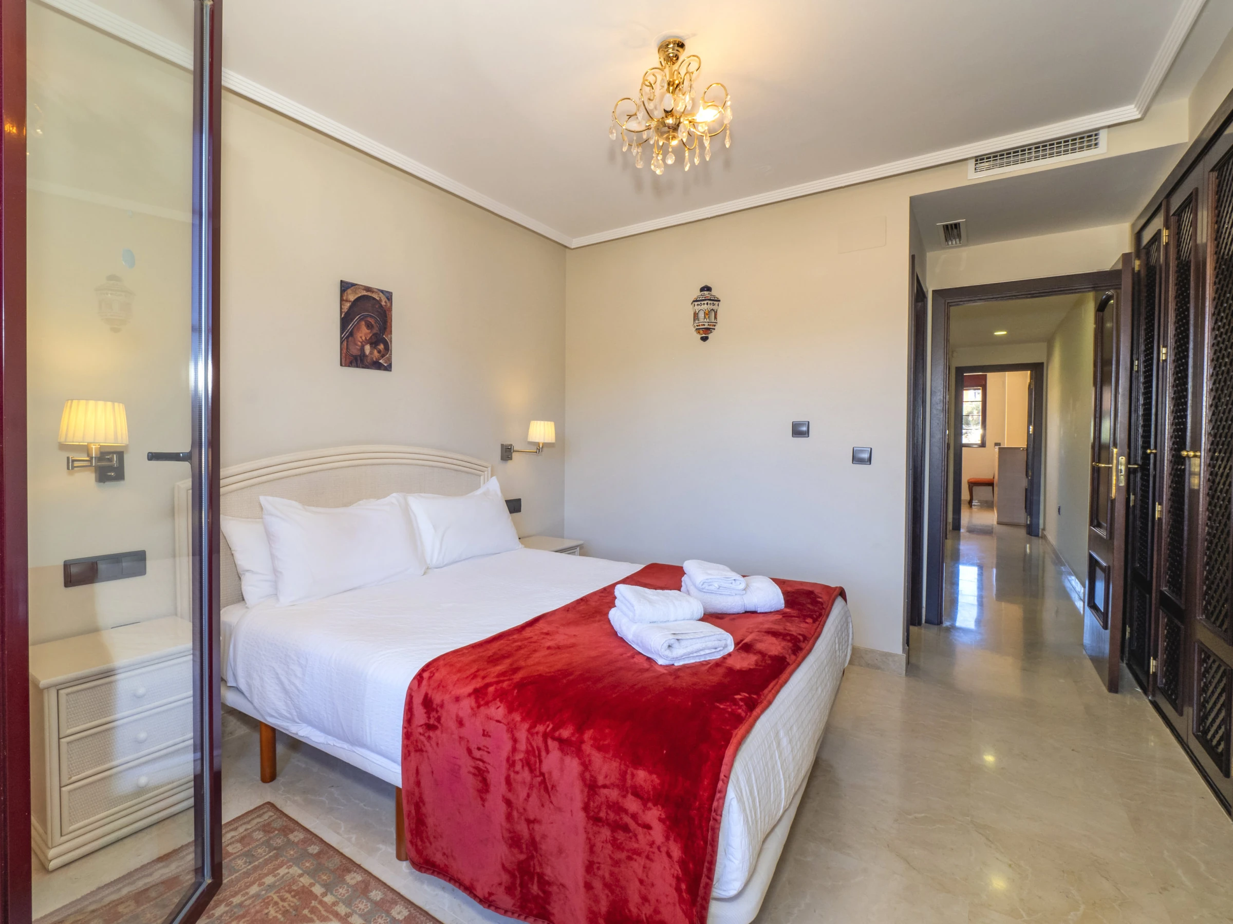 Genießen Sie einen unvergesslichen Aufenthalt in unserer eleganten Erdgeschosswohnung, die sich in der prestigeträchtigen Zone von Soto de Marbella befindet, direkt neben dem renommierten Golfplatz und Sozialclub von La Mairena. Perfekt für bis zu 4 Personen, bietet diese Unterkunft Komfort in einer privilegierten Naturumgebung mit direktem Zugang zu Sportanlagen auf höchstem Niveau. Nutzen Sie die Padel- und Tennisplätze, tauchen Sie in das Golferlebnis nur 1 km entfernt ein und erfrischen Sie sich in den Gemeinschaftspools unter der Sonne der Costa del Sol.