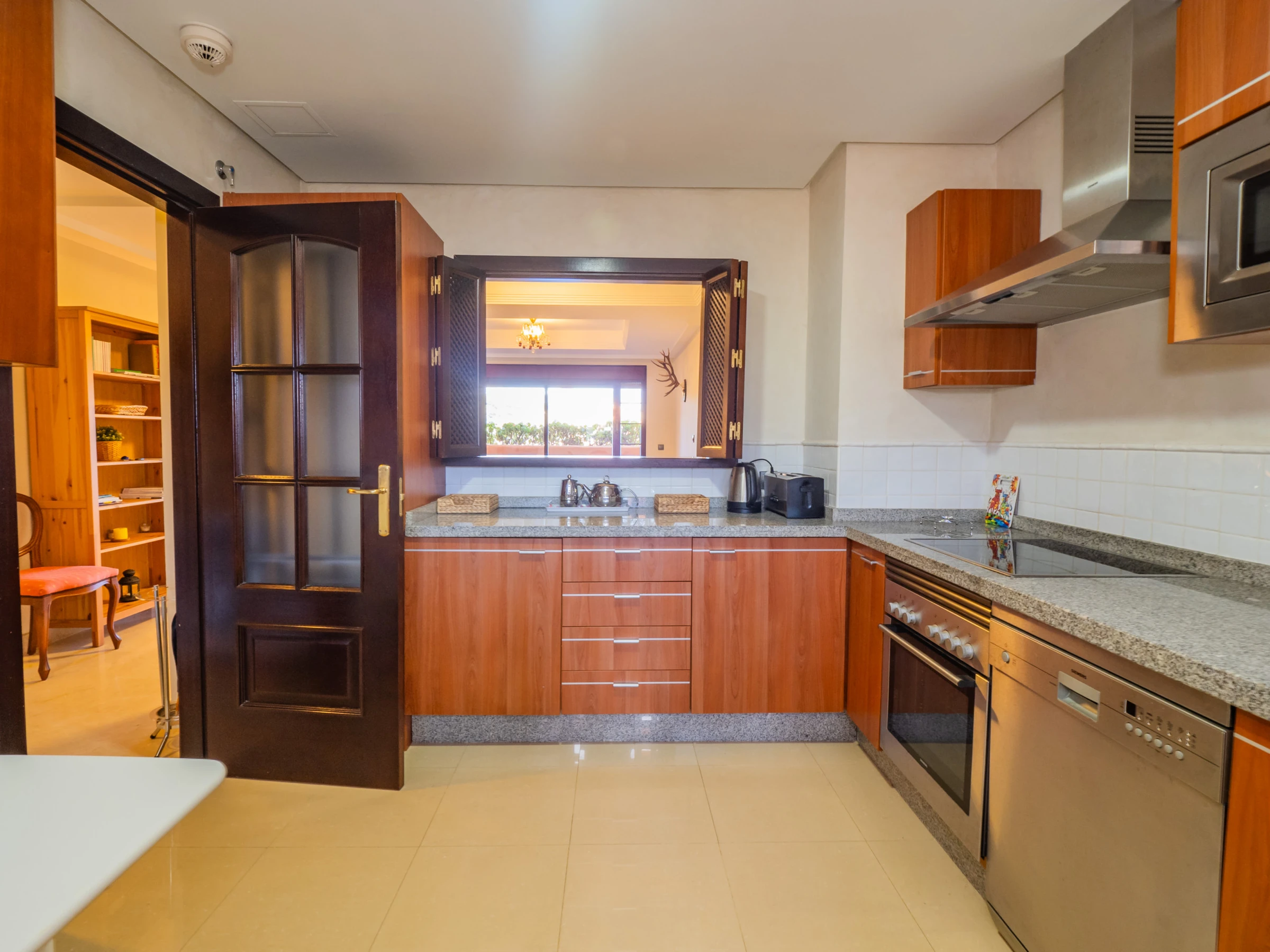 Der Innenbereich zeichnet sich durch einen hellen Wohn-Essbereich aus, der sich zu einer 15 m² großen Terrasse mit Panoramablick auf die Berge öffnet, ideal zum Entspannen oder zum Teilen unvergesslicher Momente. Die separate, vollständig ausgestattete Küche mit Glaskeramikkochfeld, Backofen, Mikrowelle, Geschirrspüler und kleinen Haushaltsgeräten lädt ein, Ihre Lieblingsgerichte mit größtem Komfort zuzubereiten.