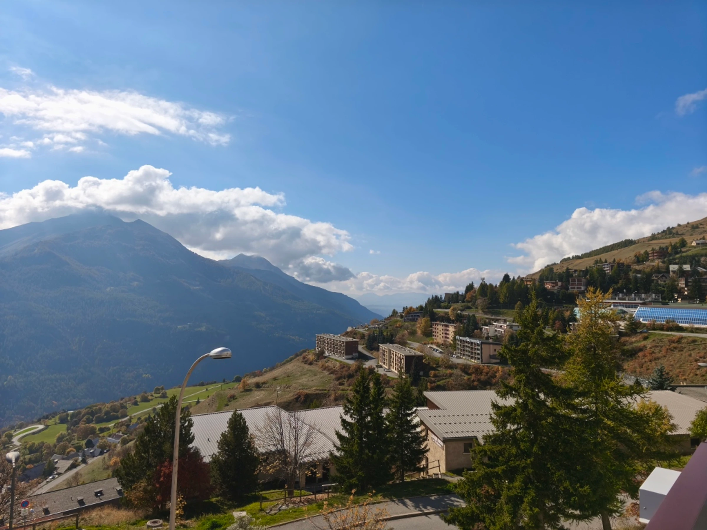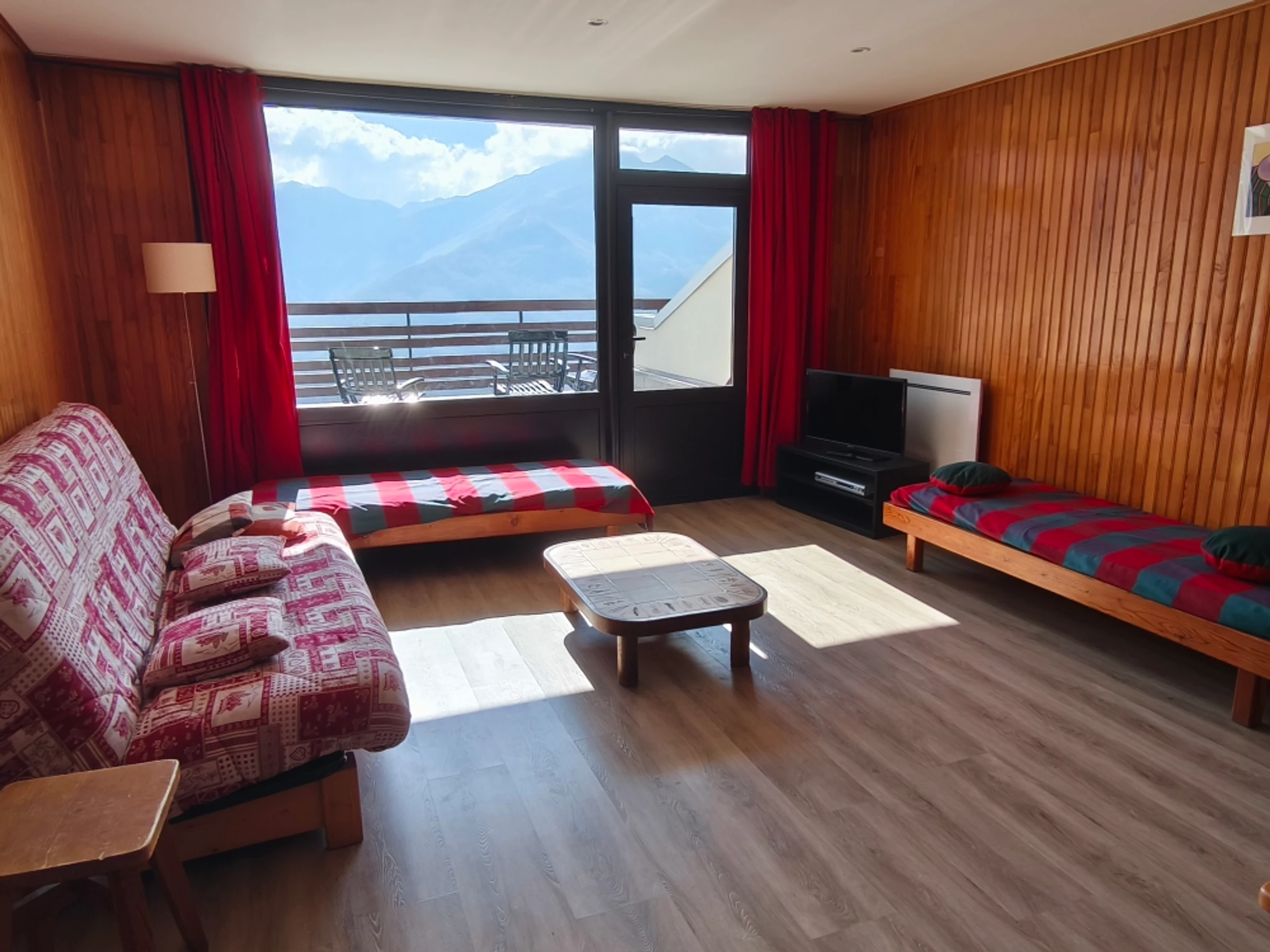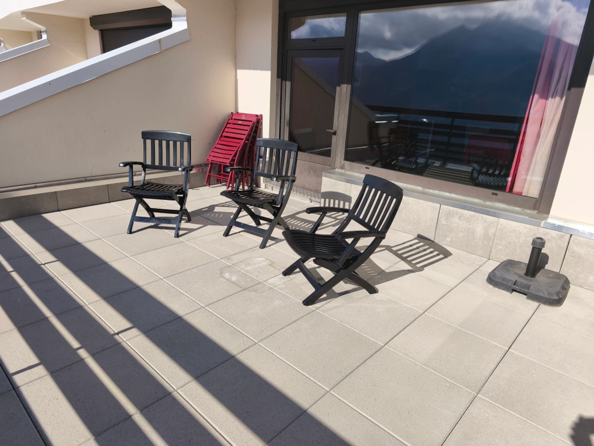 2-Zimmer-Ferienwohnung mit Schlafnische, Südterrasse mit Blick ins Tal.