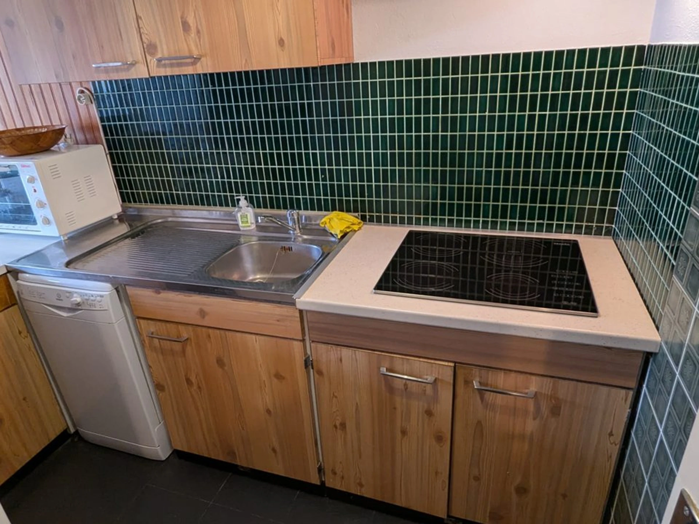 Küche mit Geschirrspüler, Backofen, Mikrowelle und Senseo-Kaffeemaschine