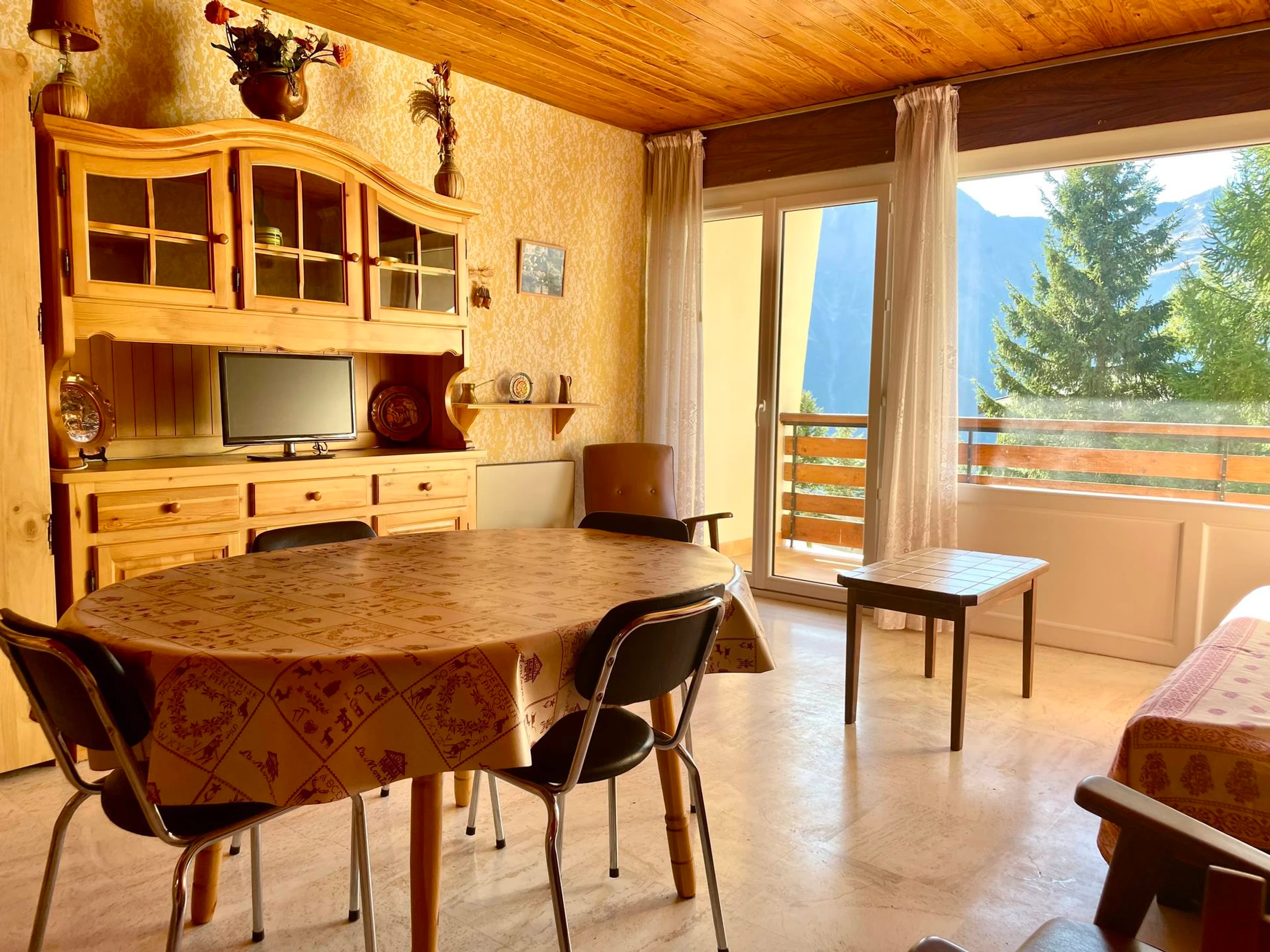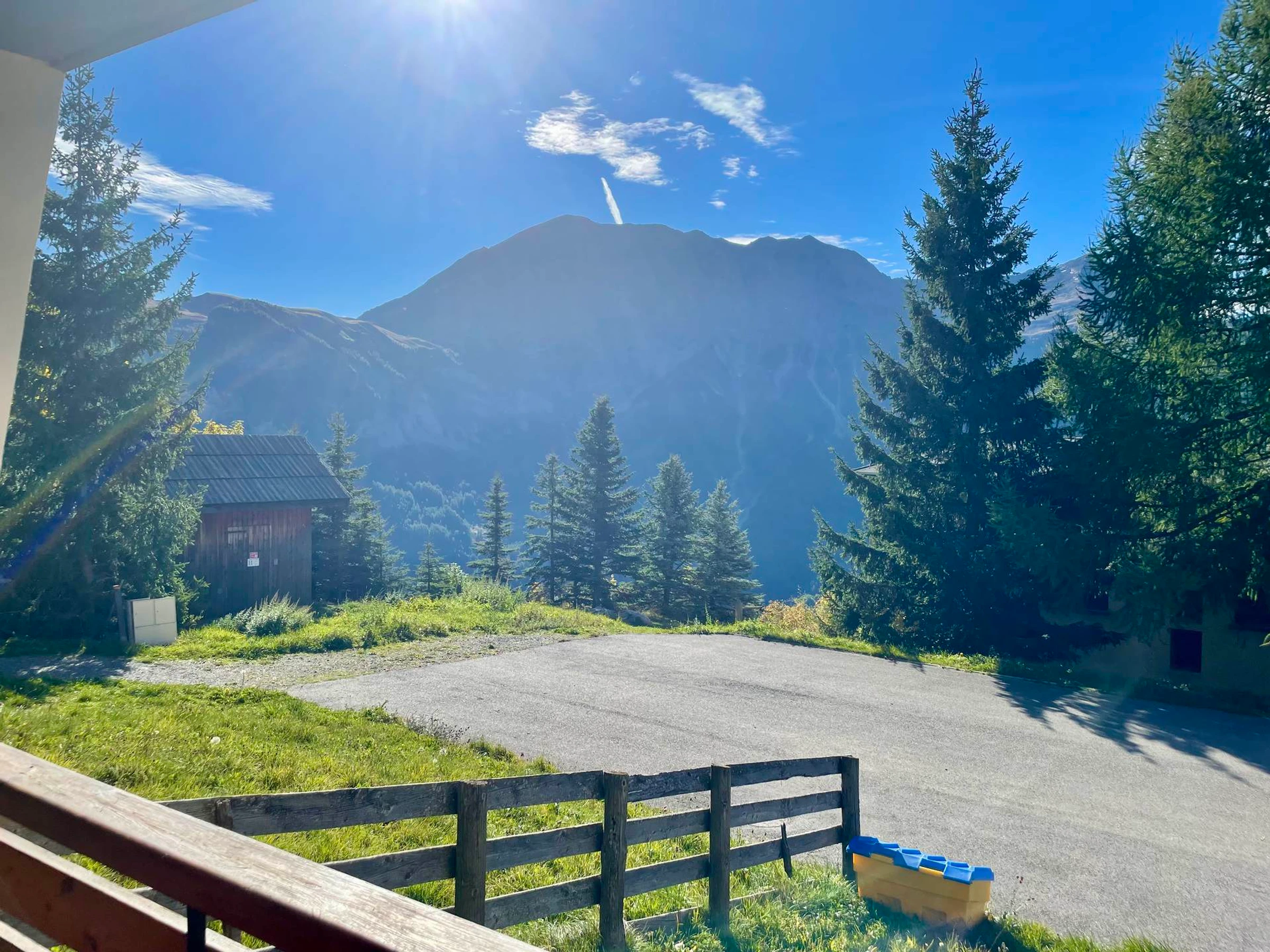 Studio-Apartment im Erdgeschoss; Südbalkon mit Blick ins Tal.