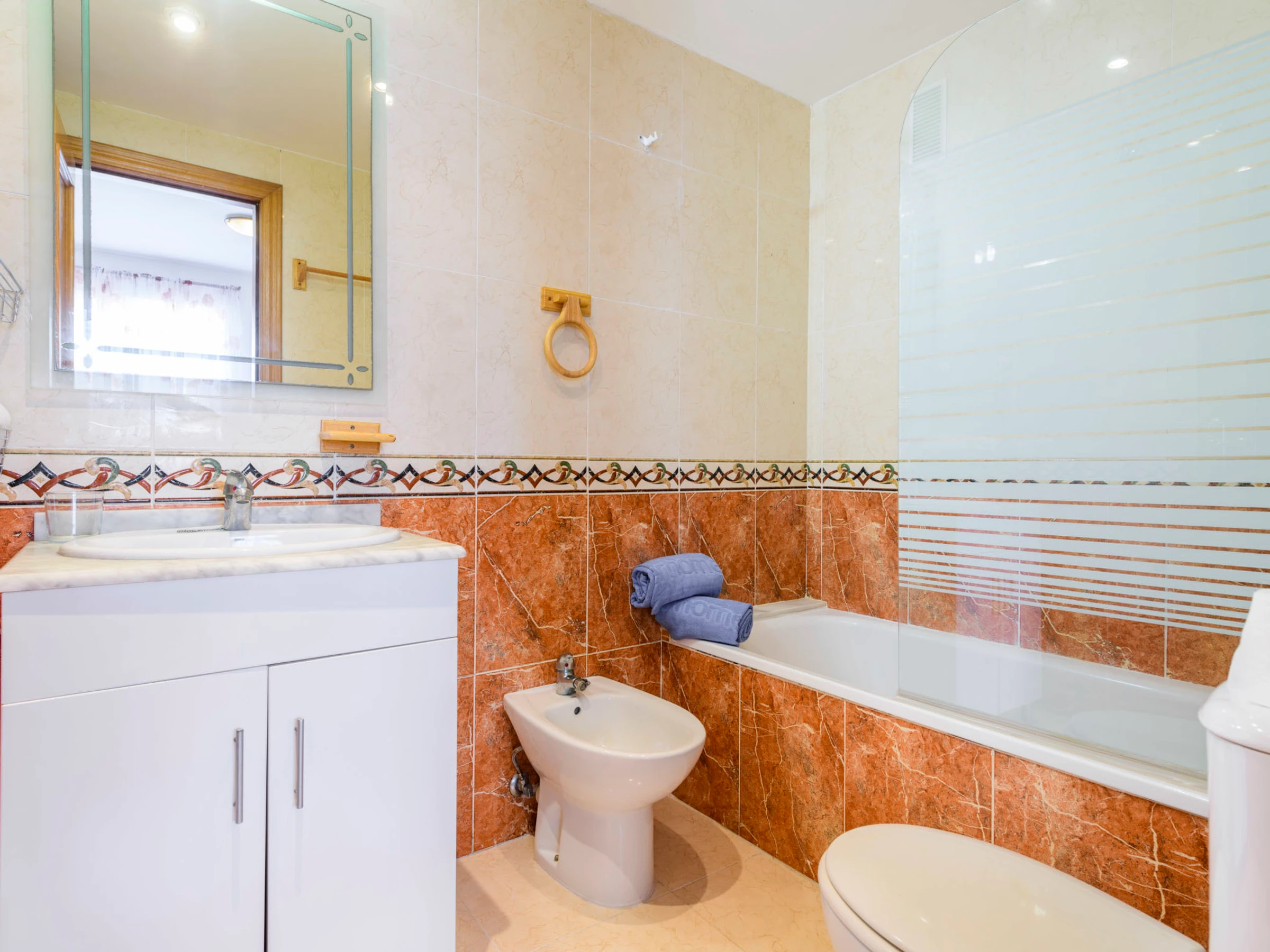 "Acapulco III", 3-Zimmer-Wohnung 60 m2. Einfach und komfortabel eingerichtet: Wohn-/Esszimmer mit 1 Diwanbett (180 cm, Länge 135 cm), Esstisch, Sat-TV, Flachbildschirm, Klimaanlage, Ventilator und Warmluftheizung. Ausgang zur Terrasse. 1 Zimmer mit 2 Betten (90 cm, Länge 190 cm). 1 Zimmer mit 1 franz. Bett (135 cm, Länge 190 cm), Klimaanlage und Warmluftheizung. Küche (Backofen, 4 Glaskeramikherd Platten, Toaster, Mikrowelle, Tiefkühler). Bad/Bidet/WC, Dusche/Bidet/WC. Grosse Terrasse. Terrassenmöbel. Sicht auf das Meer und die Ortschaft. Zur Verfügung: Waschmaschine, Bügeleisen, Haartrockner. Internet (Wireless LAN, gratis). Parkplatz Nr. 44. Geeignet für Familien. 1 Haustier/Hund erlaubt. [hidden]