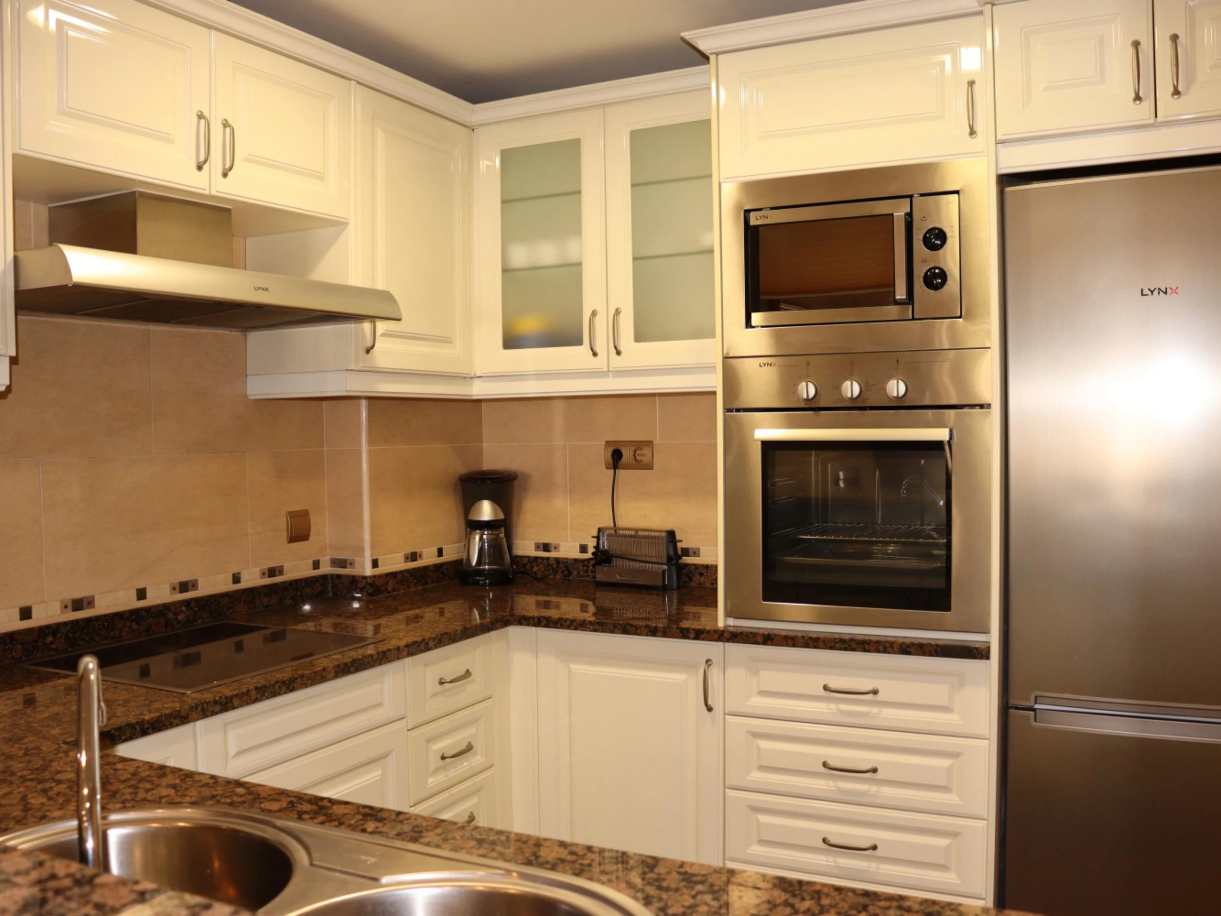 - Die Küchenzeile mit Glaskeramikkochfeld ist komplett ausgestattet mit Kühlschrank, Ofen, Mikrowelle, Geschirrspüler, Filter- und Dolce Gusto-Kaffeemaschinen, Toaster, Wasserkocher, Waschmaschine, Trockner, Geschirr und Küchenutensilien.