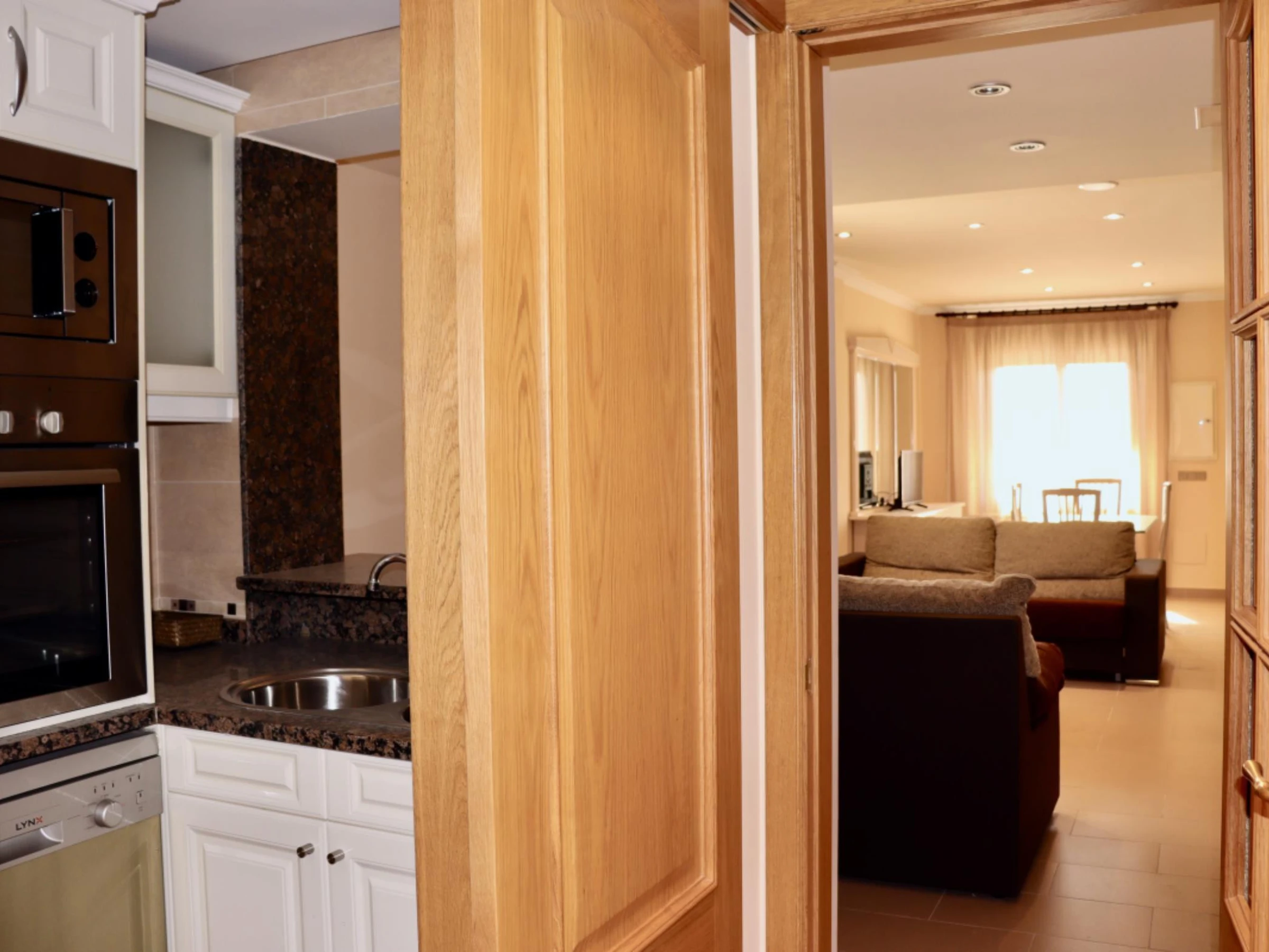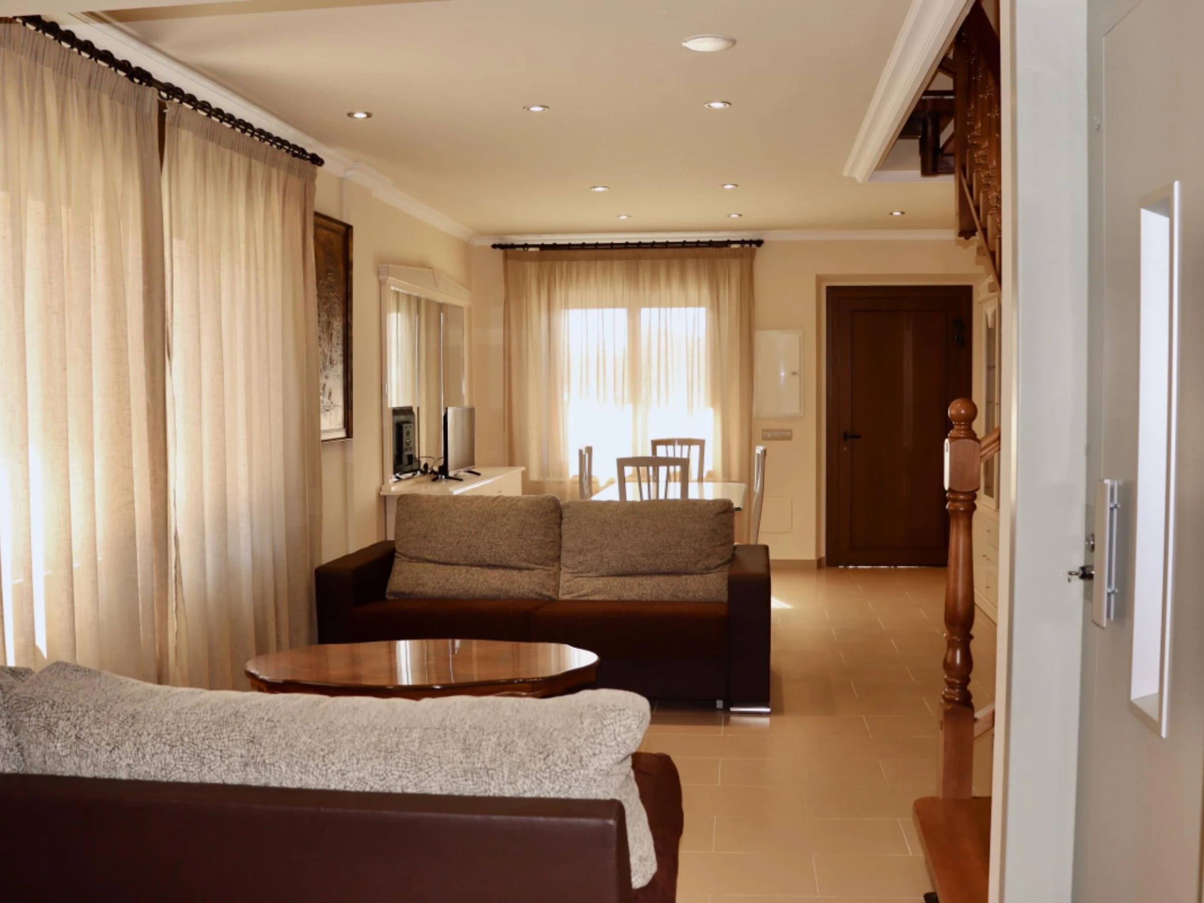 Es handelt sich um ein Reihenhaus mit zwei Etagen, das für 6 Personen ausgelegt ist. Die Aufteilung umfasst 3 Schlafzimmer, einen geräumigen Wohnbereich mit direktem Zugang zur Terrasse, eine voll ausgestattete Küchenzeile und zwei Badezimmer.