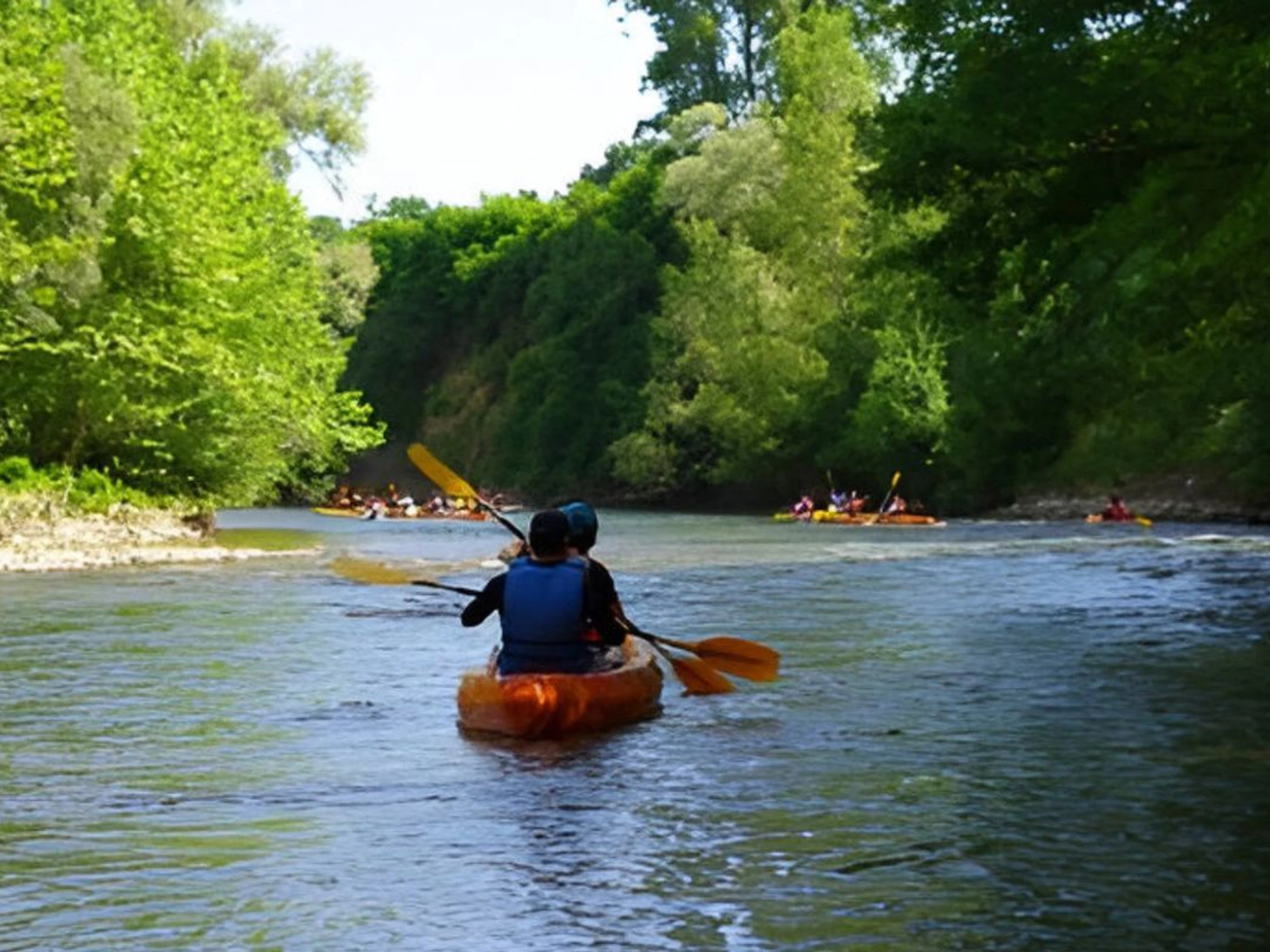 - Forellenangeln im Fluss auf dem Campingplatz.