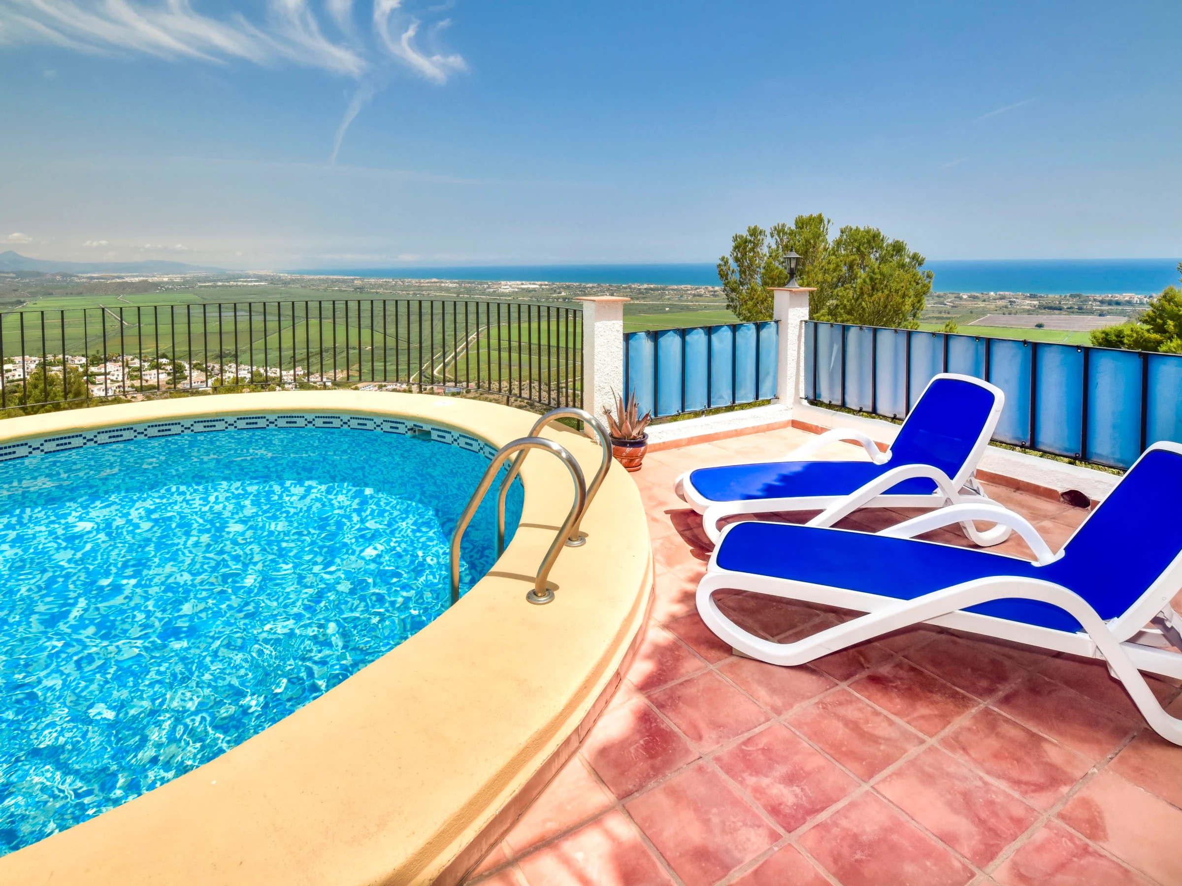 Monte Pego: Sehr schönes, gemütliches Haus "Sol y Monte", auf 2 Stockwerken. Im Ortsteil Monte Pego, ruhige, sonnige, erhöhte Lage am Hang, 8 km vom Meer. Zur Alleinbenutzung: Grundstück 1'000 m2, Schwimmbad nierenförmig (4 x 8 m, saisonale Verfügbarkeit: [hidden] - [hidden] Aussendusche, Parkplatz auf dem Grundstück. Einkaufsgeschäft 6 km, Lebensmittelgeschäft 6 km, Supermarkt 6 km, Einkaufszentrum 12 km, Restaurant 1 km, Bar 1 km, Sandstrand 8 km. Golfplatz 12 km, Tennis 1 km. Der Besitzer akzeptiert keine Jugendgruppen.