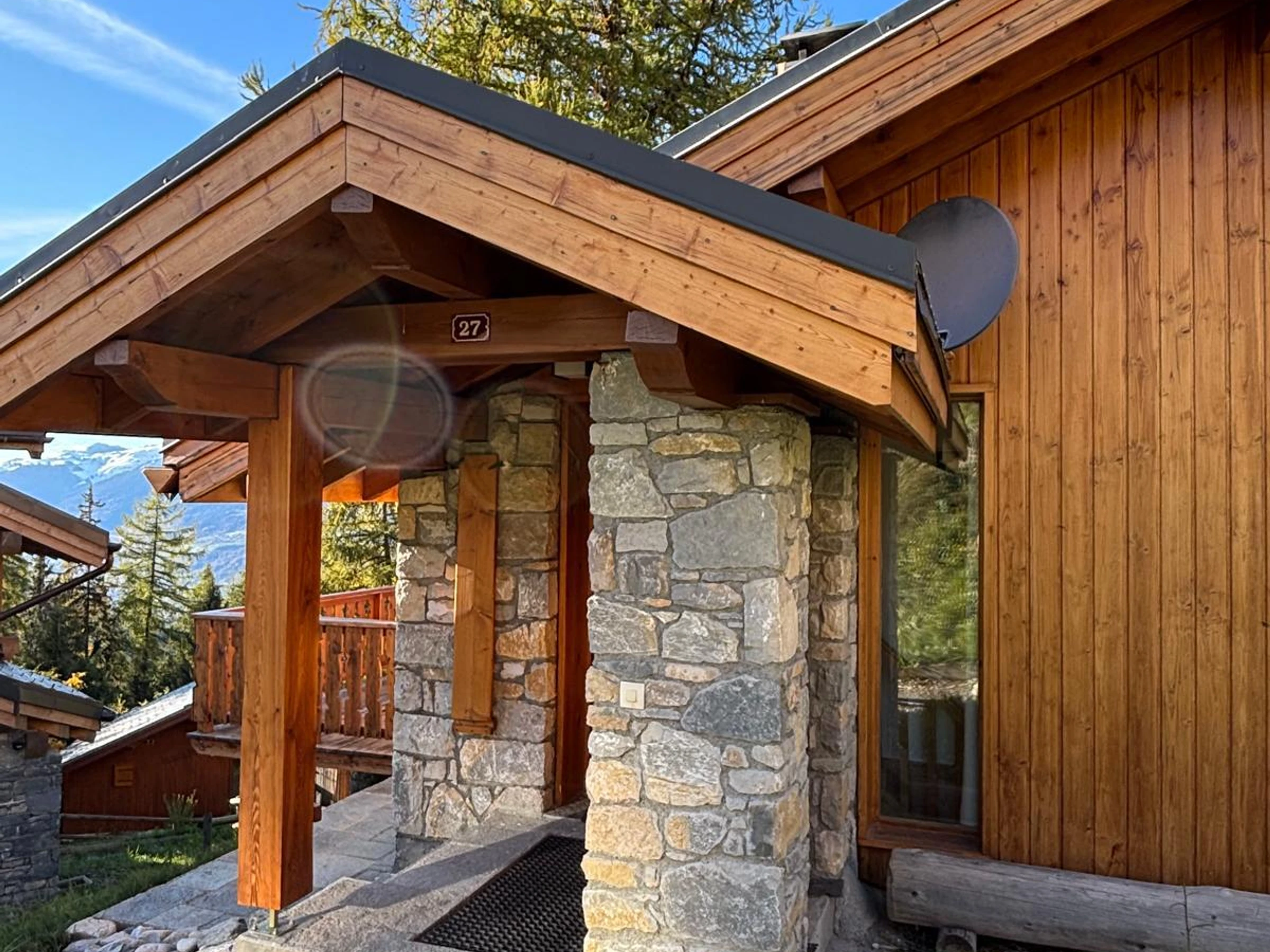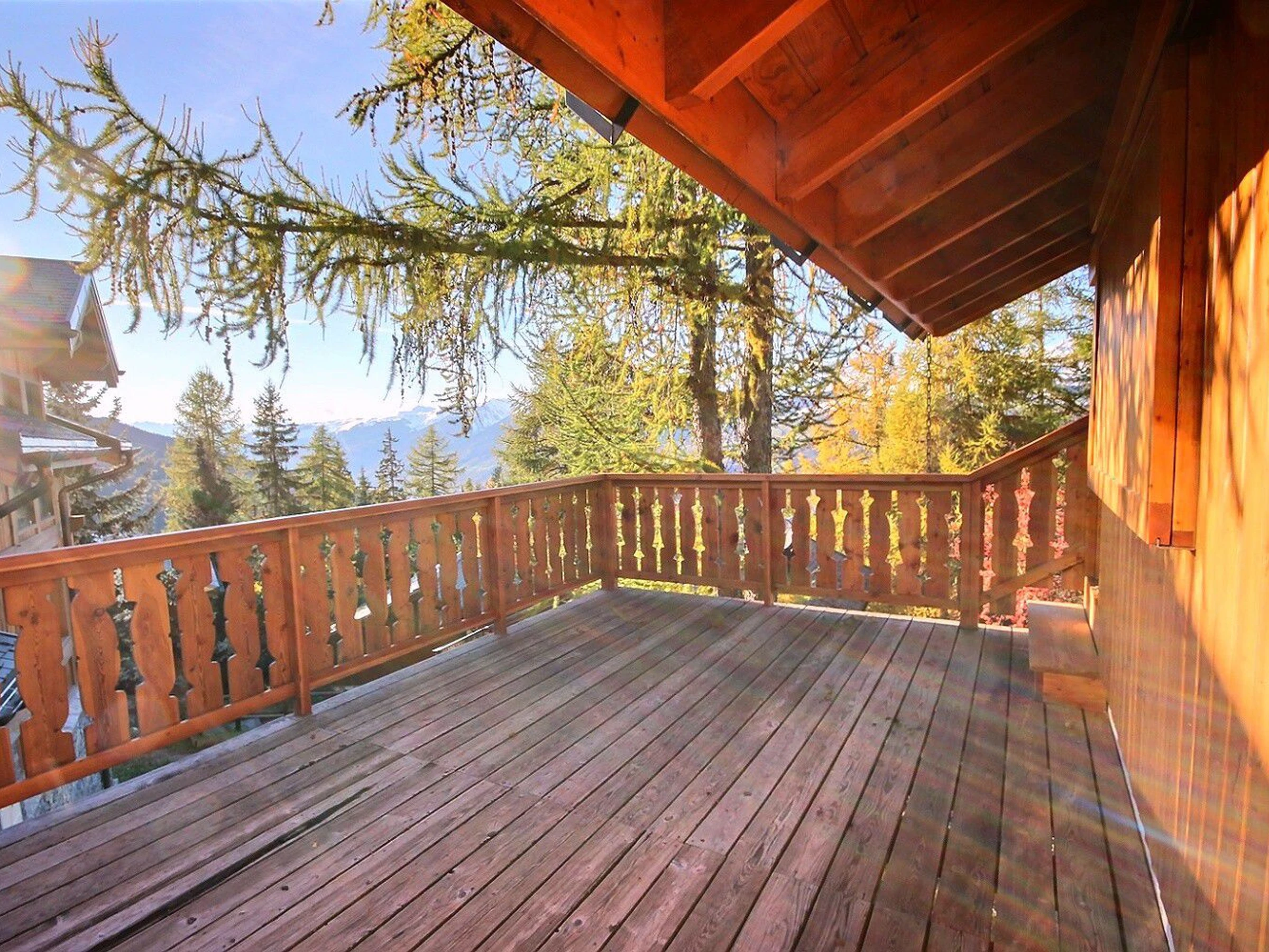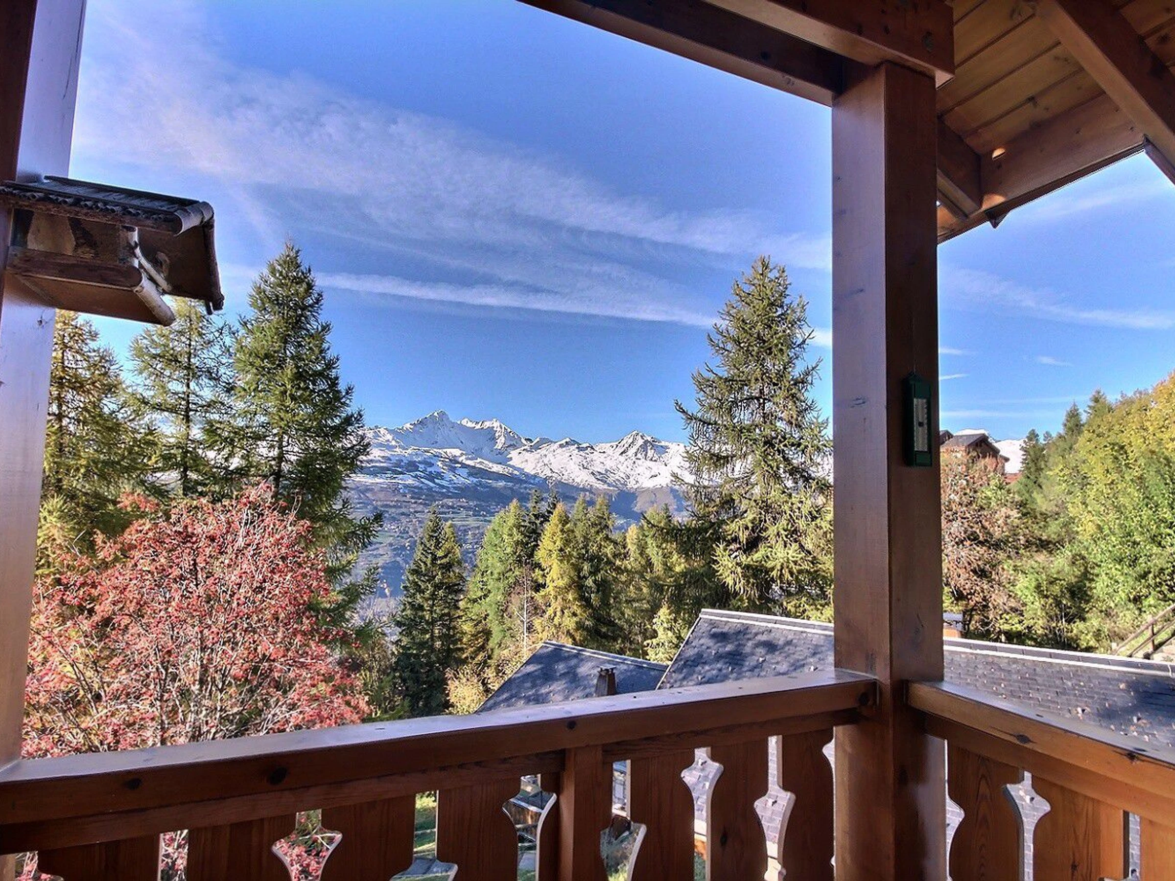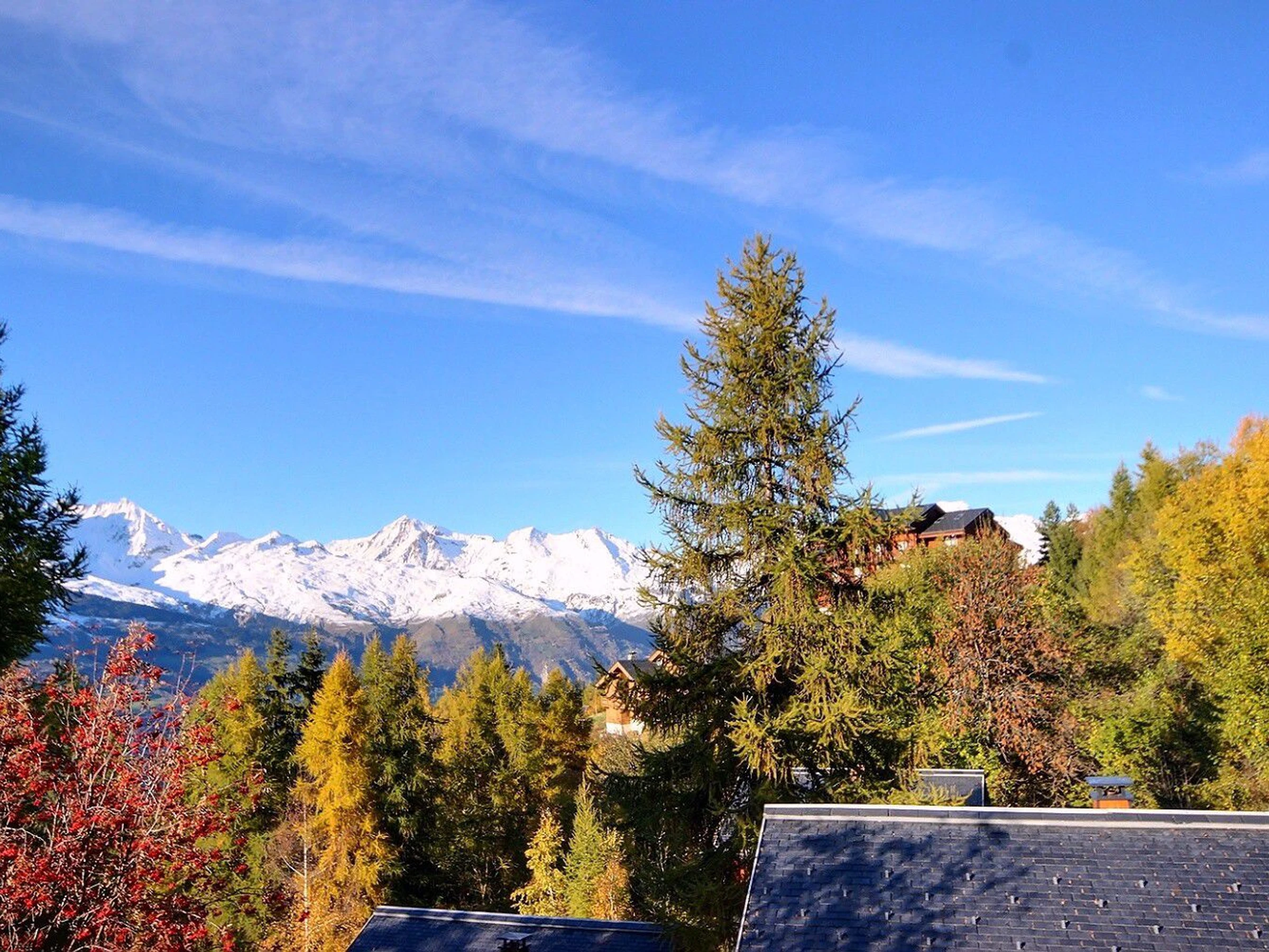 Buchen Sie für Ihren Skiurlaub oder Ihre Sommeraktivitäten in Vallandry dieses komfortable Chalet mit einer nach Süden und Westen ausgerichteten Terrasse und schöner Aussicht über das Tal und die Berge.