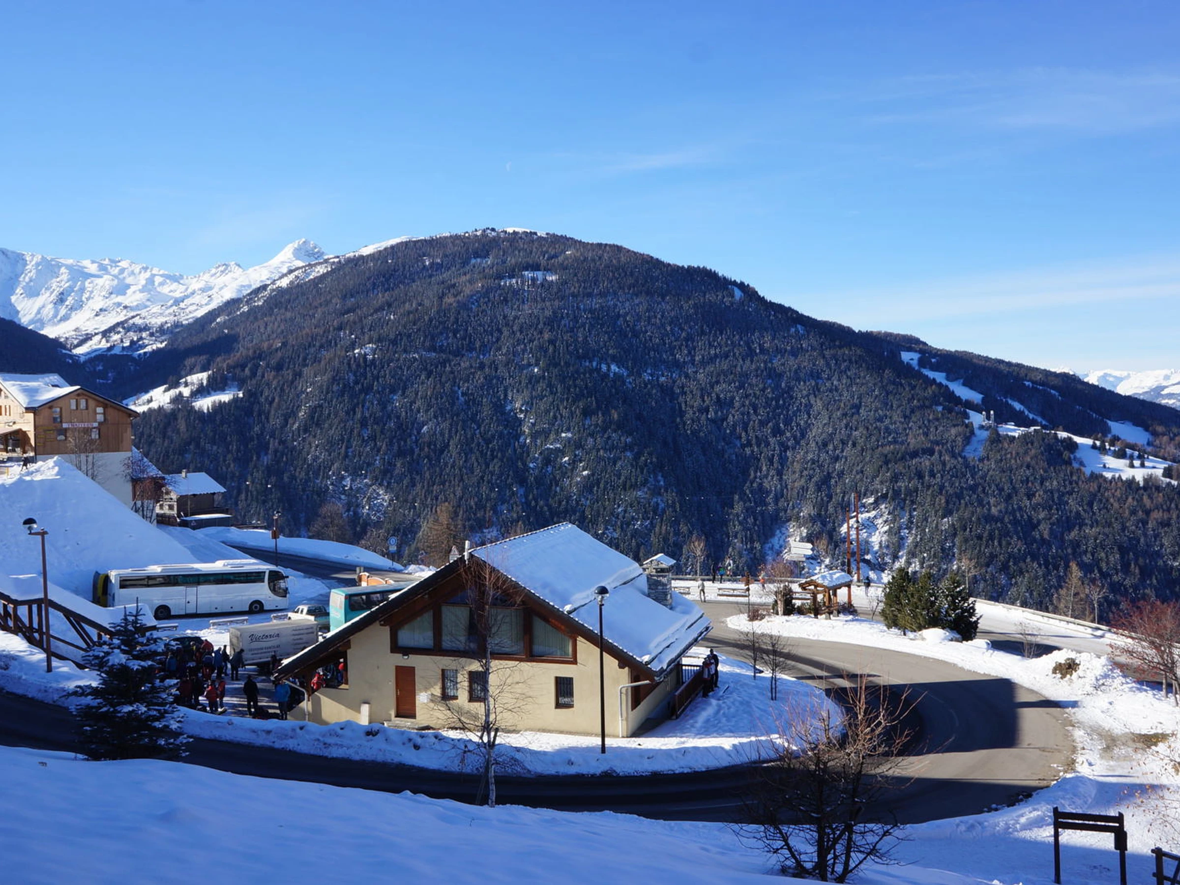 Diese Residenz befindet sich in einer ruhigen Gegend auf der Spitze von Vallandry, etwa 5 Minuten Wald vom Zentrum, der Skischule, den Pisten und den Skiliften entfernt.