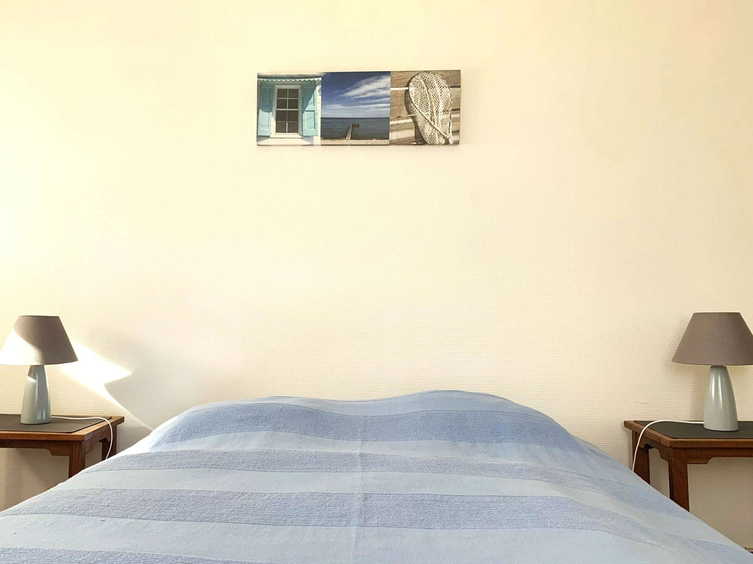 1 Schlafzimmer mit Doppelbett für 2 Personen mit Bettdecke -