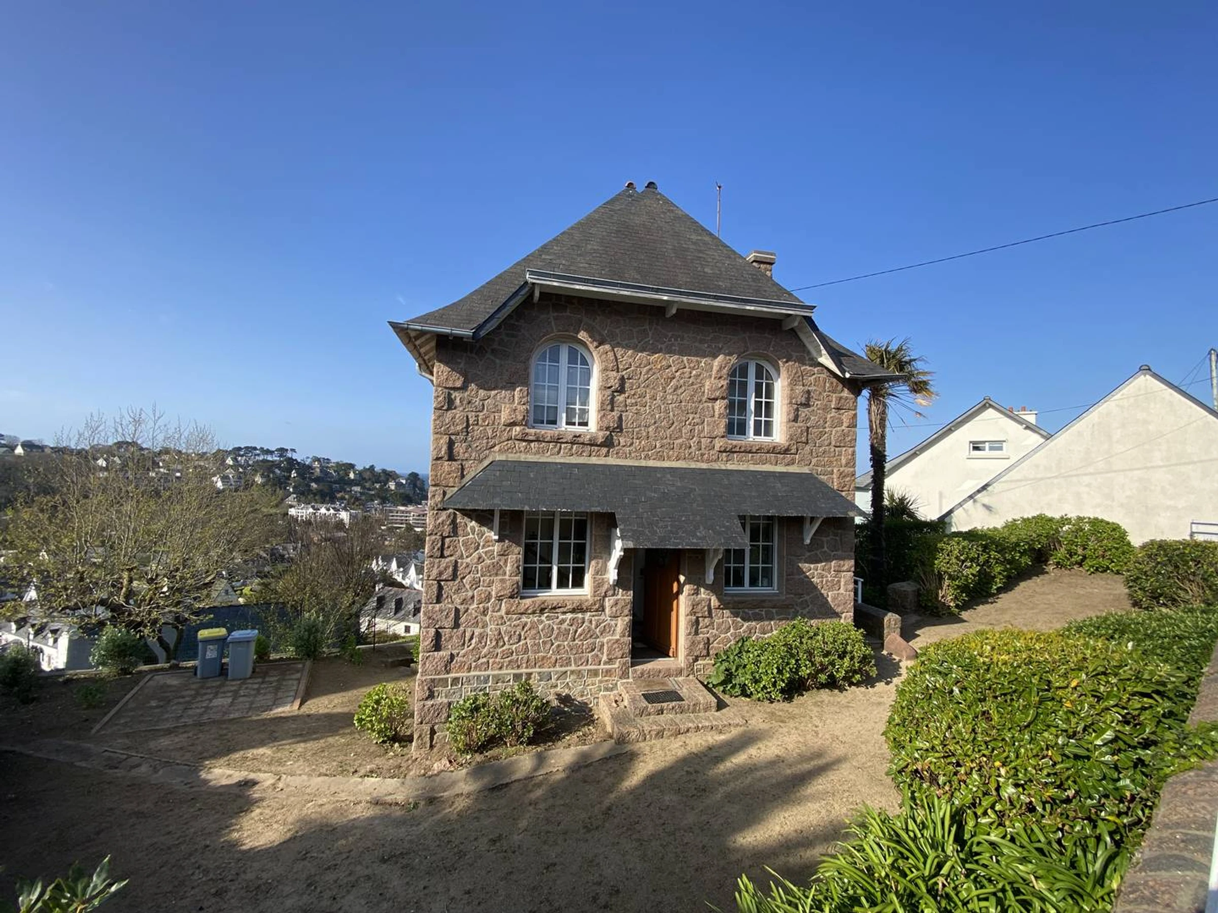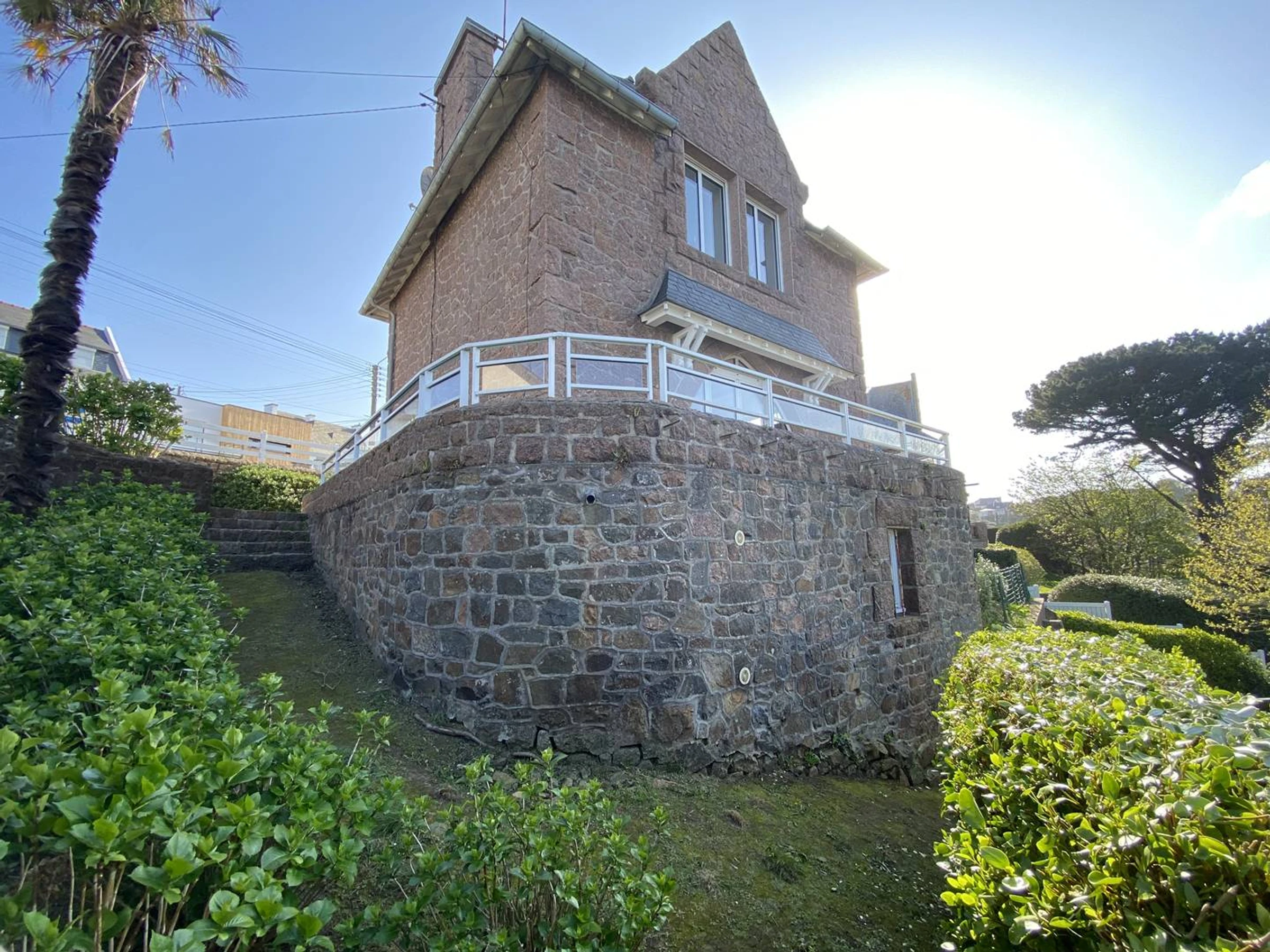 Hervorragende Lage: charmante Villa aus rosa Granit am Hang mit Blick auf die Bucht von Trestraou (große, sichere Holzterrasse). Casino, Kinos, Restaurants, Minigolf entlang des Strandes, 800 m zu Fuß. Abfahrt von Trestraou zum Zöllnerpfad (Chaos aus rosa Granit, Ploumanac'h) und den Sternen der 7 Inseln.