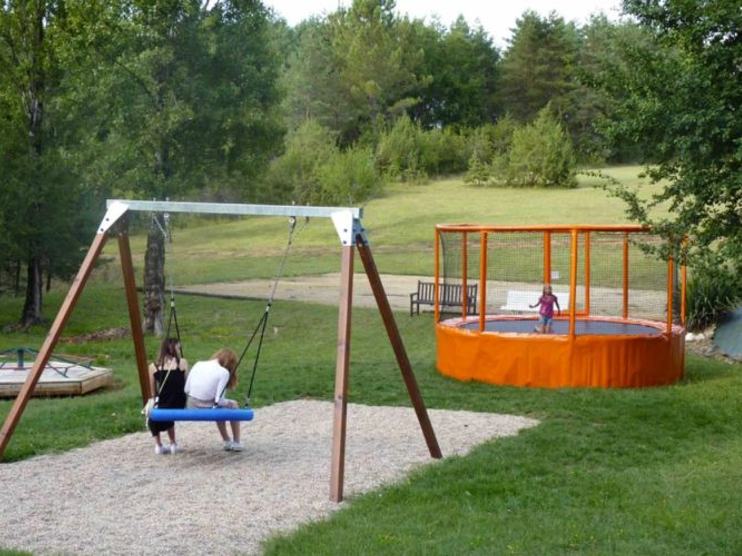 - Trampolin, Schaukel und Rutsche.