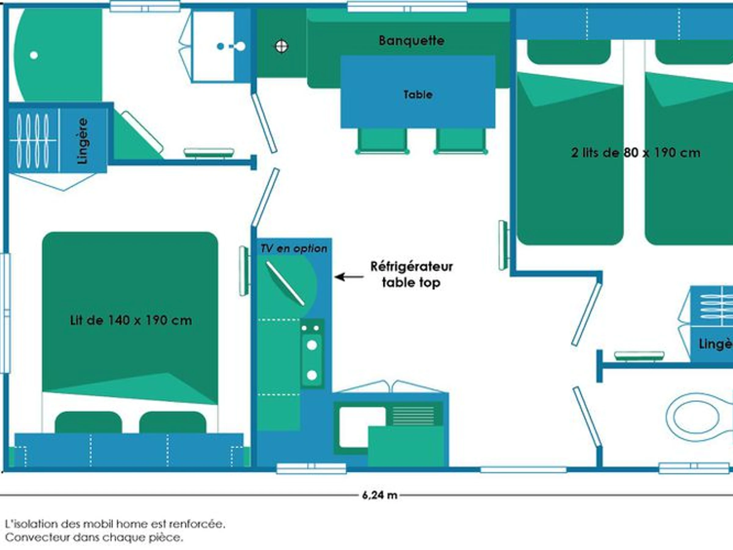 24 m² großes Mobilheim für 4 Personen: