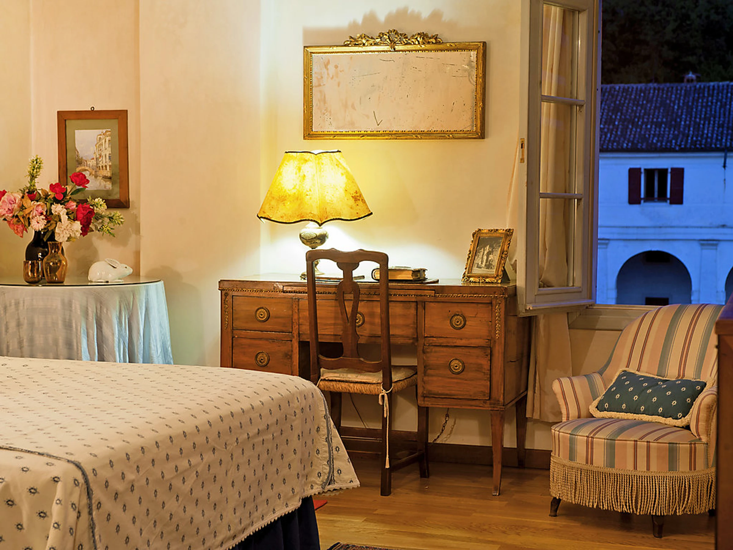Schöne, historische Villa "Cà Marcello", auf 3 Stockwerken, einseitig angebaut, Baujahr 1550, renoviert im Jahre 2013, umgeben von Feldern und Weinbergen. Ausserhalb des Ortes Levada di Piombino Dese, ruhige, sonnige Lage, im Grünen. Zur Mitbenutzung: Park 6 ha (eingezäunt) mit Rasen 2'000 m2, Blumen. Zur Alleinbenutzung: Garten 500 m2 (eingezäunt), Schwimmbad nicht einsehbar, eingezäunt (9 x 6 m, 160 - 160 cm tief, 01.05.-01.10.). Poolhaus mit Kühlschrank, Pergola, Gartenmöbel, Grill, Kinderspielplatz. Im Hause: Wireless LAN, Zentralheizung, Klimaanlage, Waschmaschine, Wäschetrockner. Zur Verfügung: Fahrräder (4). Wäschewechsel 2 mal wöchentlich. Handtuchwechsel 2 mal wöchentlich. Wohnungsreinigung 2 mal wöchentlich. Koch möglich (extra). Parkplatz beim Haus. Einkaufsgeschäft 2 km, Lebensmittelgeschäft 500 m, Supermarkt 8 km, Restaurant 2 km, Fahrradverleih 50 m, Bahnstation 6 km. Golfplatz (18 Loch) 15 km, Tennis 10 km, Radweg 300 m. Nahe gelegene Sehenswürdigkeiten: Treviso 16 km, Venezia 34 km, Padova 36 km, Verona 105 km. Geeignet für Events. Bitte beachten: Der Besitzer wohnt auf dem gleichen Grundstück. Autobahn 15 km vom Haus. Hauptstrasse 2 km vom Haus. Eisenbahnlinie 6 km vom Haus. Nacht Club/Disco 2 km vom Haus.
