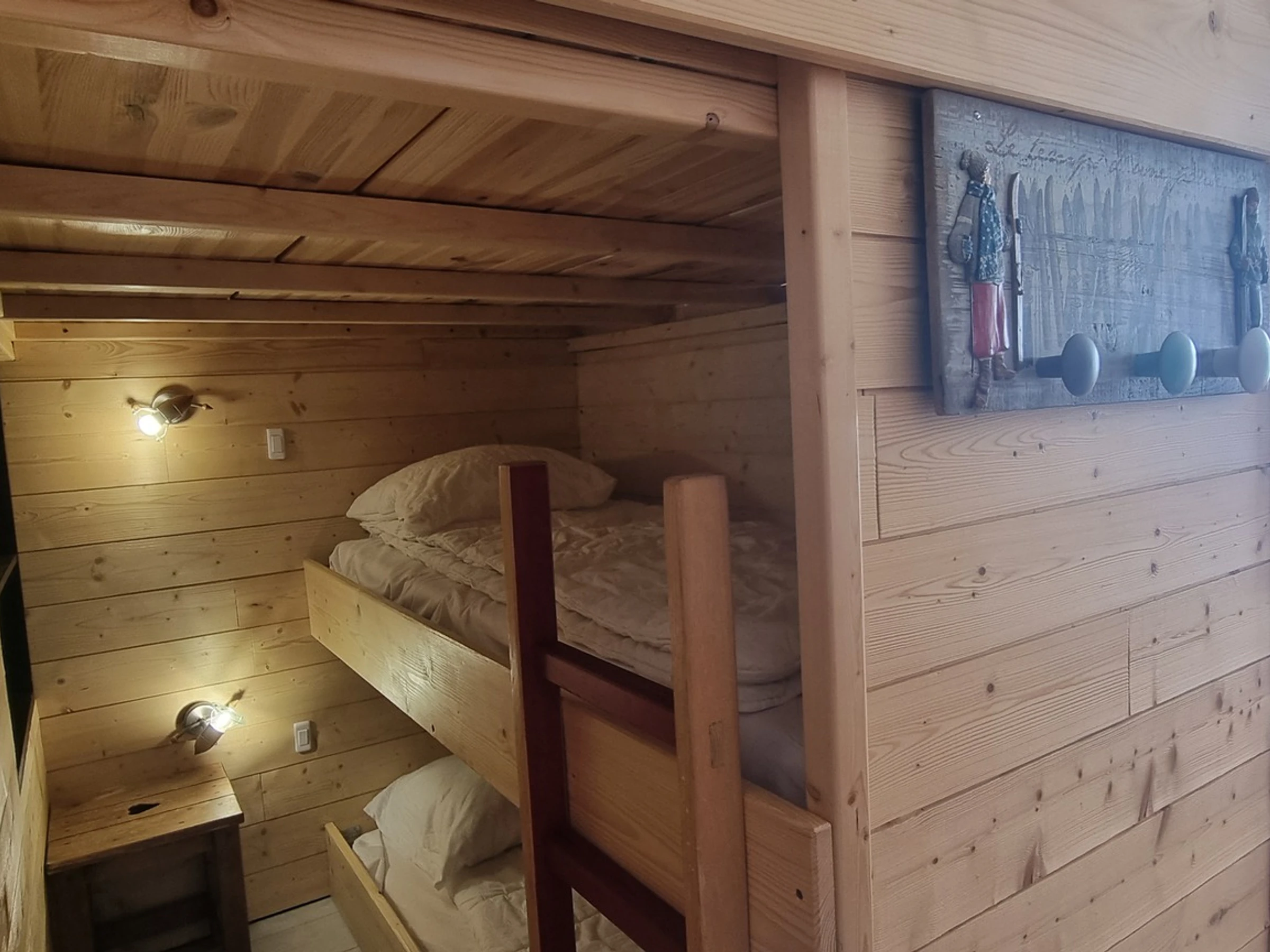 Dieses Studio befindet sich auf Ebene F des Le Paquebot des Neiges und ist mit dem Lift „Flèche“ erreichbar. Es besteht aus einem Wohnzimmer, einer separaten Küche und einem Badezimmer mit WC. Der nach Süden ausgerichtete Balkon bietet einen schönen Blick auf die Pisten von Aime 2000.