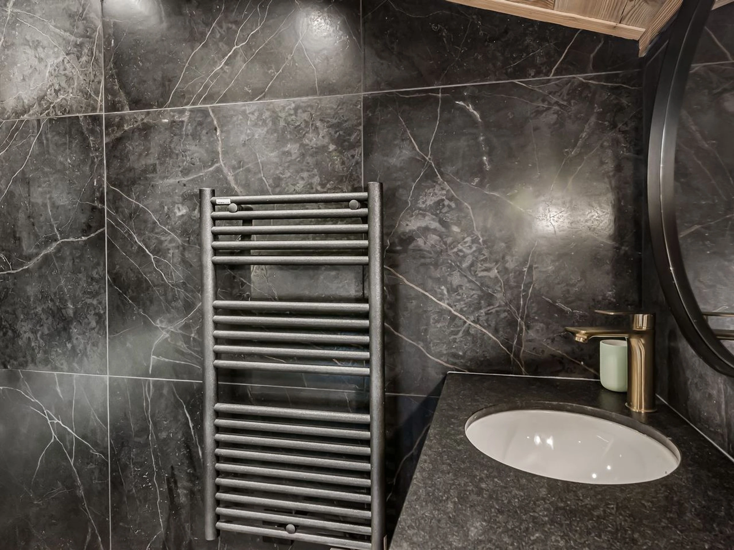 2 Etagenbetten (90 x 200 cm), 50-Zoll-Q-LED-TV, Duschbad, Waschtisch, Handtuchheizkörper, WC.