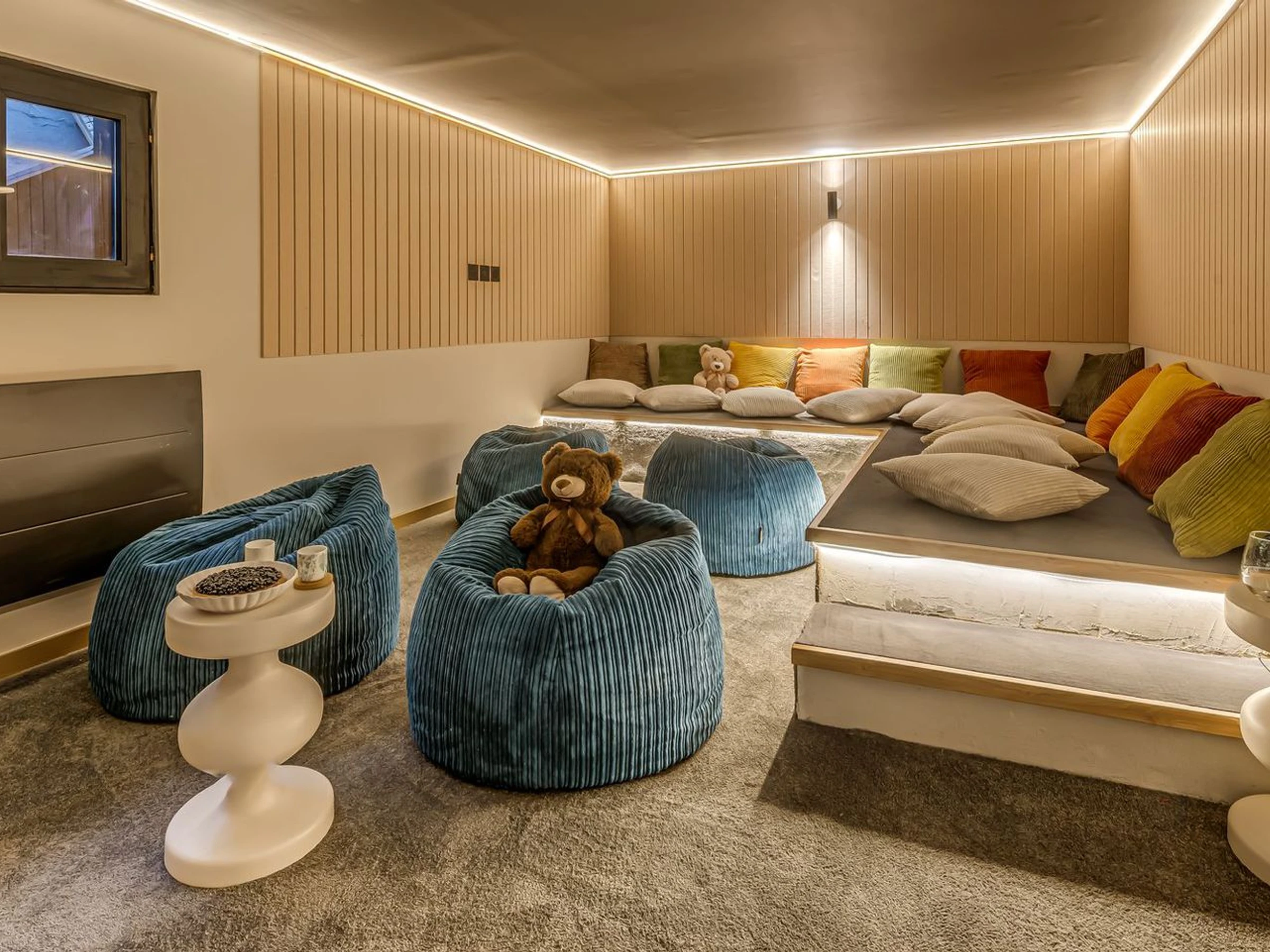 – Spielzimmer, Sauna, Barbereich.