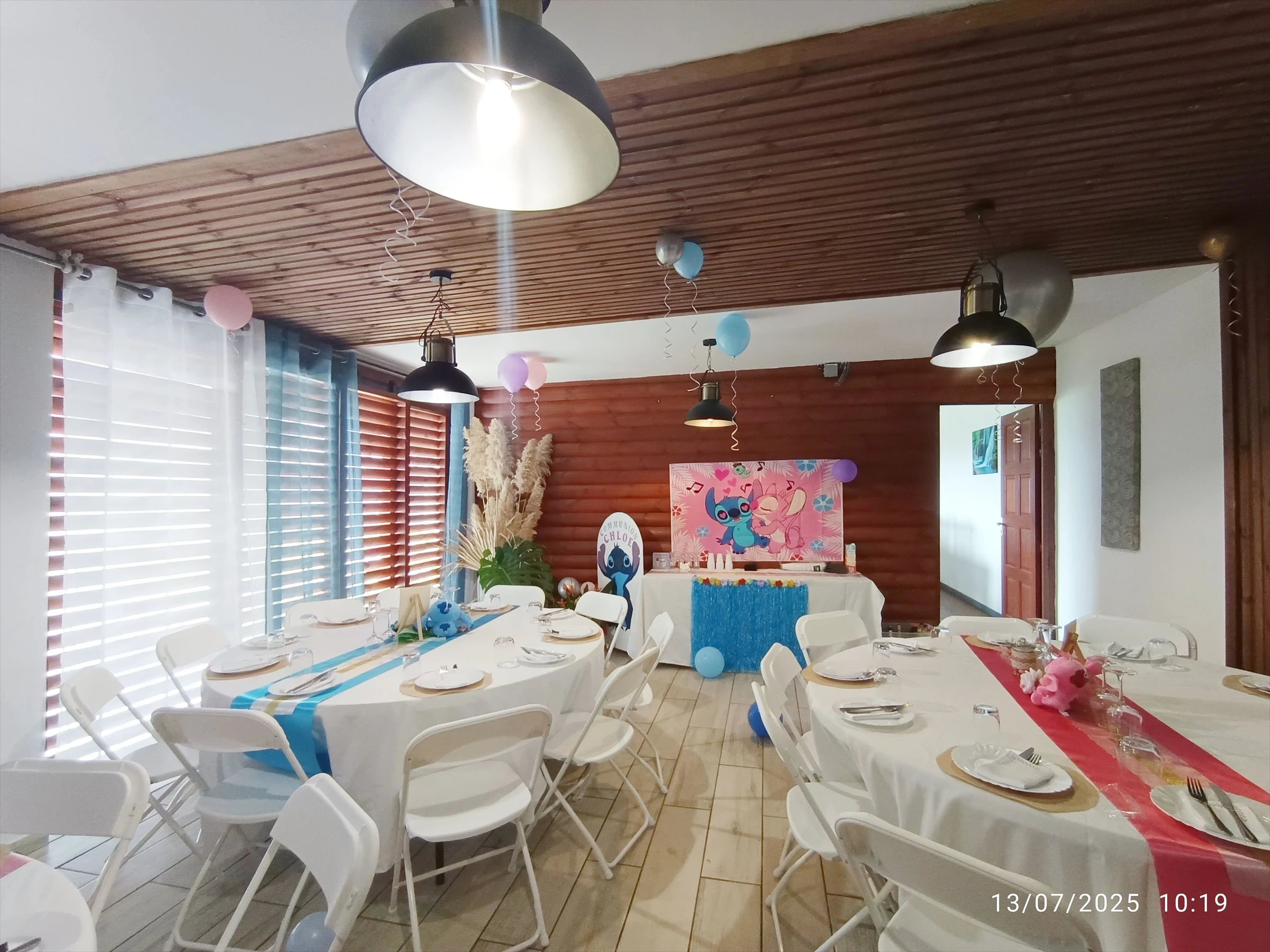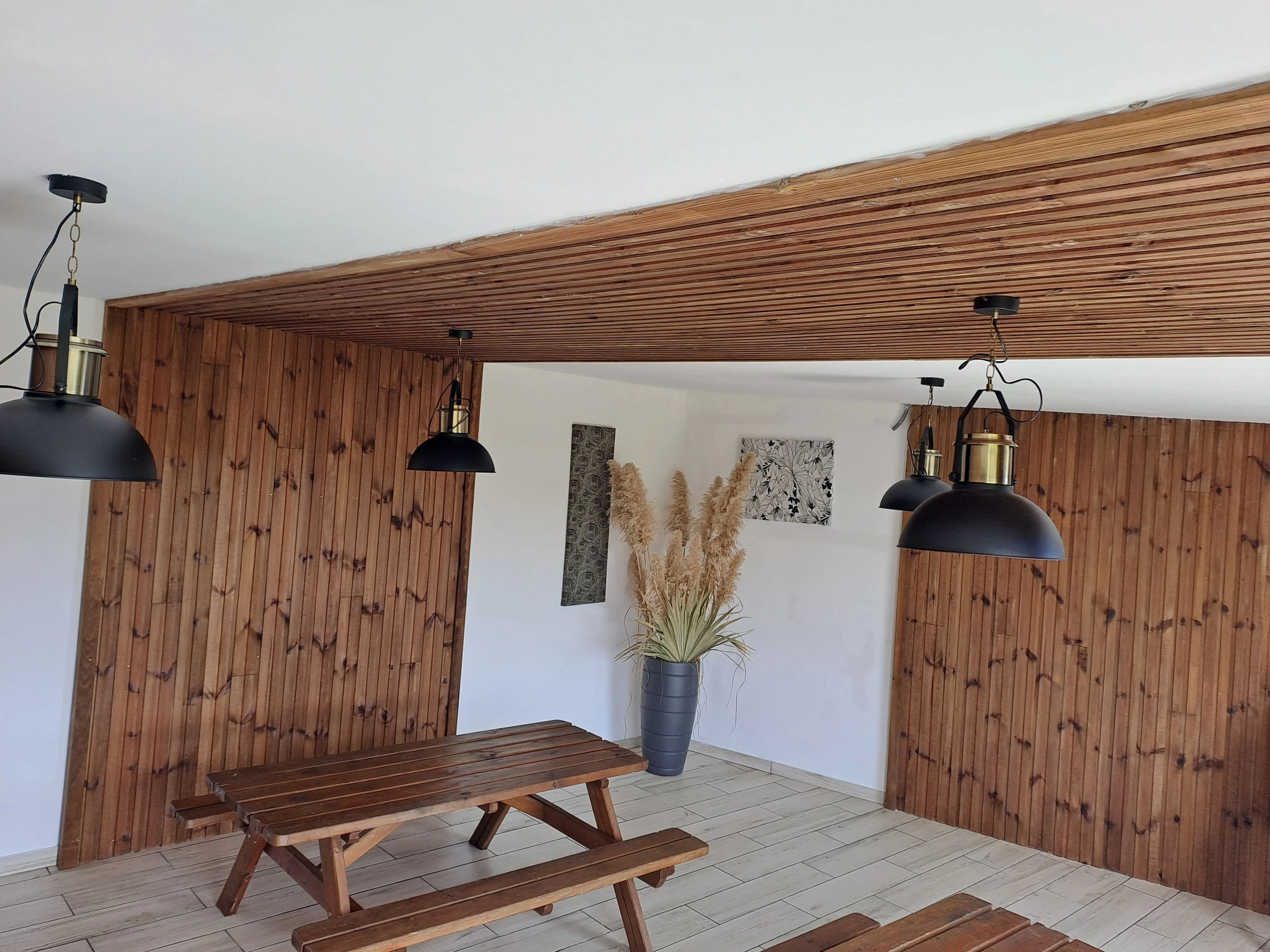 Eine große Garage mit zwei Tischen bietet Platz für bis zu elf Personen oder mehr.