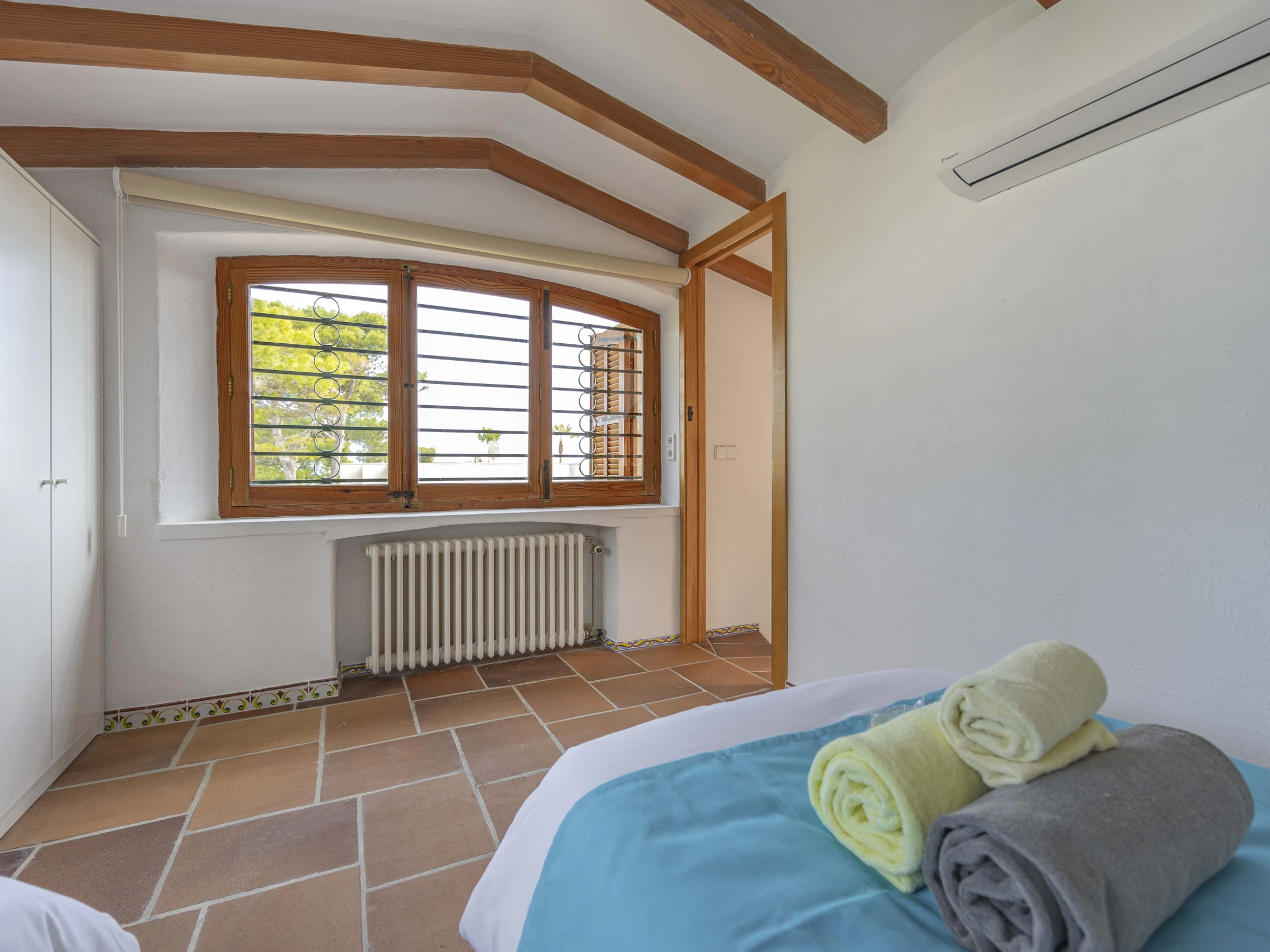 Das Anwesen bietet bequem Platz für bis zu 10 Personen in 5 Schlafzimmern. Das Haus hat 3 Etagen. Im Erdgeschoss befindet sich ein großes Wohn-Esszimmer, eine voll ausgestattete Küche mit Zugang zum Pool und Garten, zwei Doppelschlafzimmer, ein komplettes Badezimmer und eine Toilette. Auf der ersten Etage befinden sich 2 Doppelzimmer, eines mit eigenem Bad, ein komplettes Badezimmer und auf der zweiten Etage ein Doppelzimmer mit 2 Einzelbetten mit herrlichem Blick auf das Meer.