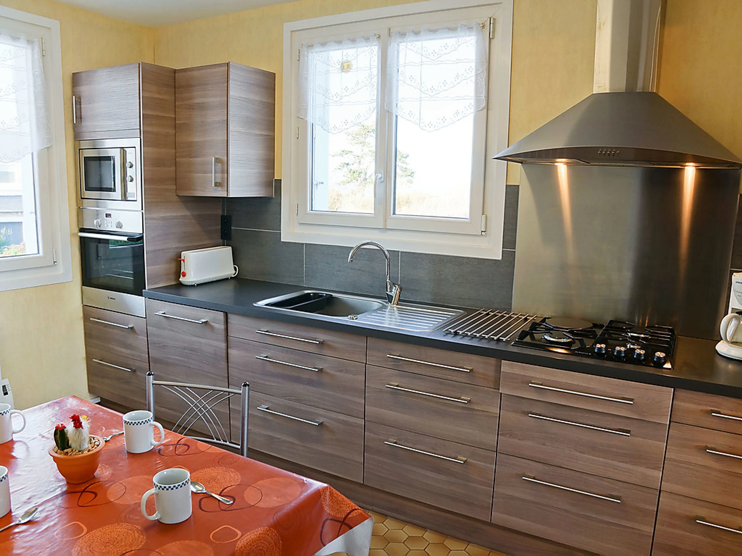 3-Zimmer-Haus 70 m2. Schön eingerichtet: Wohn-/Esszimmer 22 m2 mit offenem Kamin und TV (Flachbildschirm). 1 Zimmer mit 1 franz. Bett (140 cm, Länge 190 cm). 1 Zimmer mit 1 franz. Bett (1 x 160 cm, Länge 200 cm). Offene Küche (4 Kochplatten, Backofen, Geschirrspüler, Mikrowelle, elektrische Kaffeemaschine) mit Esstisch. Dusche, sep. WC. E-Heizung. Garten. Terrassenmöbel, Gartengrill, Liegestühle. Fernsicht auf das Meer. Zur Verfügung: Waschmaschine, Kinderhochstuhl, Babybett bis 3 Jahre. Parkplatz, Garage. Geeignet für Familien. Maximal 2 Haustiere/Hunde erlaubt.