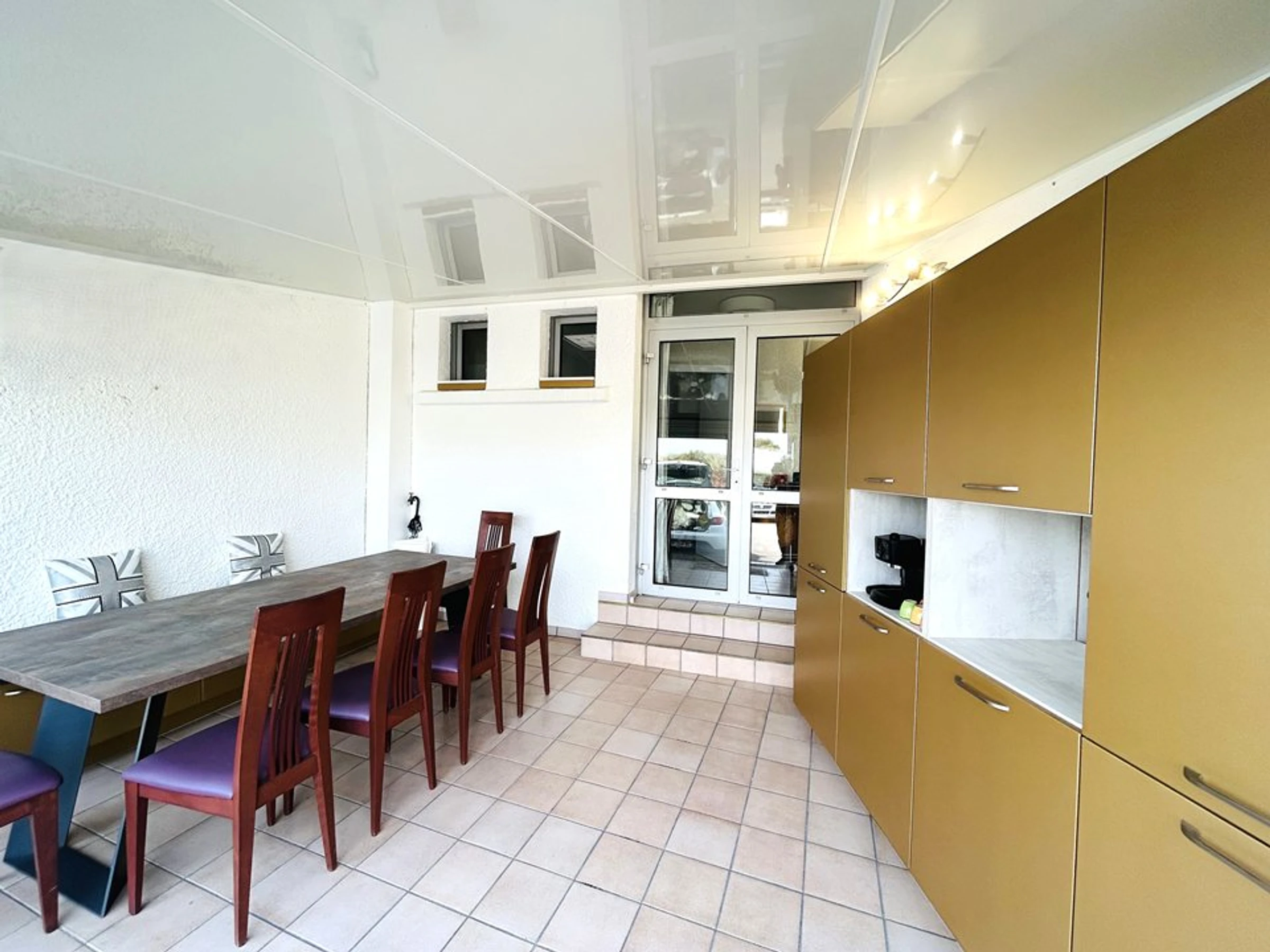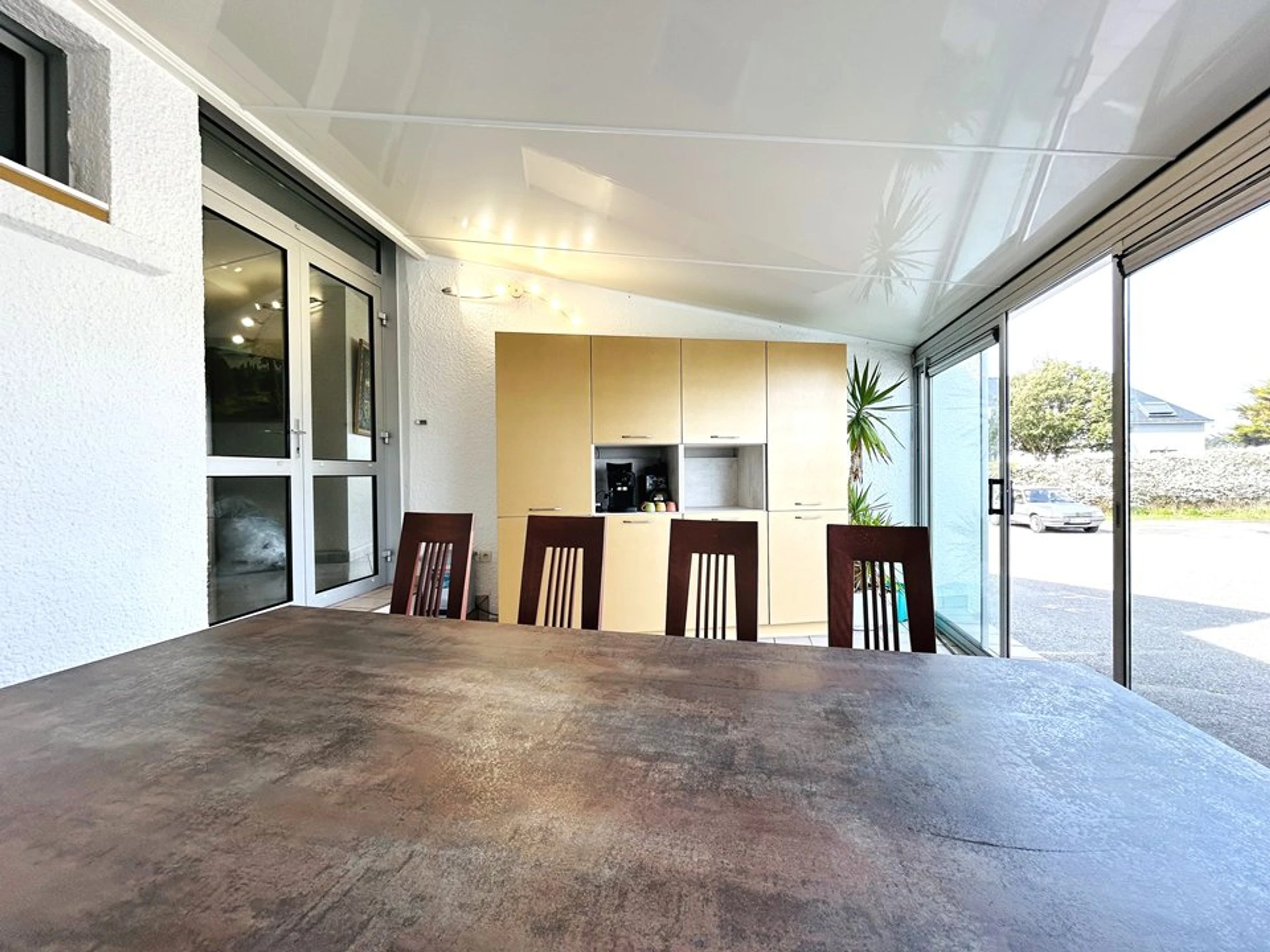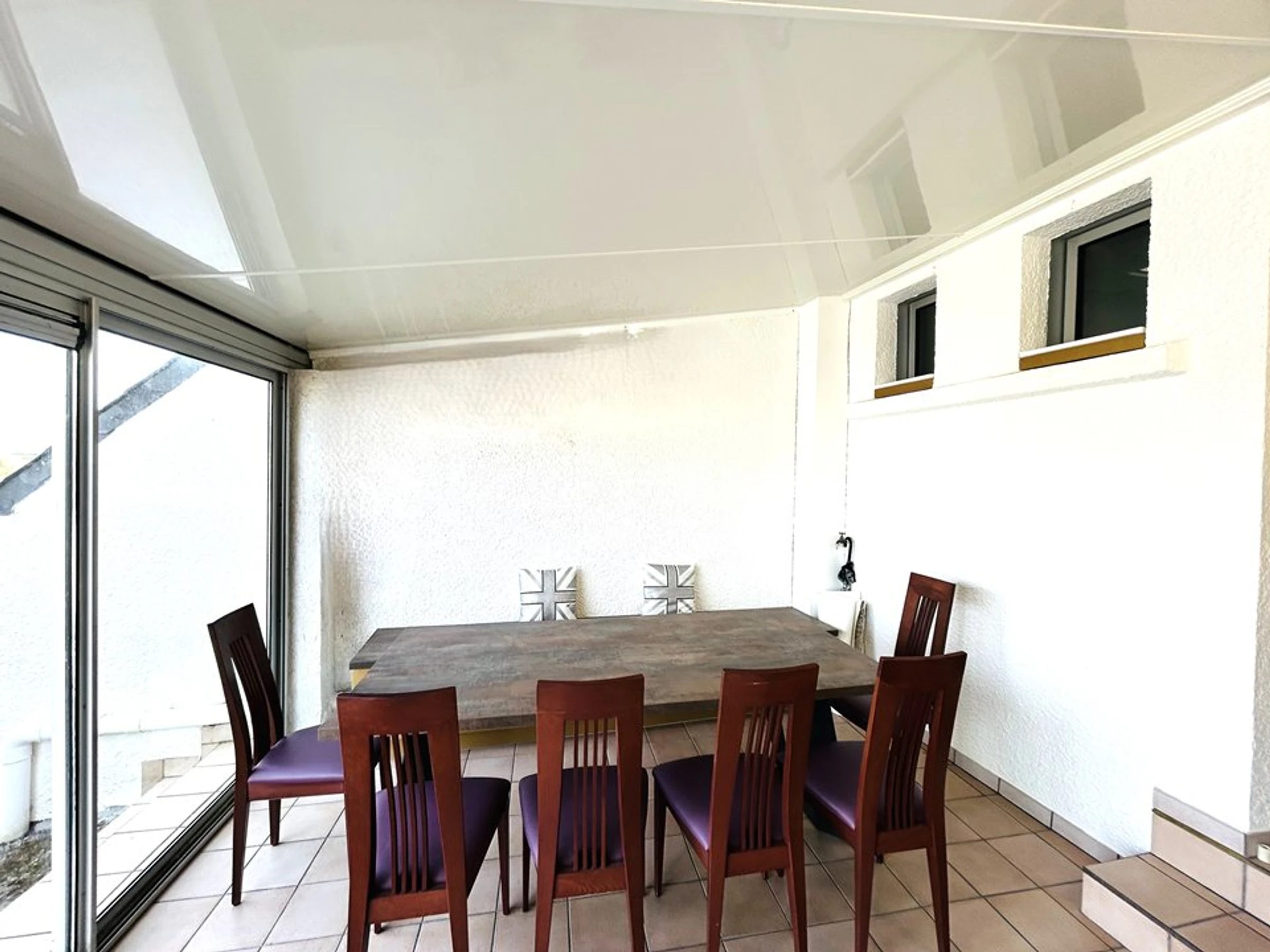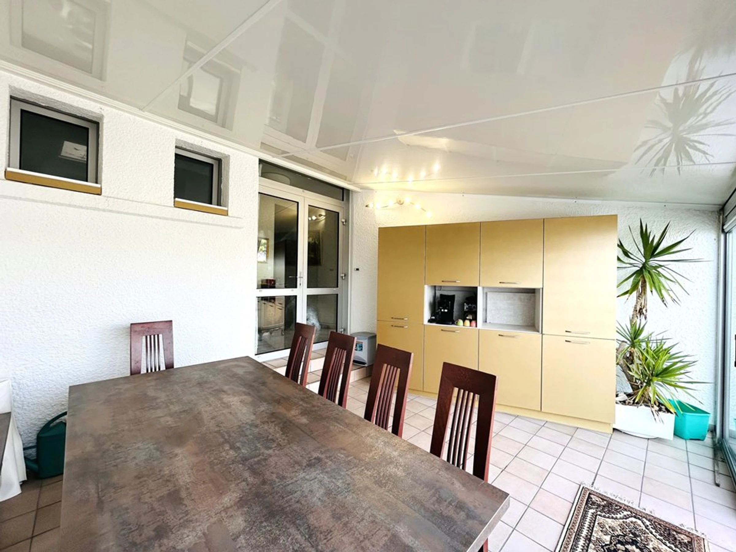 - Eine möblierte Veranda mit einem großen Tisch, ideal für jede Jahreszeit