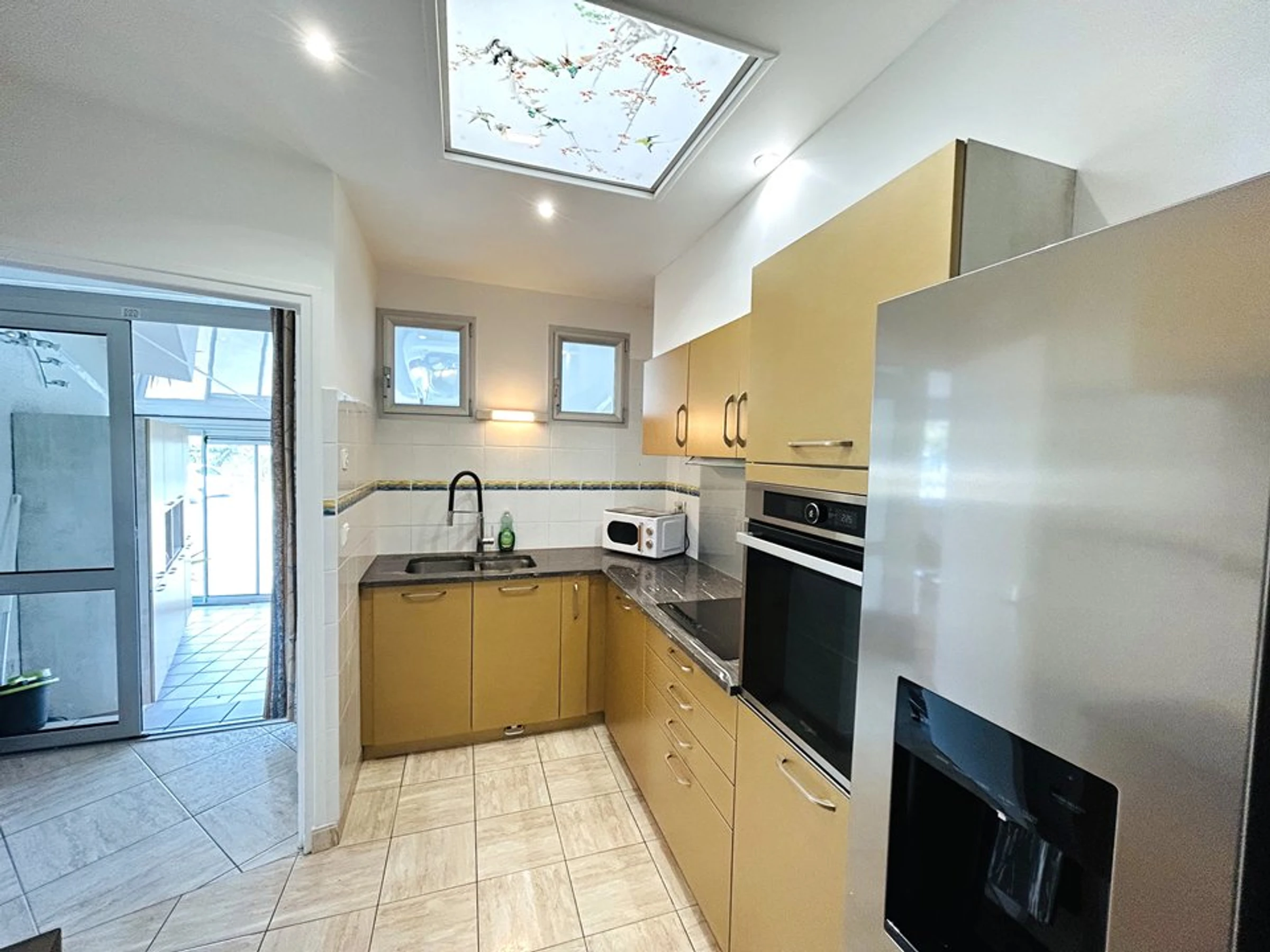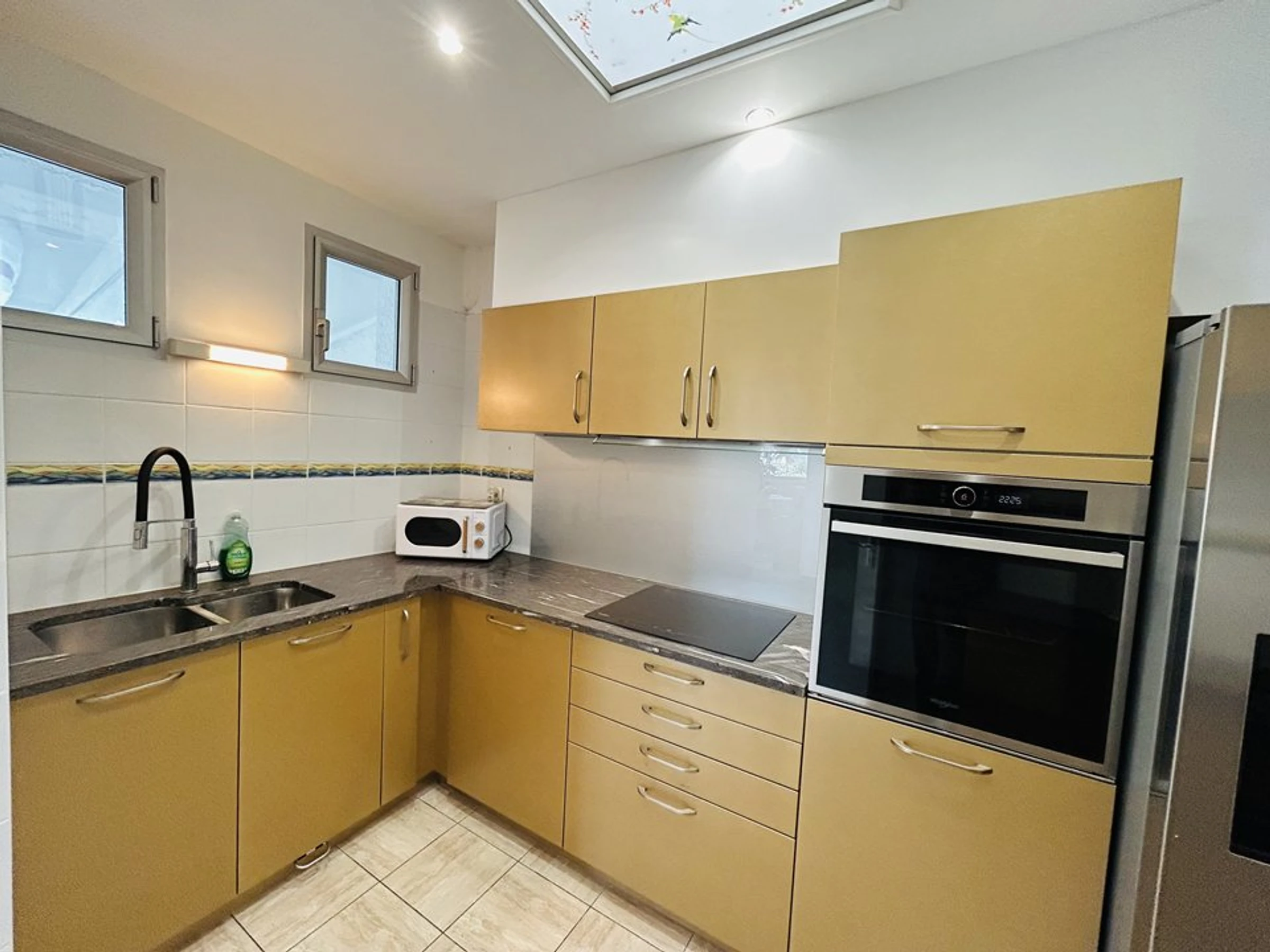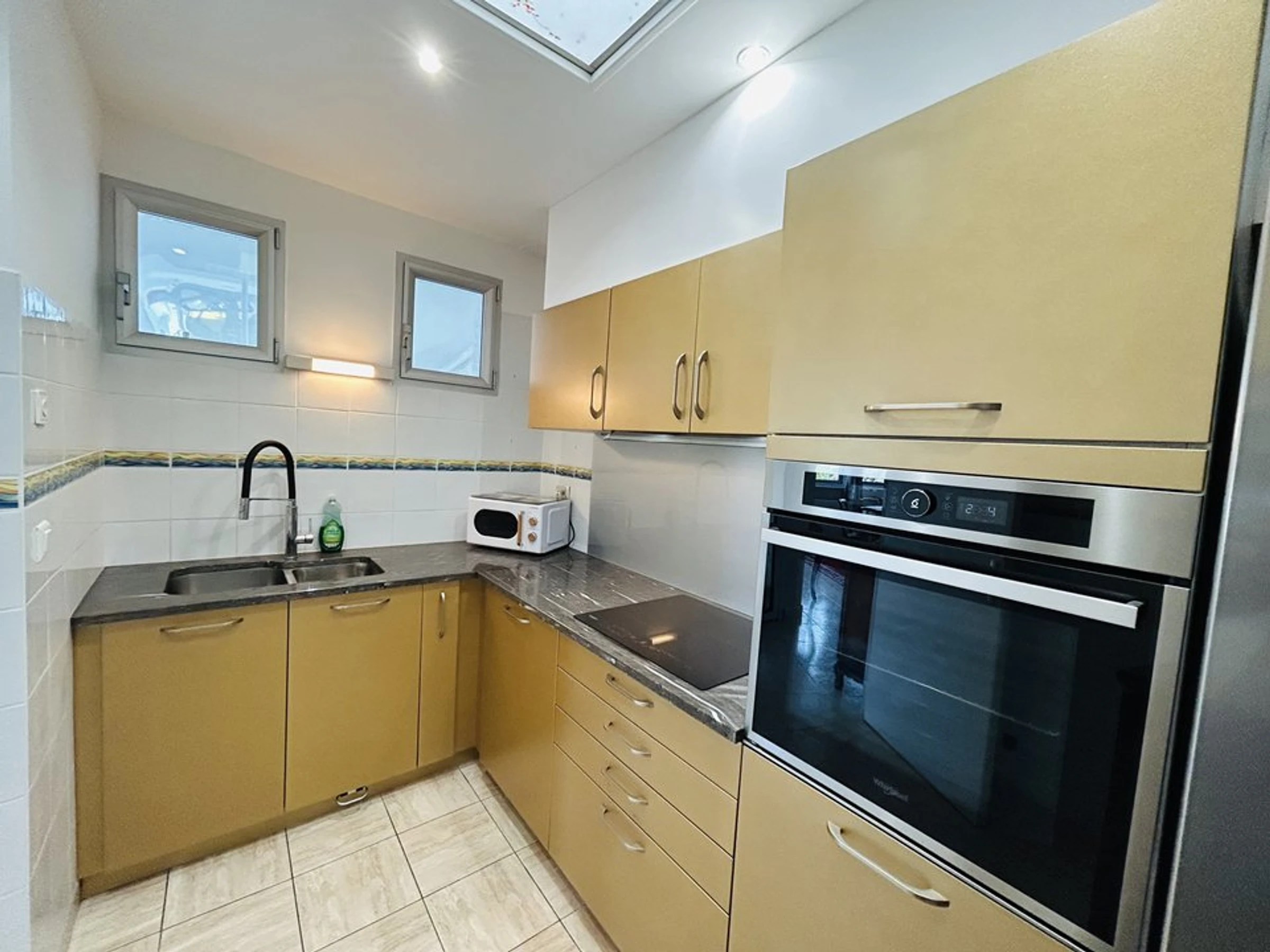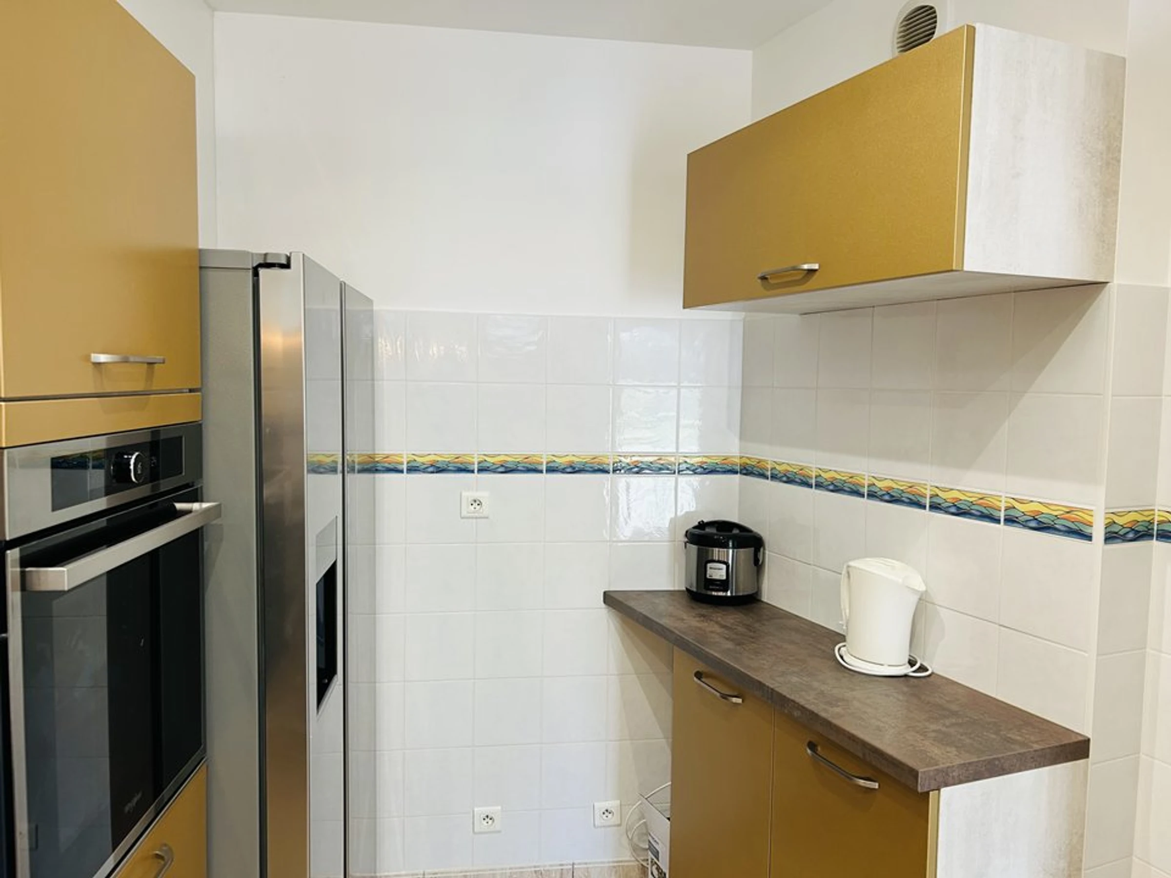 Ausstattung: Amerikanischer Kühlschrank, Geschirrspüler, Induktionskochfeld, Backofen, Mikrowelle, elektrische Kaffeemaschine und Senseo-Kaffeemaschine, Toaster, Wasserkocher, Fernseher, WLAN, Waschmaschine.
