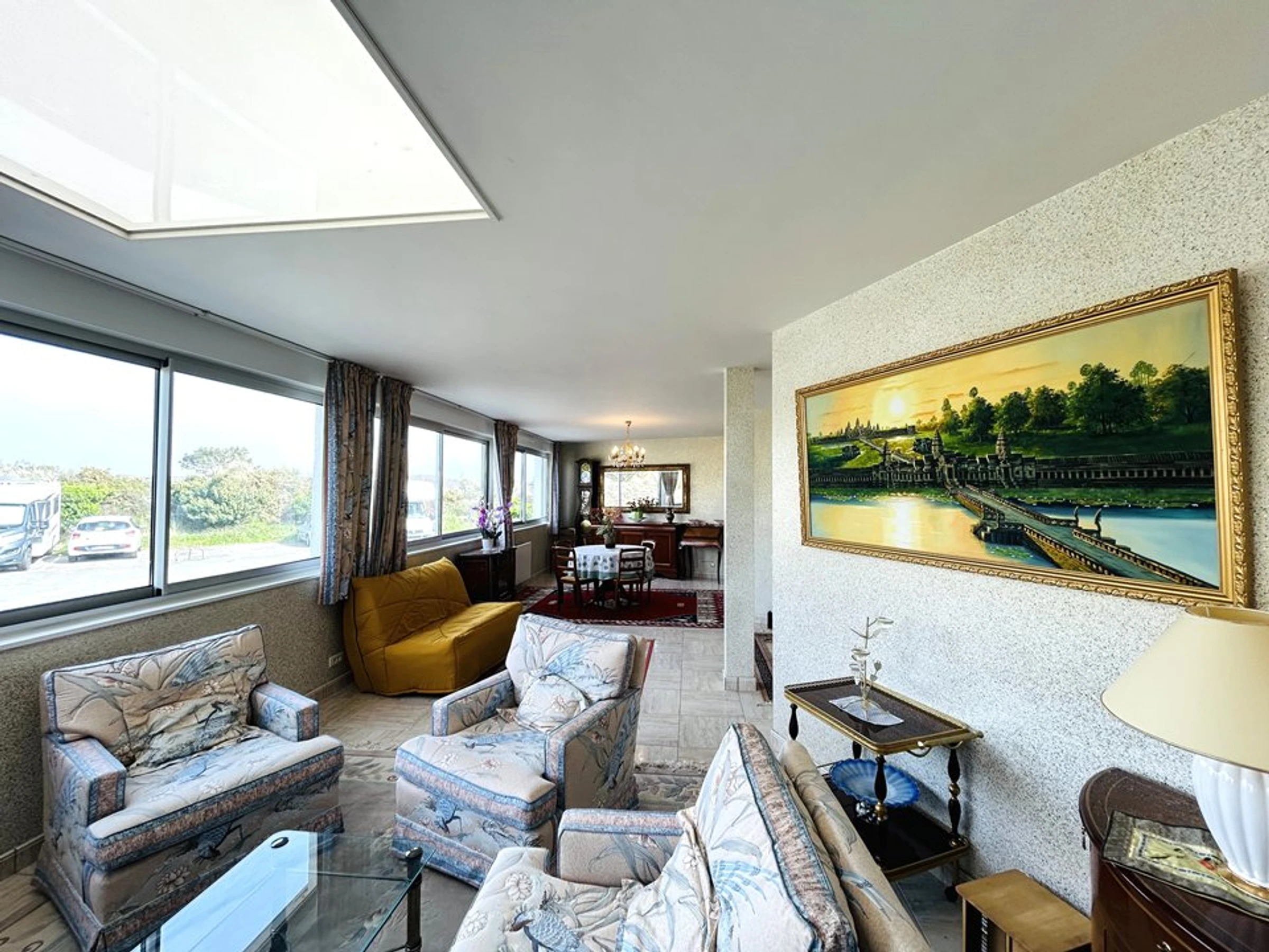 - Ein großes, helles Wohnzimmer mit Schlafcouch