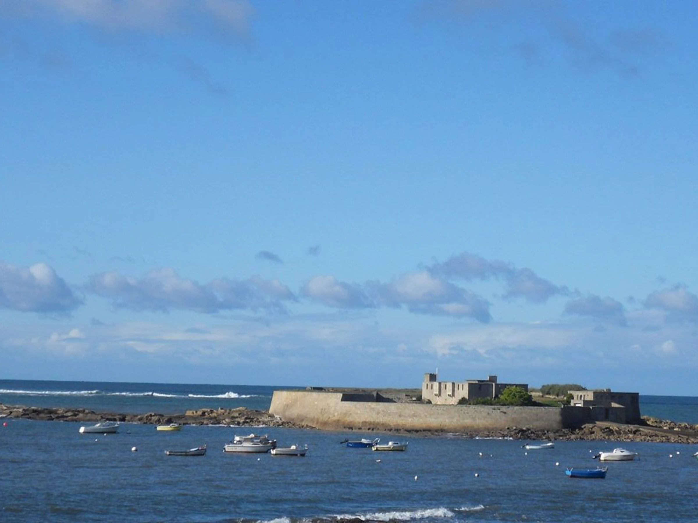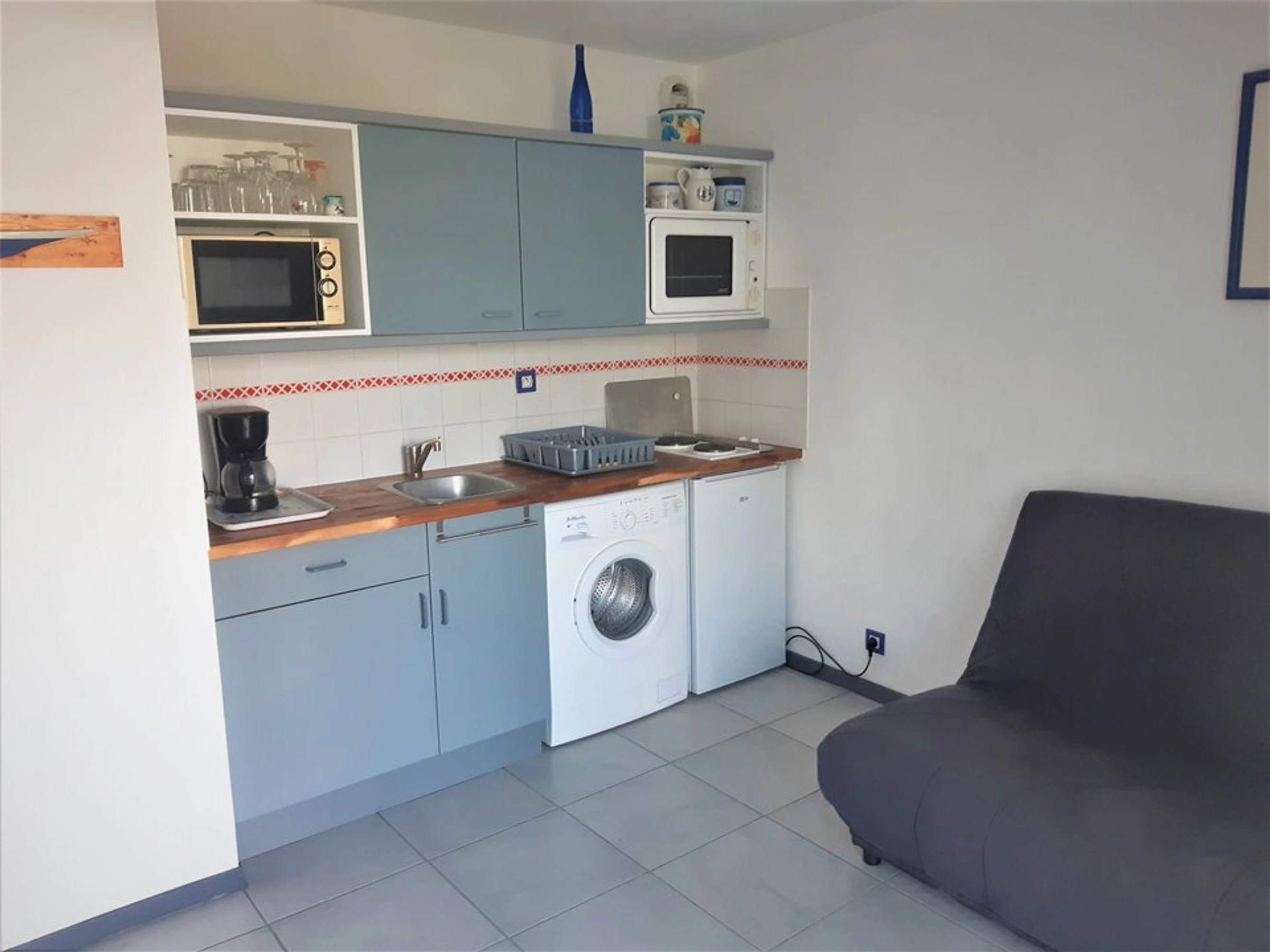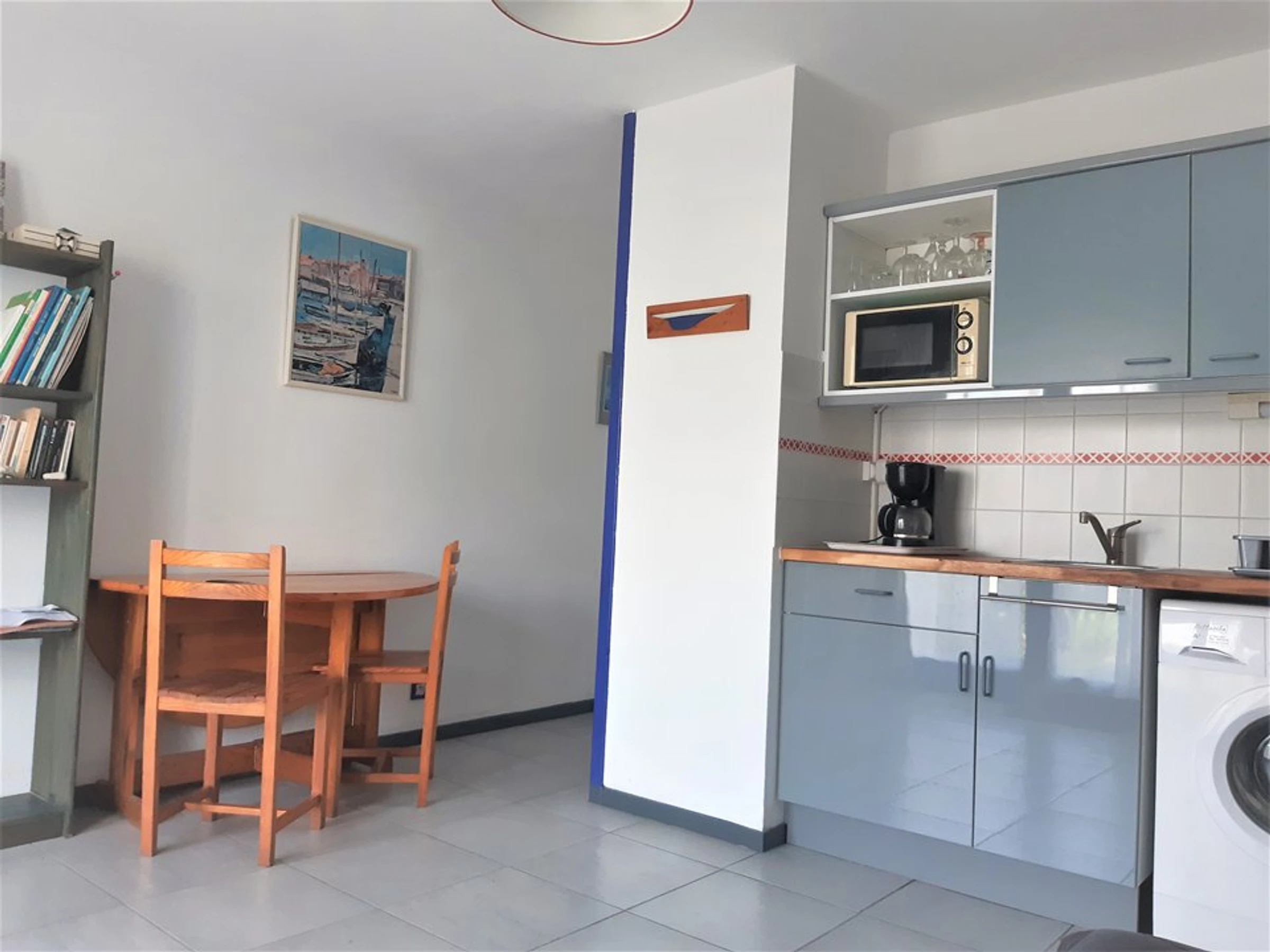 Dieses kürzlich renovierte Apartment befindet sich im Erdgeschoss eines kleinen Hauses, ca. 200 Meter vom Strand Fort-Bloqué entfernt, und verfügt über einen kleinen, nicht umzäunten Garten.