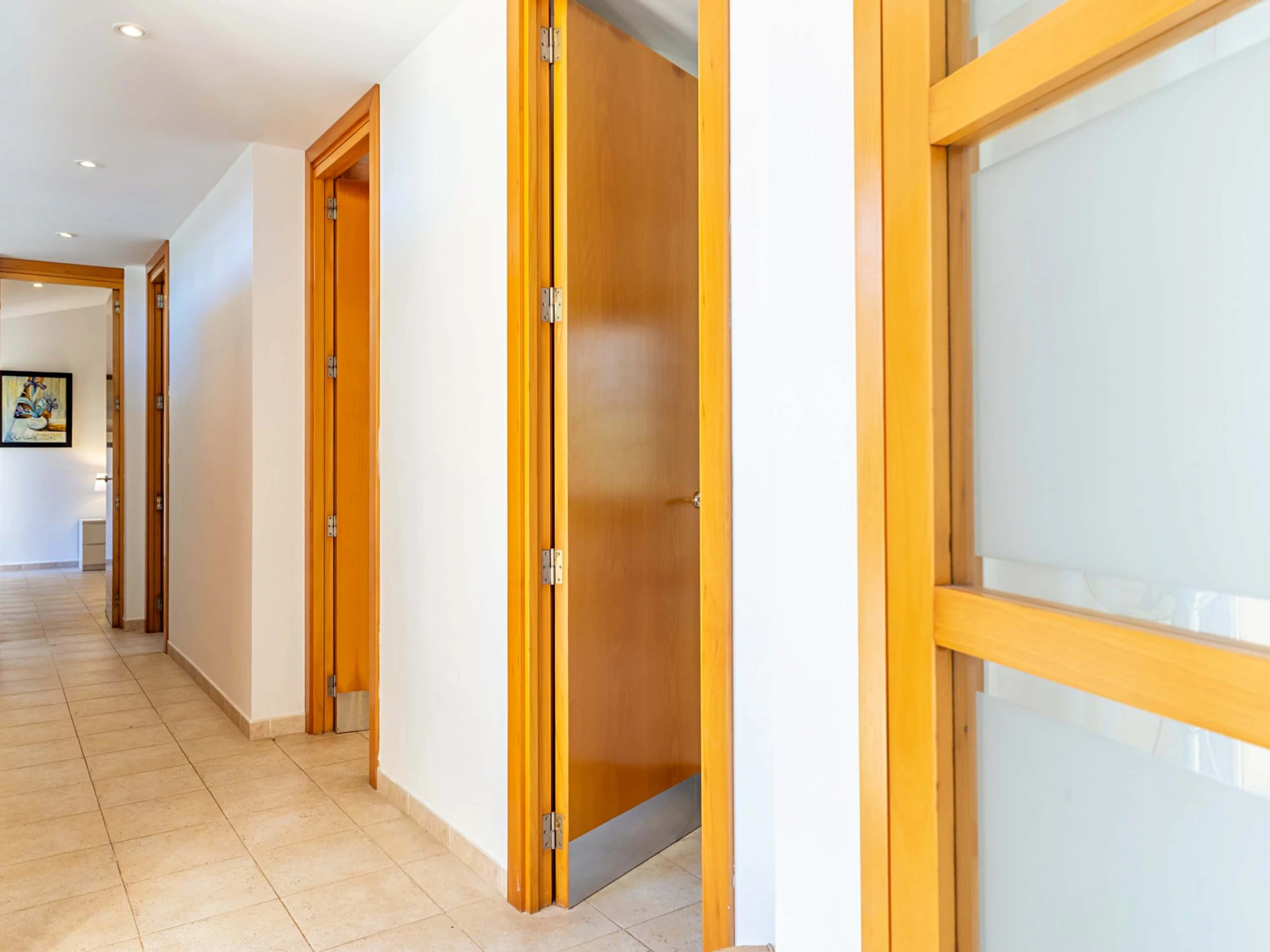 Links vom Eingang führt ein Flur mit Einbauschränken zu zwei Doppelzimmern, beide mit Einbauschränken, einem Gäste-WC und einem Hauptschlafzimmer mit eigenem Badezimmer.