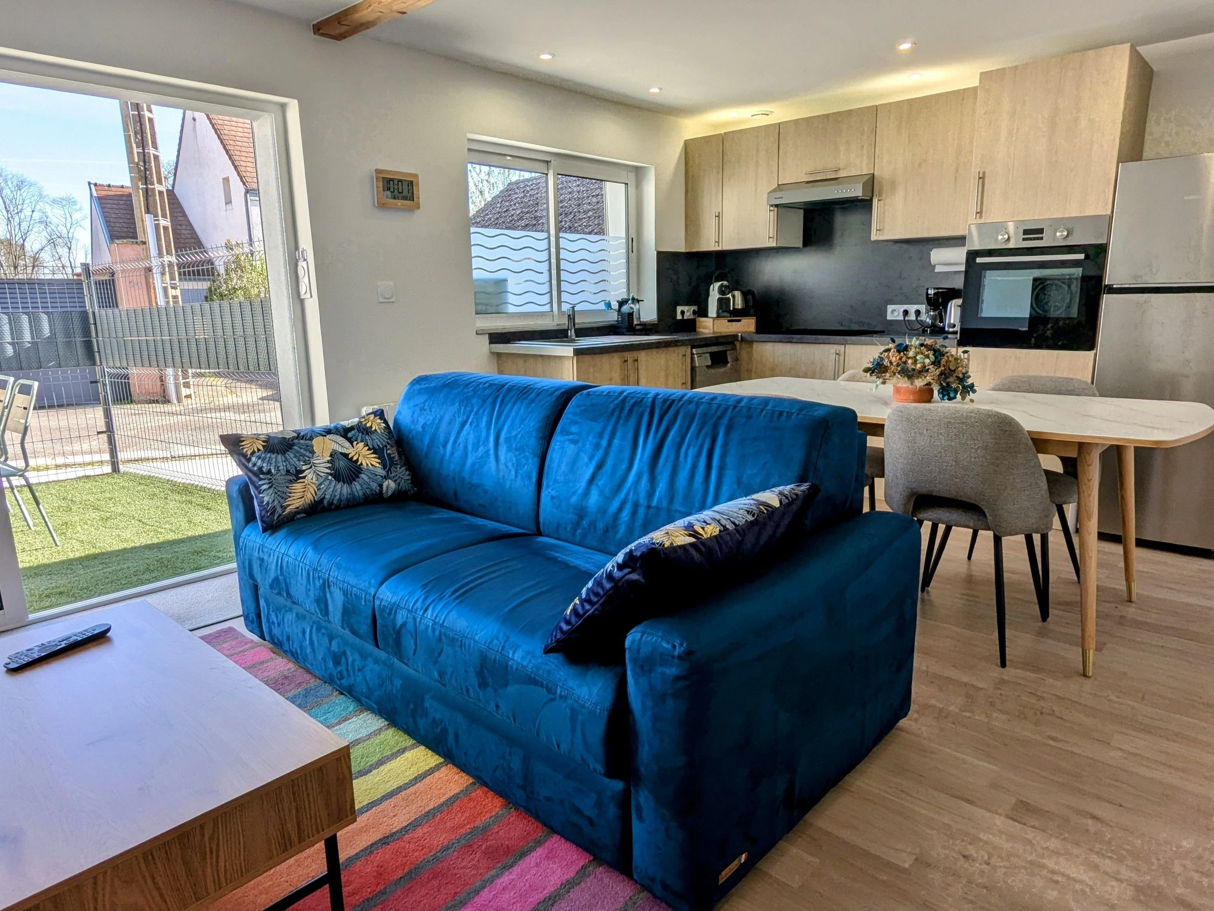 Nur wenige Schritte vom Stadtzentrum von Pontailler-sur-Saône entfernt bietet Ihnen das Ferienhaus „Au Nr. 7“: im Erdgeschoss: eine zum Wohnzimmer offene, voll ausgestattete Küche mit Fernseher, WLAN, angeschlossenem Lautsprecher … ein hochwertiges Schlafsofa mit Schlafgelegenheit für 2 Personen (Matratze 140 cm), einen Waschraum mit Waschmaschine. Babyausstattung vorhanden: Reisebett + Hochstuhl. Obergeschoss: 1 Schlafzimmer mit 1 160 cm breitem Bett (+ 1 zusätzliches Einzelschlafsofa auf Anfrage), 1 Badezimmer mit ebenerdiger Dusche und WC. Klimaanlage. Außenbereich: 1 kleine Terrasse mit Gartenmöbeln, elektrische Plancha. 1 privater Parkplatz vor der Gîte und auch die Möglichkeit, im geschlossenen Hof des Eigentümers gegenüber der Gîte zu parken. Fahrradkeller: Gîte mit der Aufschrift „Accueil vélo“.