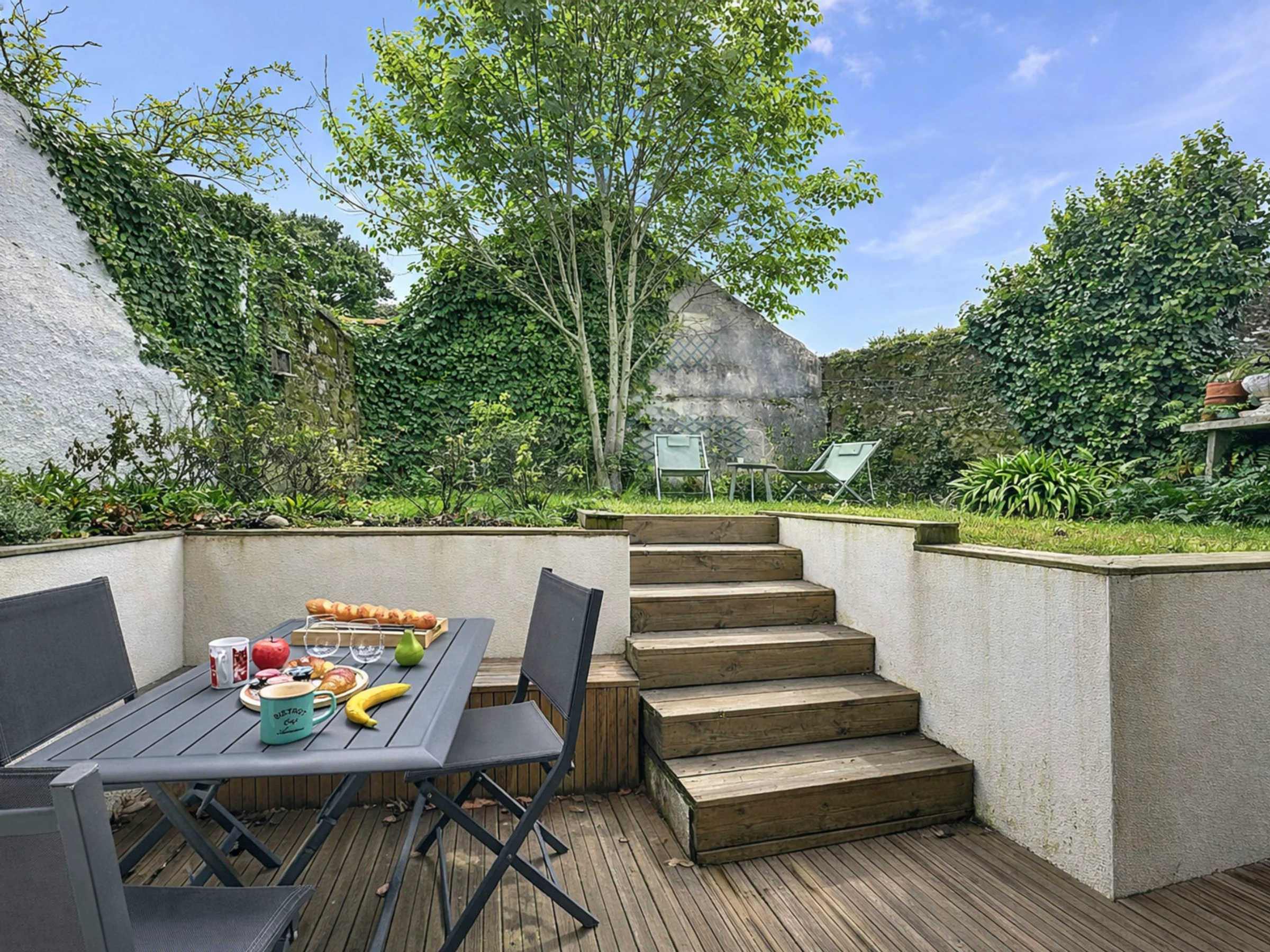 "Le Saint Gilles", 3-Zimmer-Wohnung 48 m2 auf 2 Stockwerken im 1. Stock, Südostlage. Hell, schön eingerichtet: Wohn-/Esszimmer mit 1 Diwanbett (120 cm, Länge 190 cm), TV (Flachbildschirm). Ausgang zum Garten, zur Terrasse, Richtung Süden und Richtung Osten. 1 Zimmer mit 2 Betten (80 cm, Länge 200 cm). Offene Küche (Backofen, Geschirrspüler, 3 Induktionskochplatten, Toaster, Wasserkocher, Mikrowelle, elektrische Kaffeemaschine). Dusche, sep. WC, Doppelwaschbecken. Obergeschoss: 1 Zimmer mit 1 franz. Bett (2 x 80 cm, Länge 200 cm). E-Heizung, Klimaanlage. Kleine Terrasse, Ostlage und Südlage, kleiner Garten 45 m2, Ostlage und Südlage. Terrassenmöbel, Gartengrill, Liegestühle (2). Zur Verfügung: Waschmaschine, Wäschetrockner, Bügeleisen, Babybett bis 2 Jahre, Haartrockner. Internet (WLAN, gratis). Bitte beachten: Nichtraucher-Haus. Rauchmelder, kein Fahrstuhl. Inserat einer Privatperson nach Artikel 155, IV, CGI. [hidden]