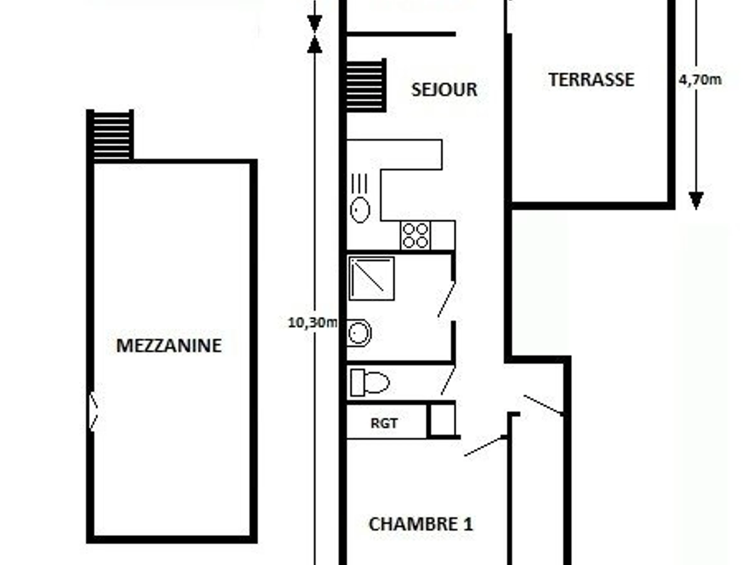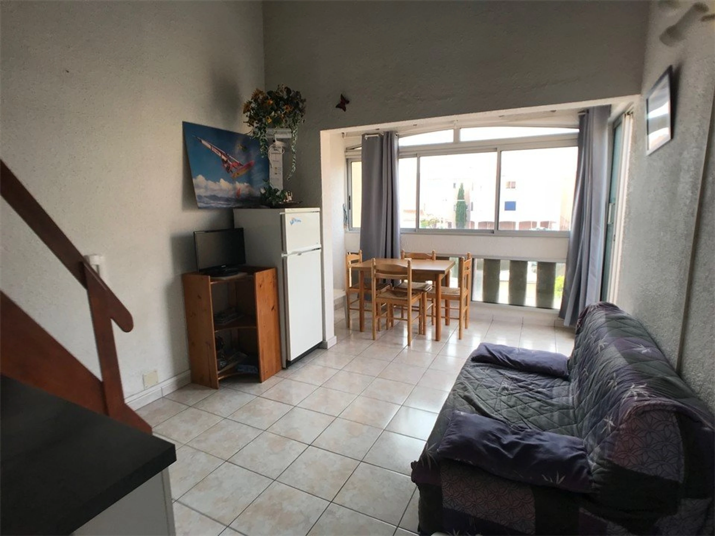 PORT BARCARES (66), im 1. Stock der Residenz NAUTICA. Duschbad, WC, Wohnzimmer mit erweiterter Loggia, neue Küche, Schlafzimmer und Zwischengeschoss – 20 m² große Terrasse mit Grill.