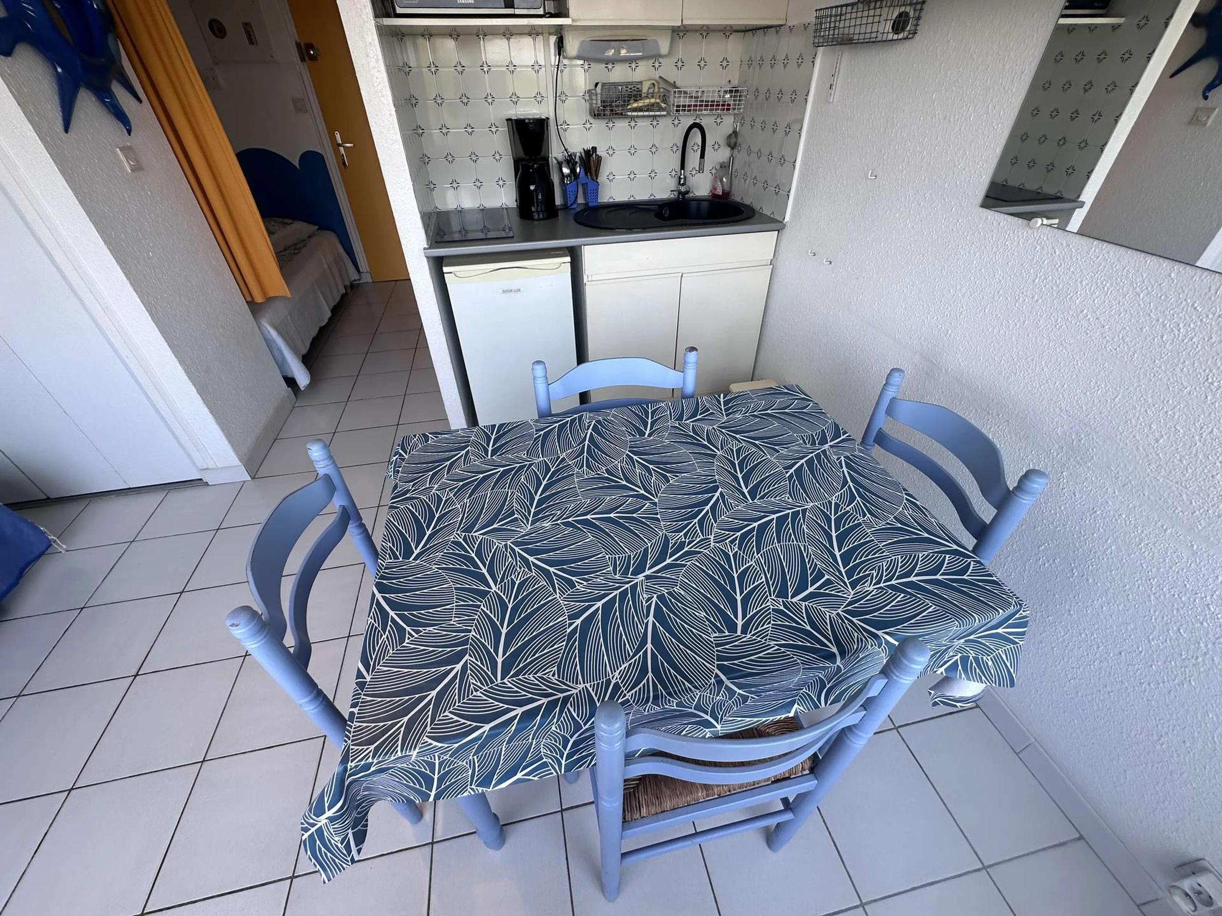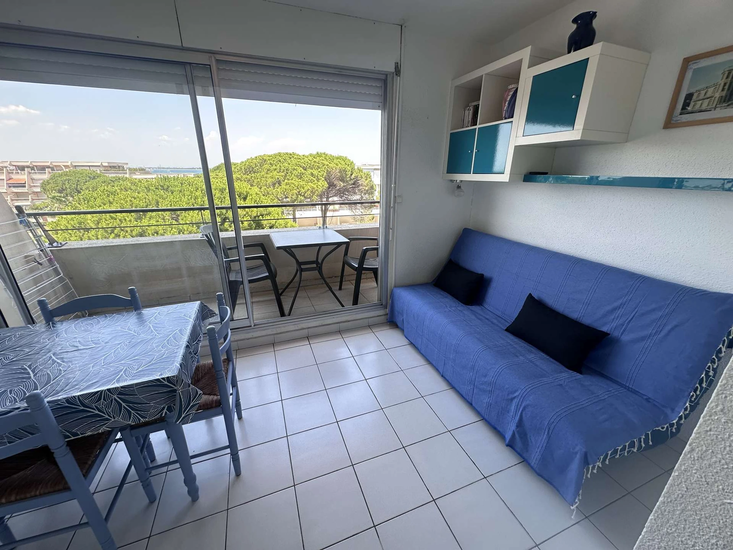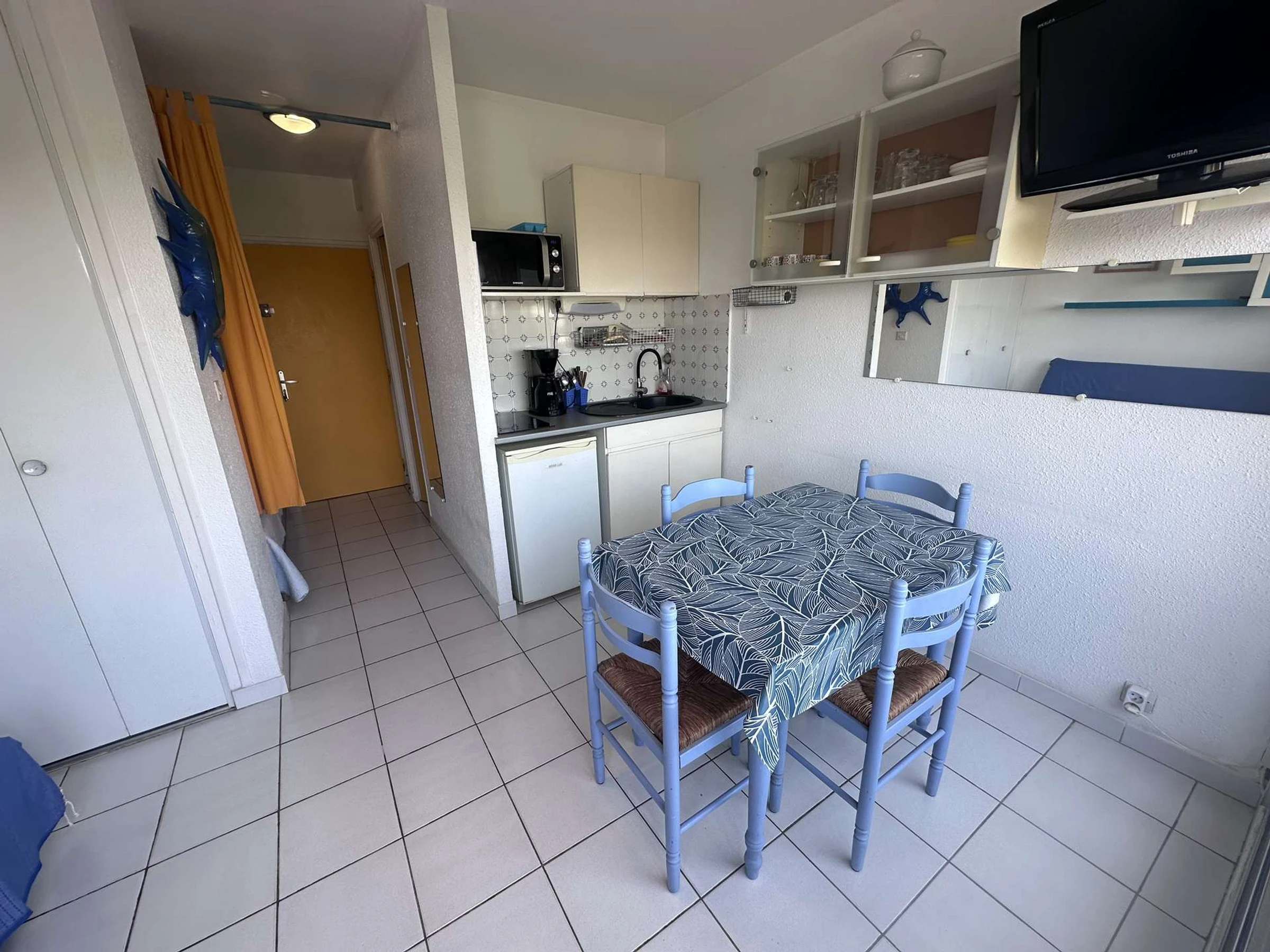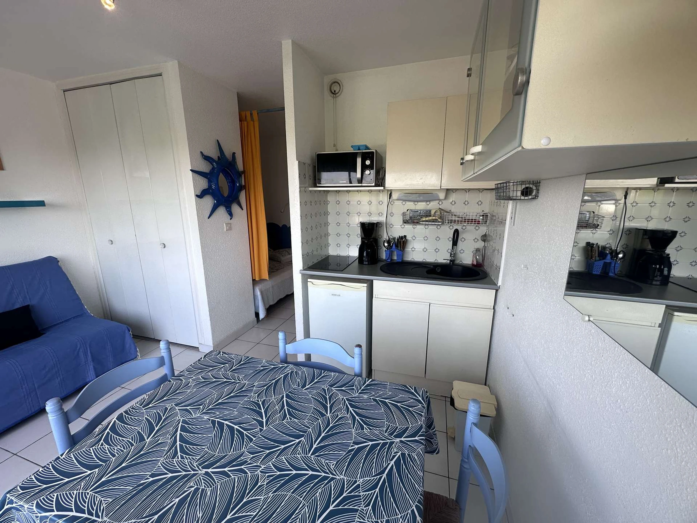 Dieses gemütliche Studio-Apartment befindet sich im 3. und obersten Stockwerk und bietet einen herrlichen Blick auf das Meer und die Ausfahrt zum Yachthafen. Es verfügt über ein Doppelbett (140 cm), ein Badezimmer mit Dusche und WC, ein Wohnzimmer mit Küchenzeile (zwei Elektrokochplatten, Kühlschrank und Mikrowelle), einen Essbereich und einen Farbfernseher sowie ein Doppelschlafsofa (140 cm). Der Balkon bietet einen herrlichen, unverbauten Blick. Dieses Studio wurde komplett renoviert und bietet Platz für 2 bis 4 Personen.