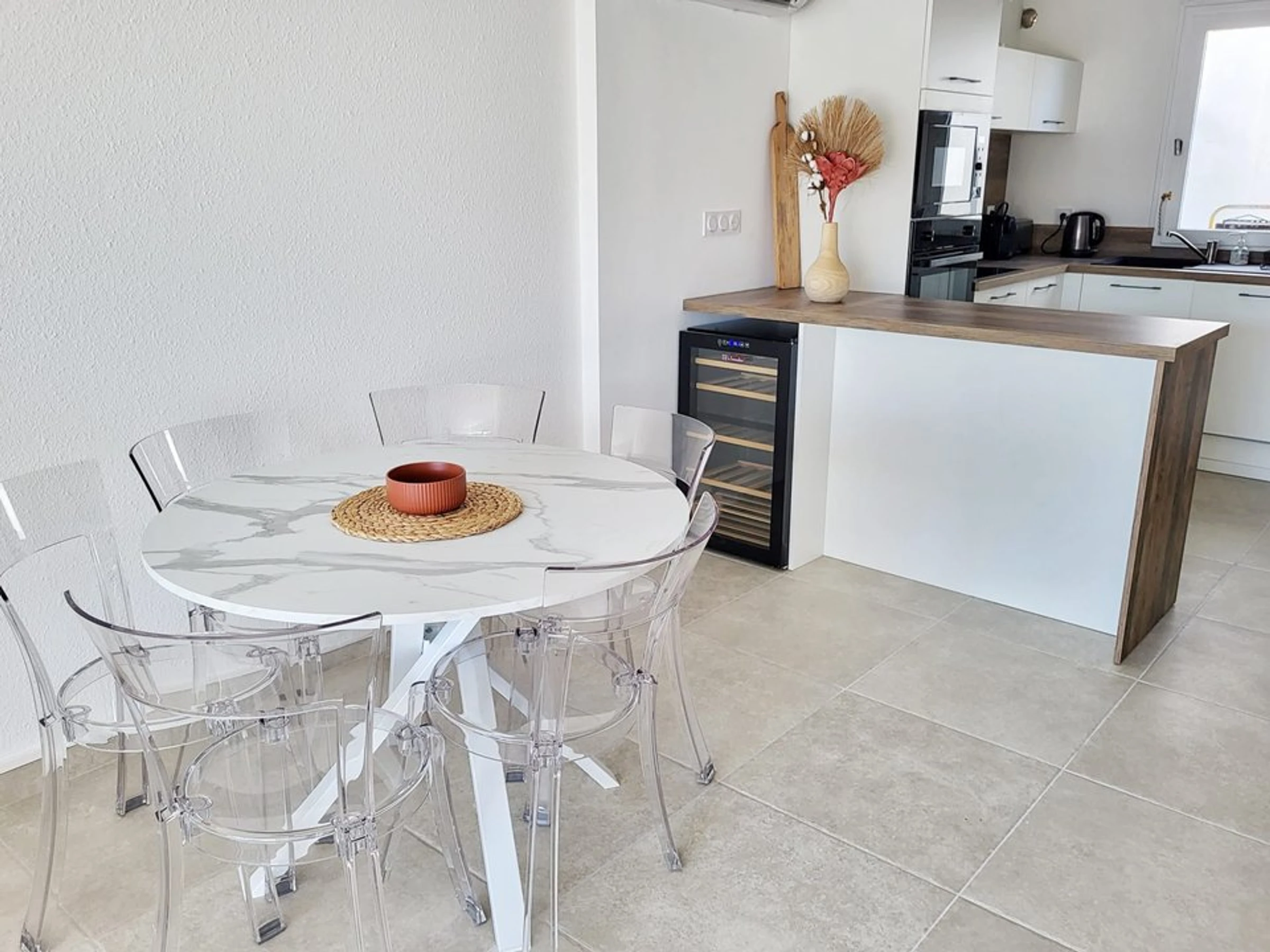 Die Unterkunft bietet im Erdgeschoss ein schönes Wohnzimmer mit offener Küche und Zugang zu einer großen Terrasse mit herrlichem Blick auf den Hafen.