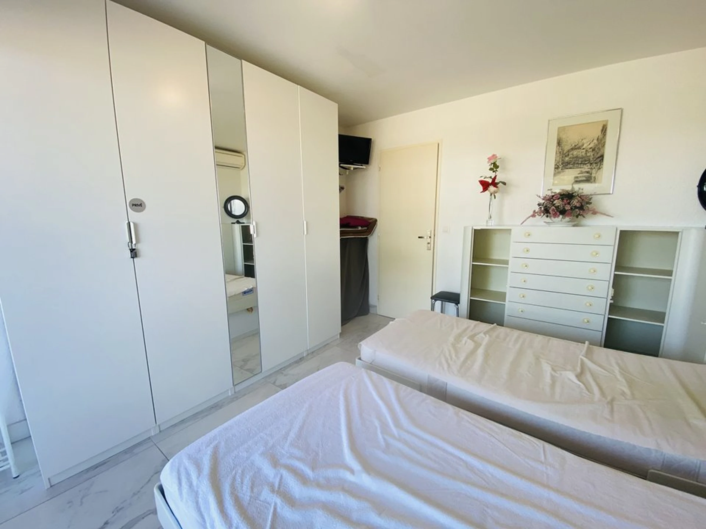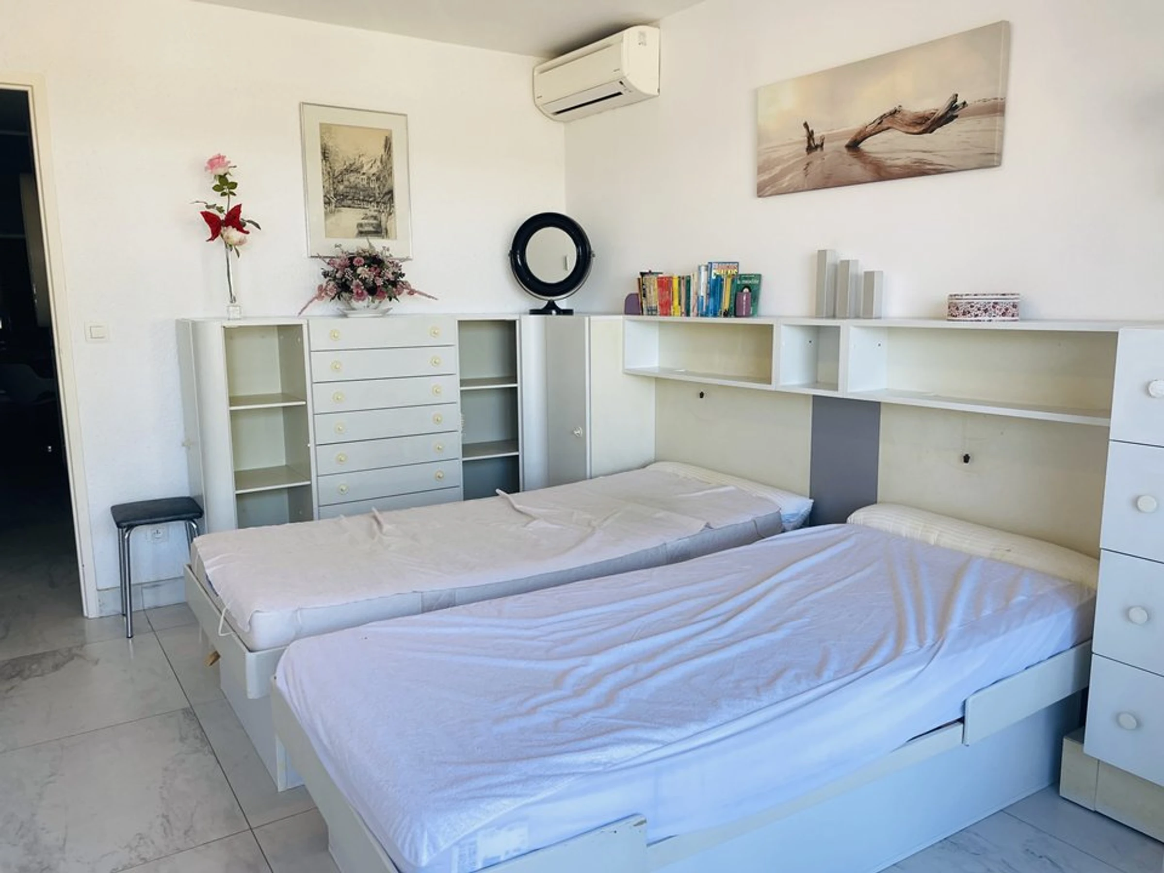 Der Schlafbereich bietet zwei Einzelbetten (90 cm), die zusammengeschoben werden können und einen herrlichen Meerblick ermöglichen.