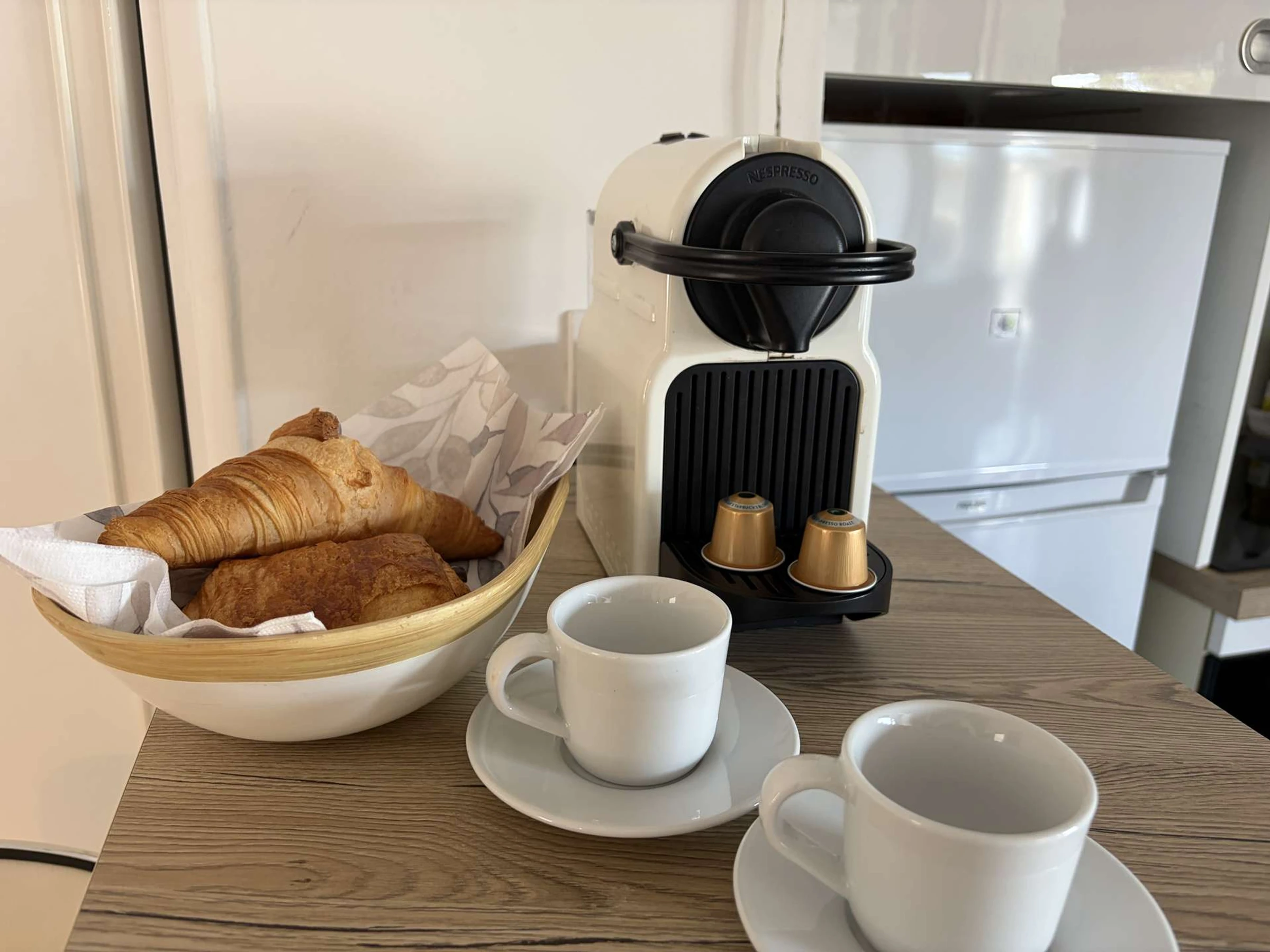 Das helle Wohnzimmer verfügt über eine voll ausgestattete Küche mit Kühlschrank, Backofen, Mikrowelle und einer Krups Nespresso-Maschine für einfache Mahlzeiten und perfekten Kaffeegenuss jederzeit. Das gemütliche Schlafzimmer bietet ein 140 cm breites Doppelbett und eine mobile Klimaanlage für erholsame Nächte. Das funktionale Badezimmer ist mit einem WC ausgestattet. Der Balkon mit Chaiselongue lädt zum Entspannen mit Blick auf den malerischen Kanal ein.