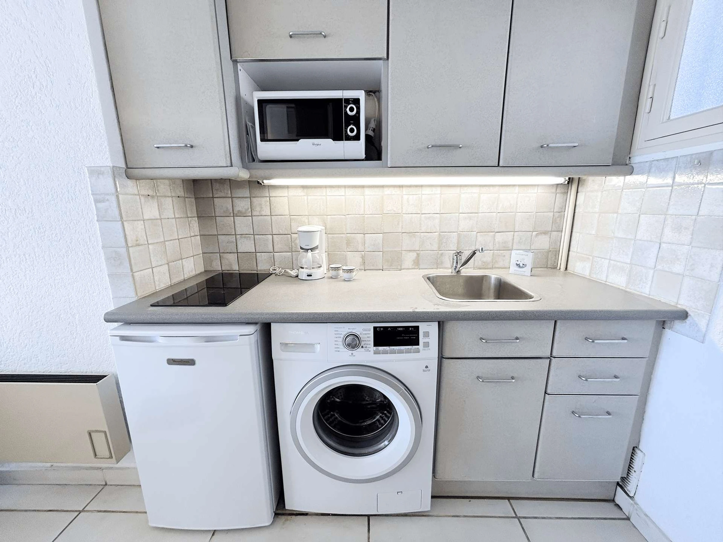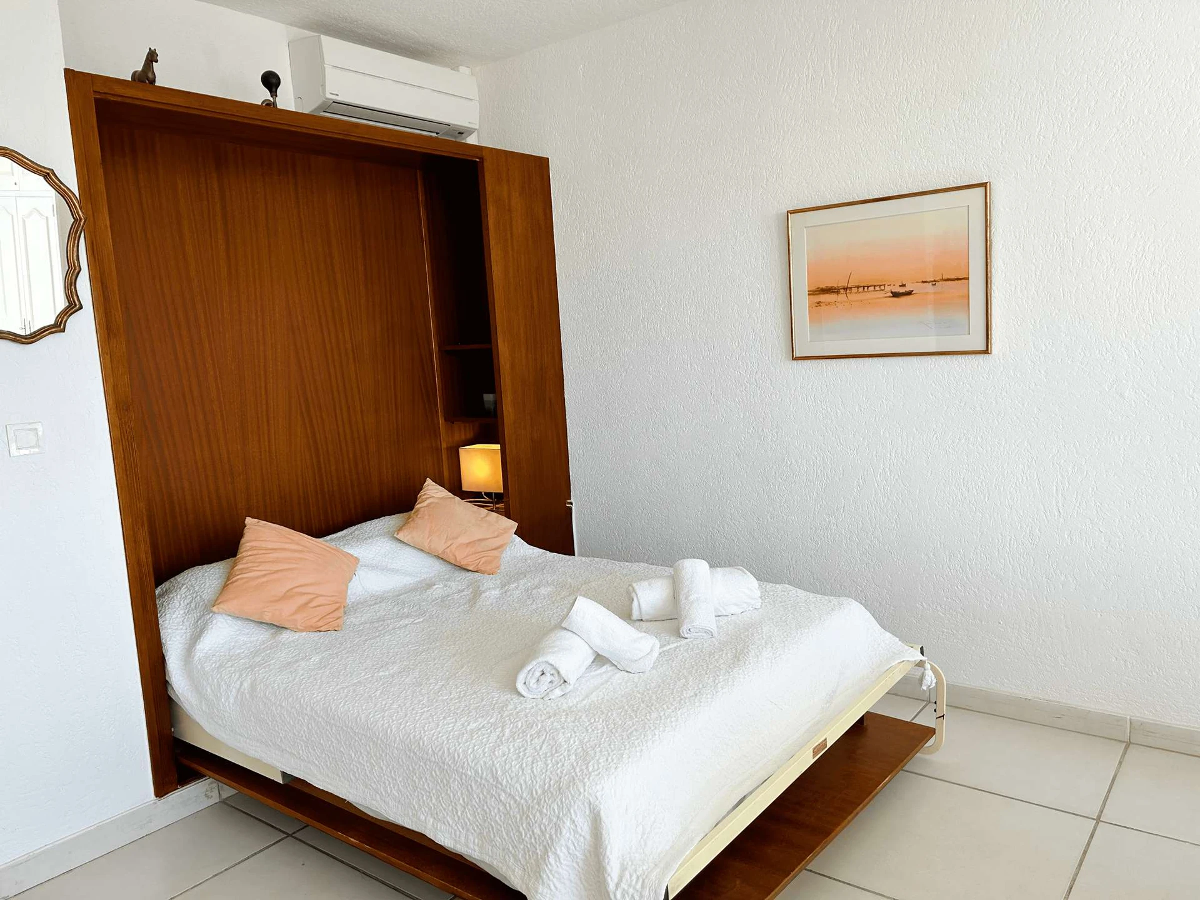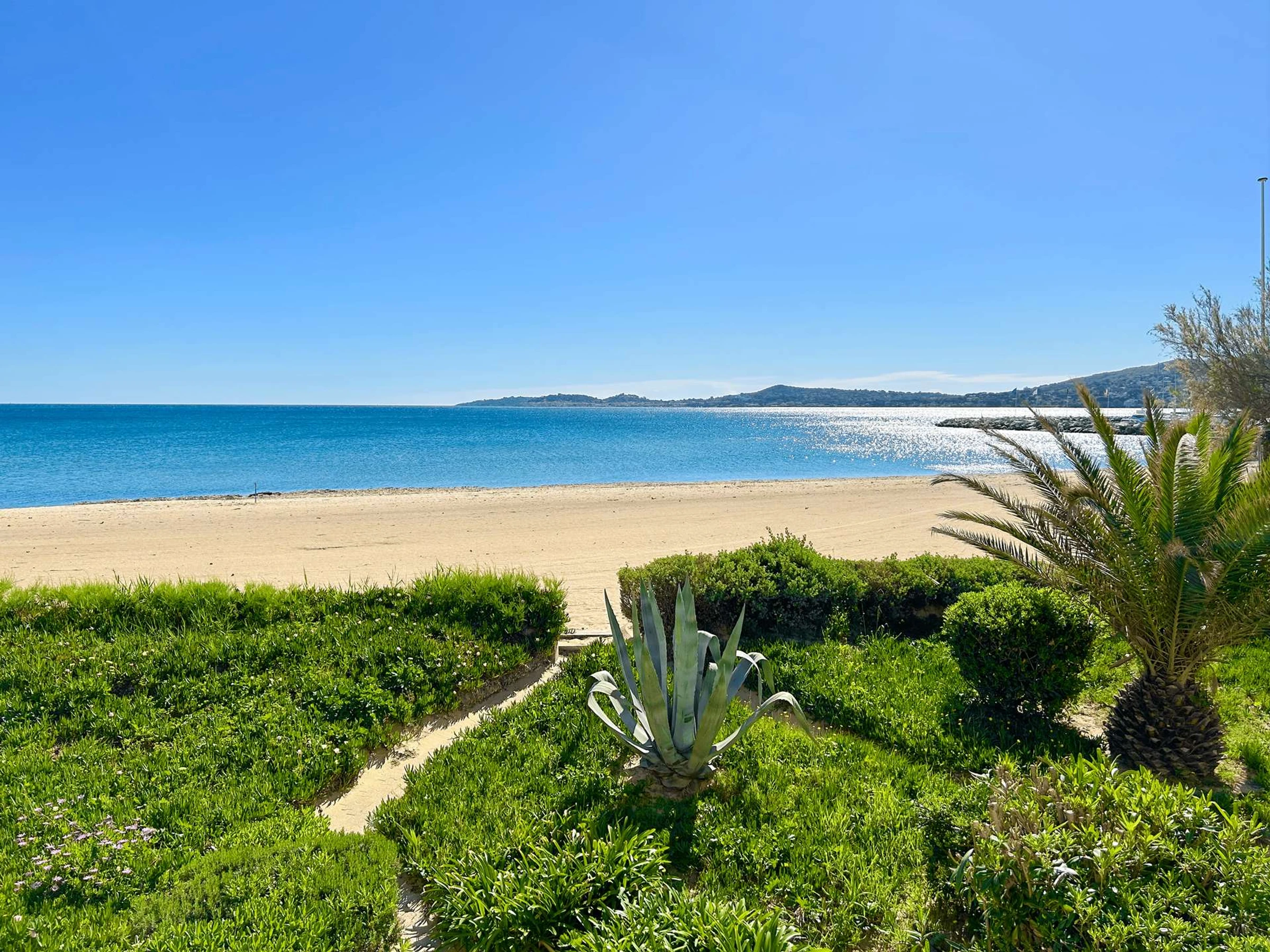 Genießen Sie ein Strandstudio mit Panoramablick auf den Golf von Saint-Tropez und direktem Strandzugang. Das helle und funktionale Studio verfügt über einen Wohnbereich mit einem Doppel-Klappbett (140 cm), eine offene Einbauküche und ein Badezimmer mit WC. Dank Klimaanlage bietet es den perfekten Rahmen für einen entspannten Strandurlaub.