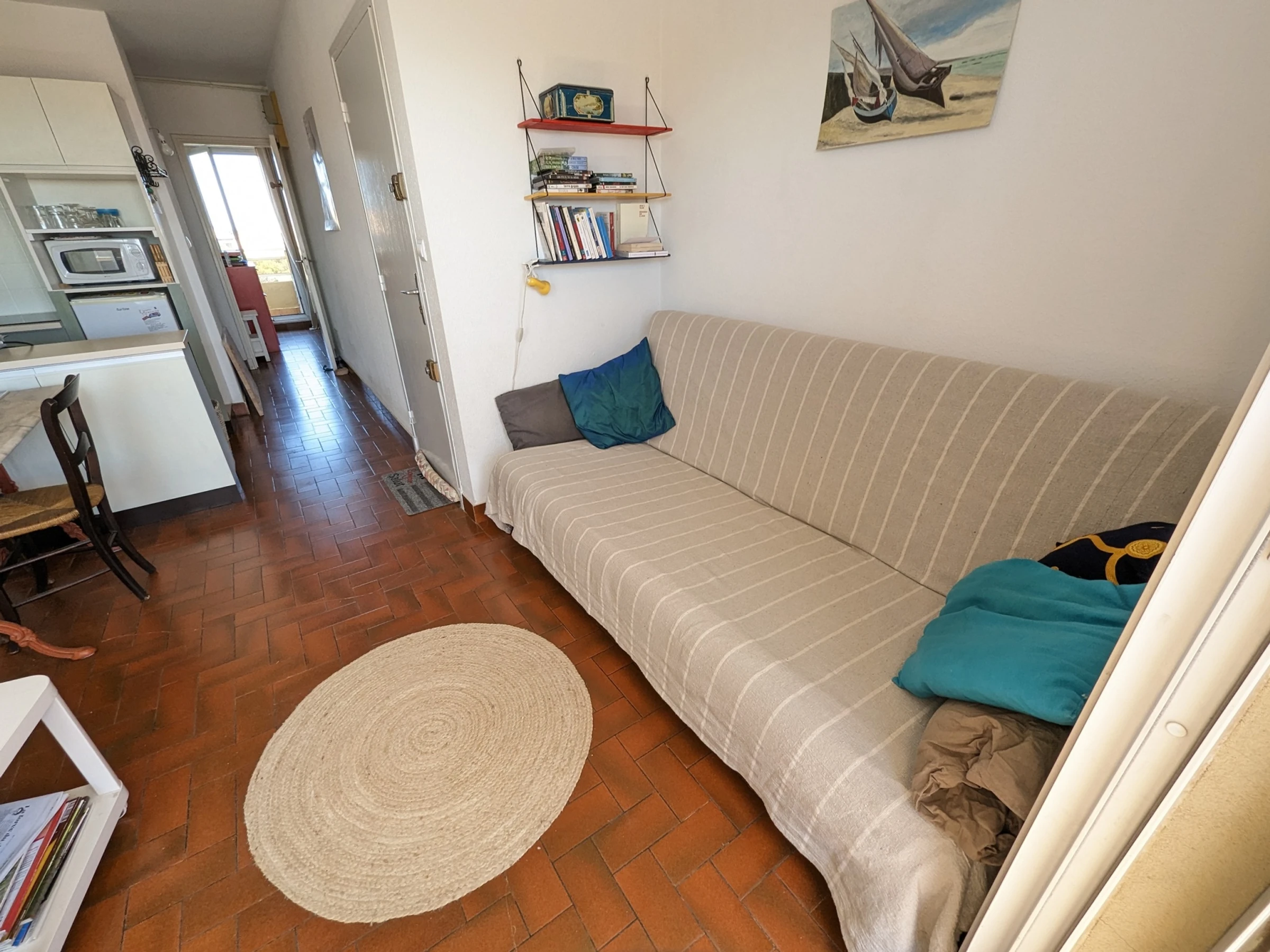 Wohnzimmer: Sofa für 2 Personen. ausgestatteter Küchenbereich. 1 Schlafzimmer: 2 Etagenbetten. Badezimmer. 1 Toilette
