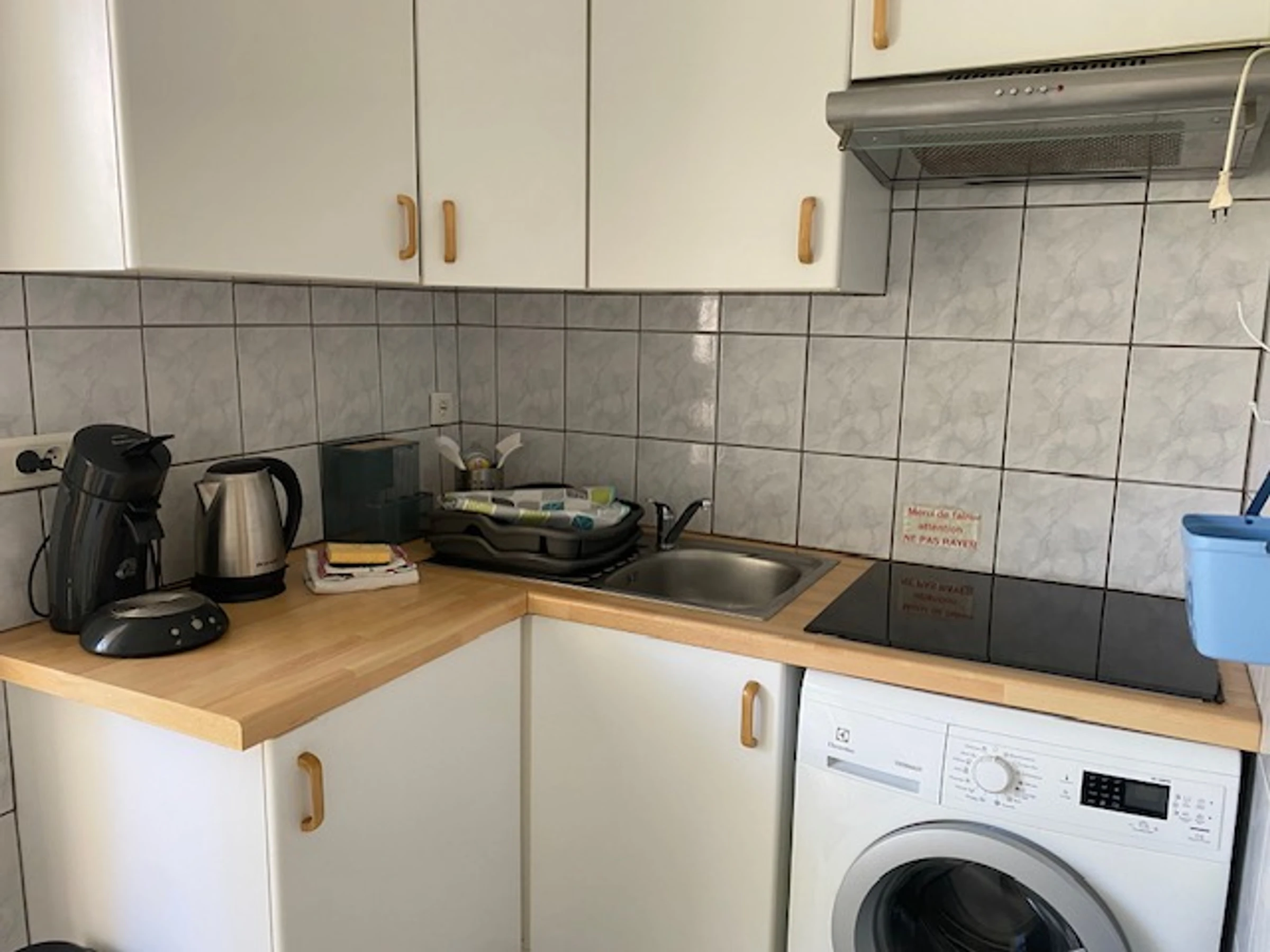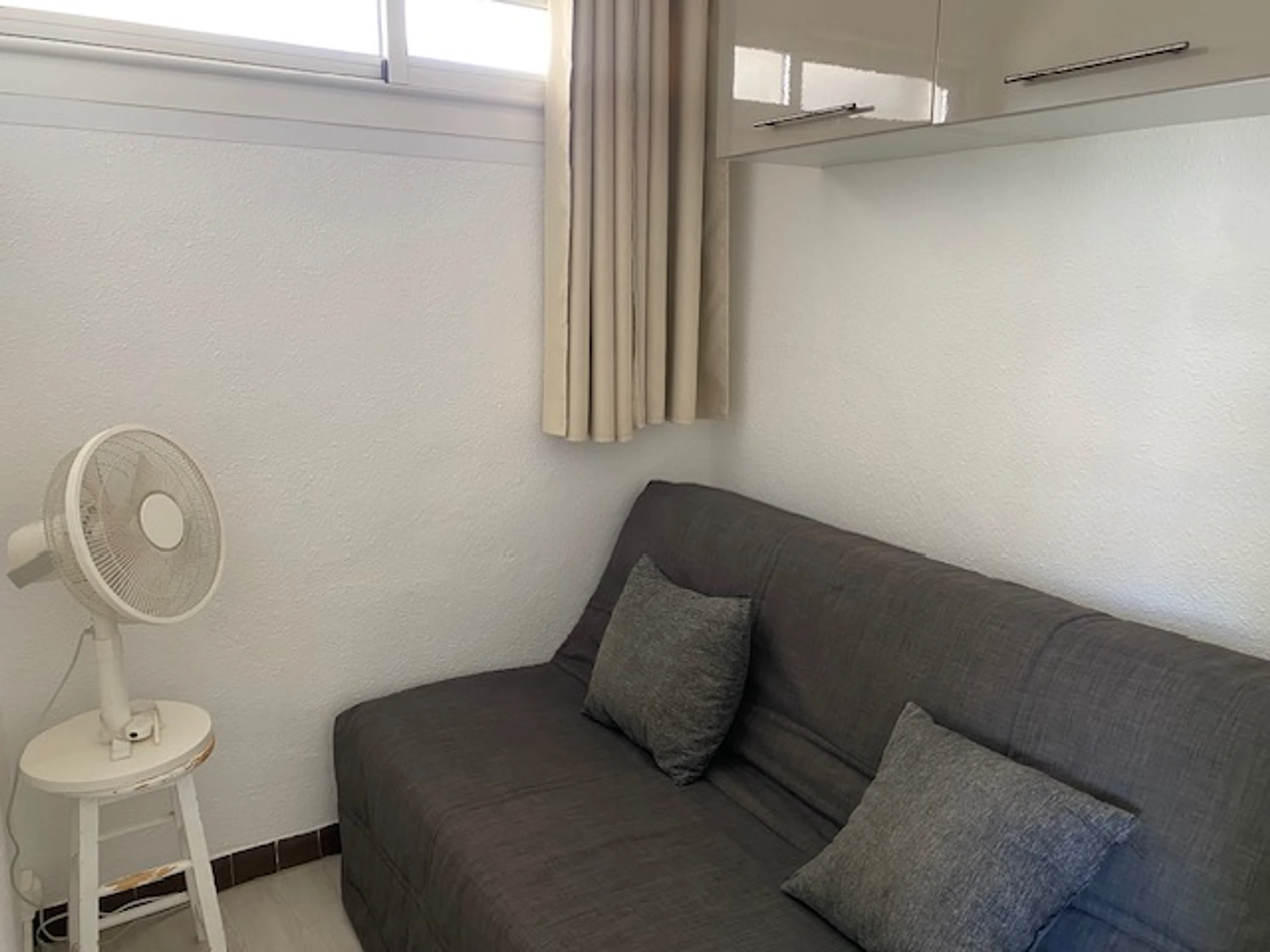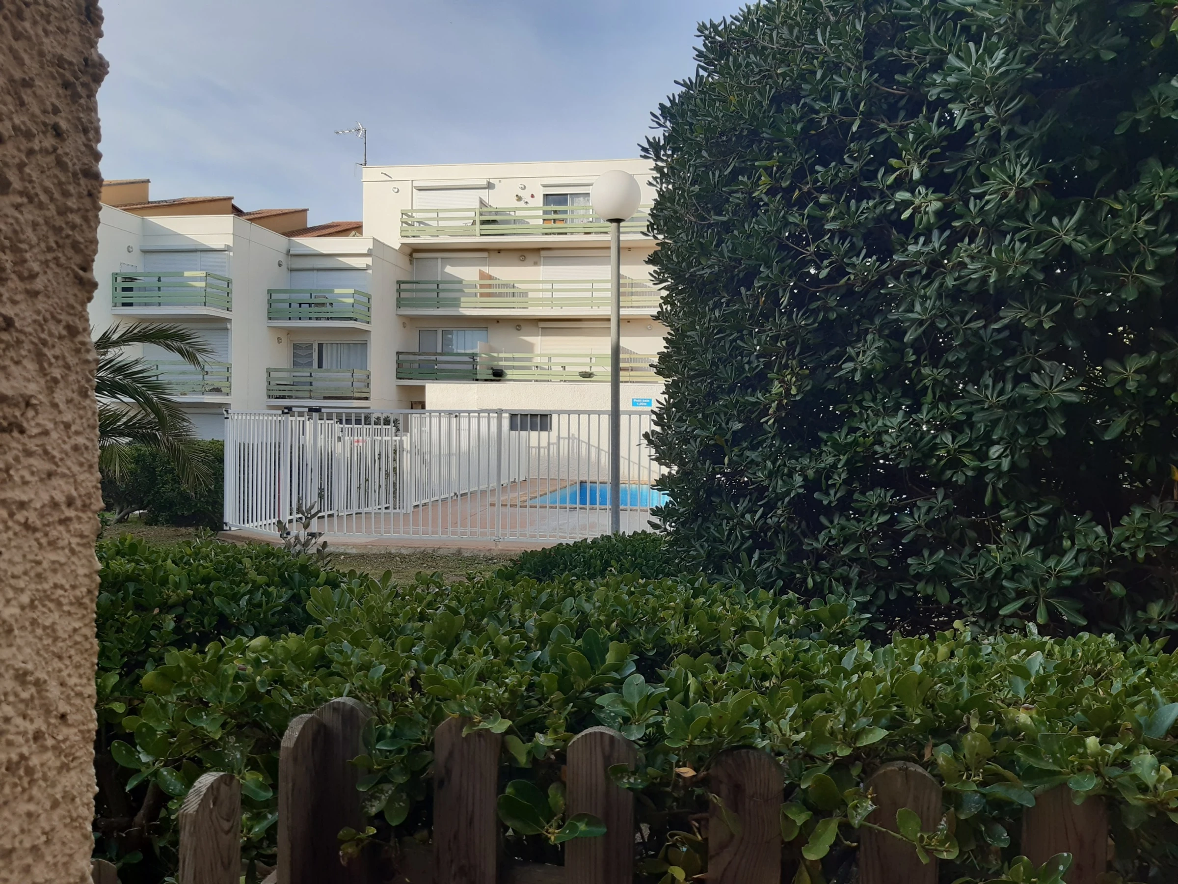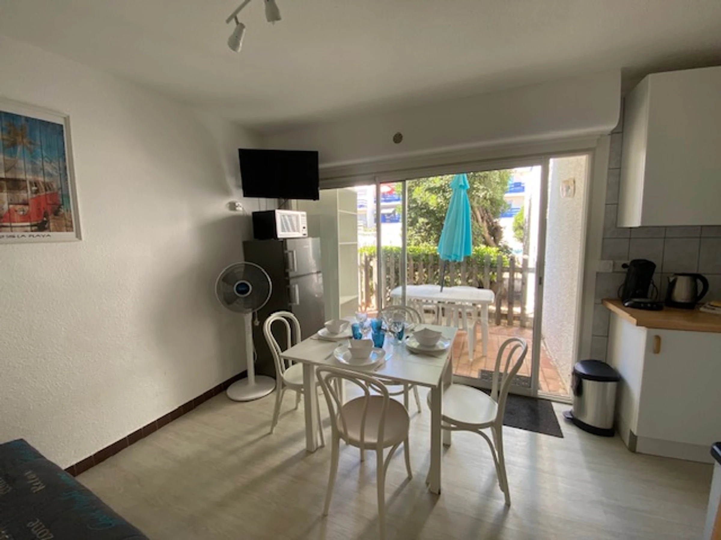 Residenz Etoile du Sud. Für 4 Personen. Komfortables, 20 m² großes Studio-Apartment im Erdgeschoss. Gemeinschaftspool in der Residenz (geöffnet im Juli). Schöne überdachte Terrasse. Wohnzimmer (BZ), ausgestattete Küchenzeile, Schlafbereich in der Kabine (Schlafsofa), Badezimmer mit WC. 150 m vom Strand entfernt.