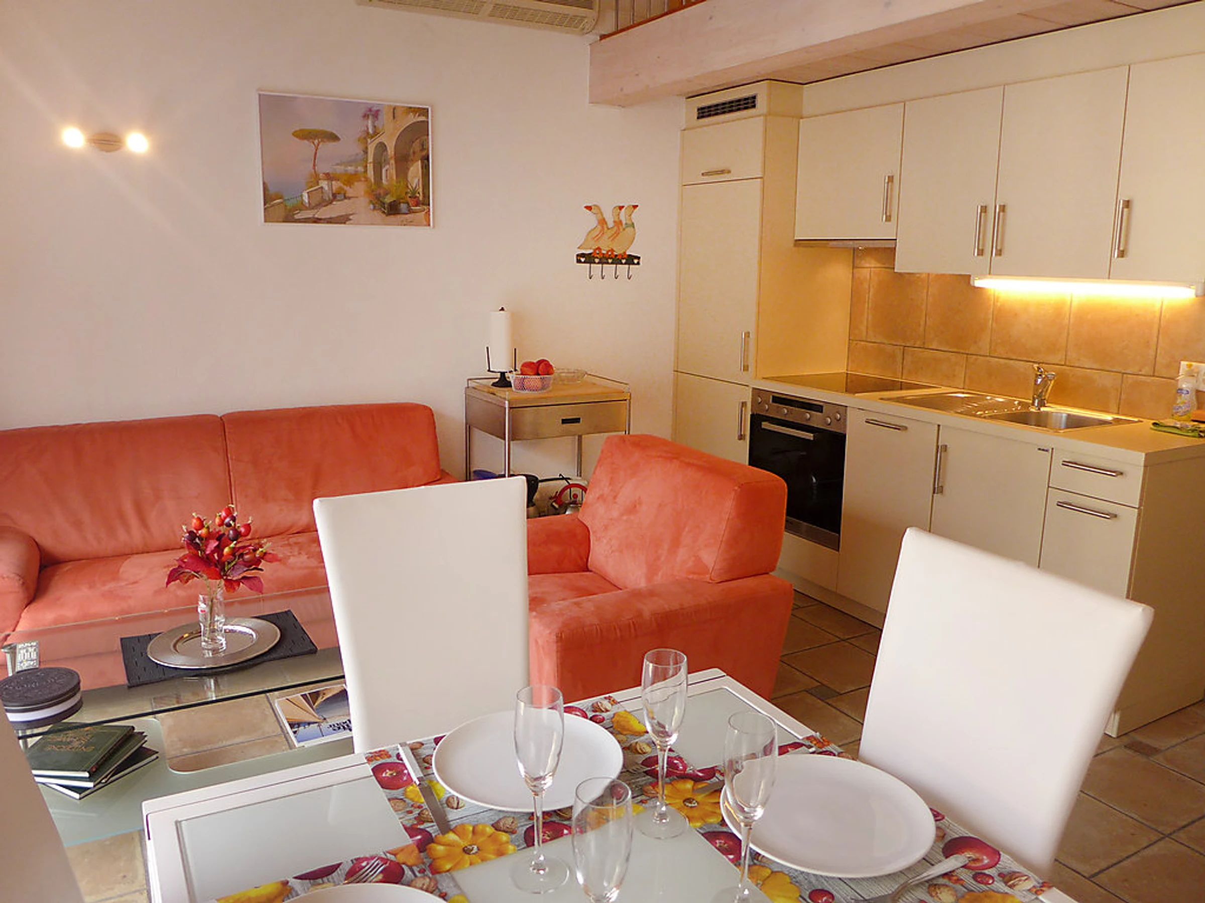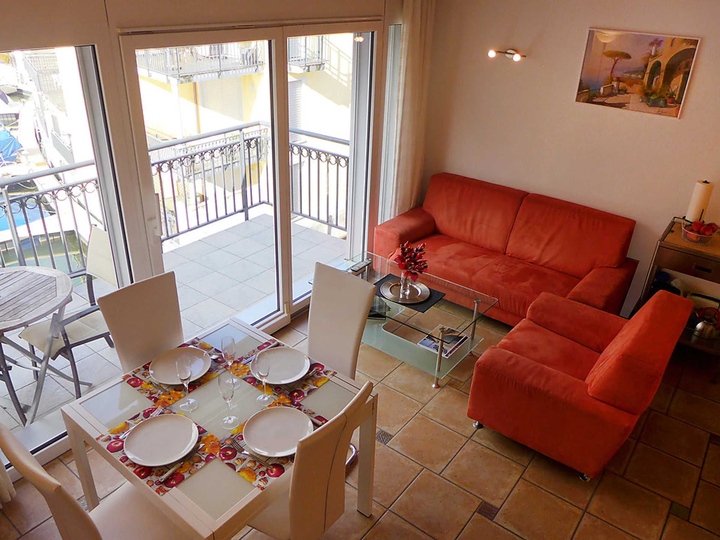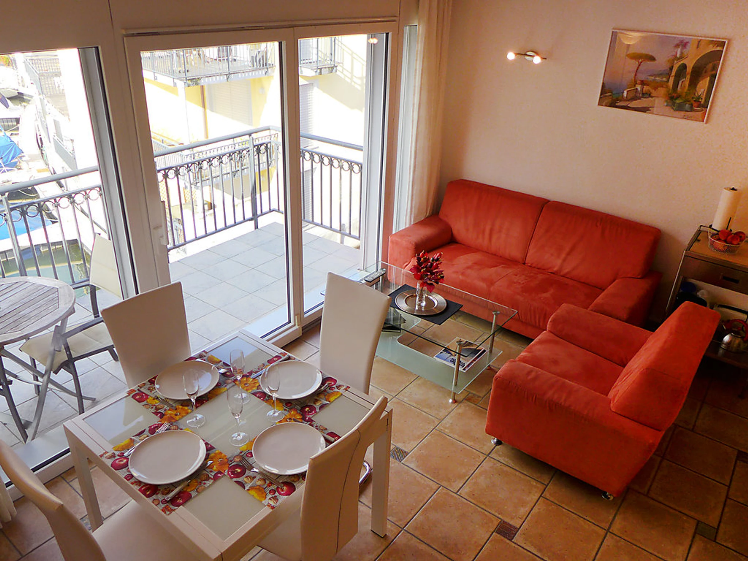 "Apt S5/2 - Residence Tasman", 2-Zimmer-Wohnung 62 m2 auf 2 Stockwerken, im Obergeschoss. Teilweise abgeschrägt, komfortabel eingerichtet: Wohn-/Esszimmer mit Sat-TV, Radio und DVD. Ausgang zum Balkon, Richtung Süden. Abgeschrägte Galerie mit 2 Betten (90 cm, Länge 190 cm). 1 Doppelzimmer mit 1 Doppelbett. Ausgang zum Balkon, Richtung Norden. Offene Küche (Backofen, Geschirrspüler, 4 Glaskeramikherd Platten). Bad/WC. Terrassenmöbel. Schöne Sicht auf den Hafen. Zur Verfügung: Waschmaschine, Wäschetrockner. Parkplatz Nr. 64 (überdacht). Enthaltet: Wäsche (Erstausstattung Bett- und Toilettenwäsche), ERV assurance annulation gratuite, Endreinigung Erhältlich vor Ort mit Aufpreis: Babybett (bis 2 Jahre) 5.0EUR pro Tag Obligatorische Extra Dienstleistungen vor Ort: Kurtaxe 1.3EUR pro Person/Tag