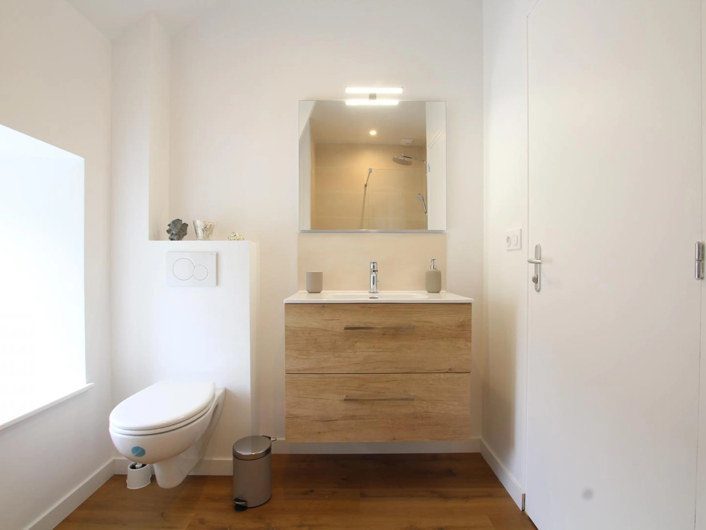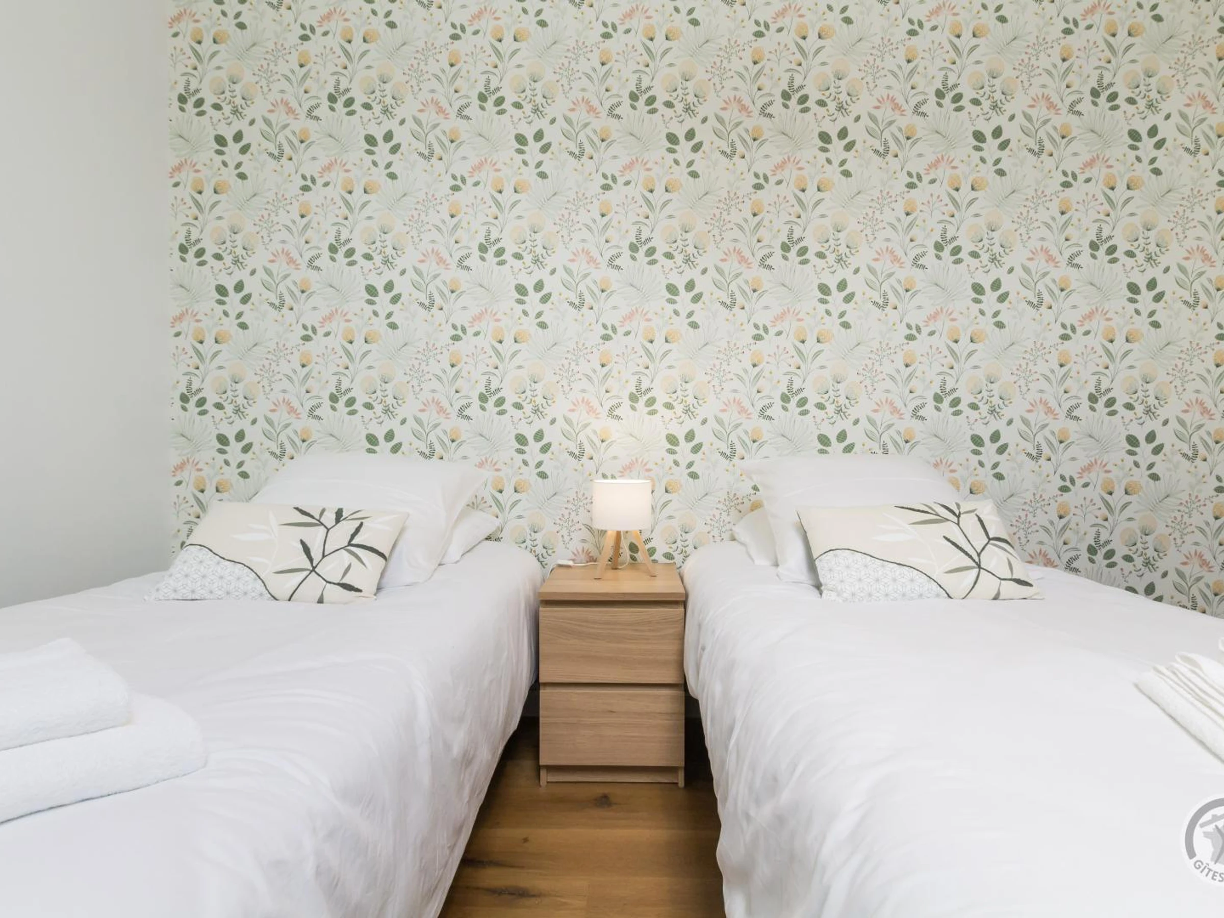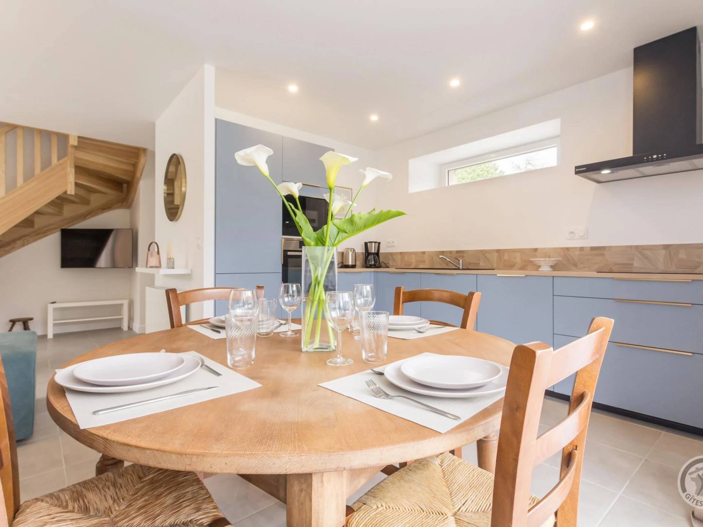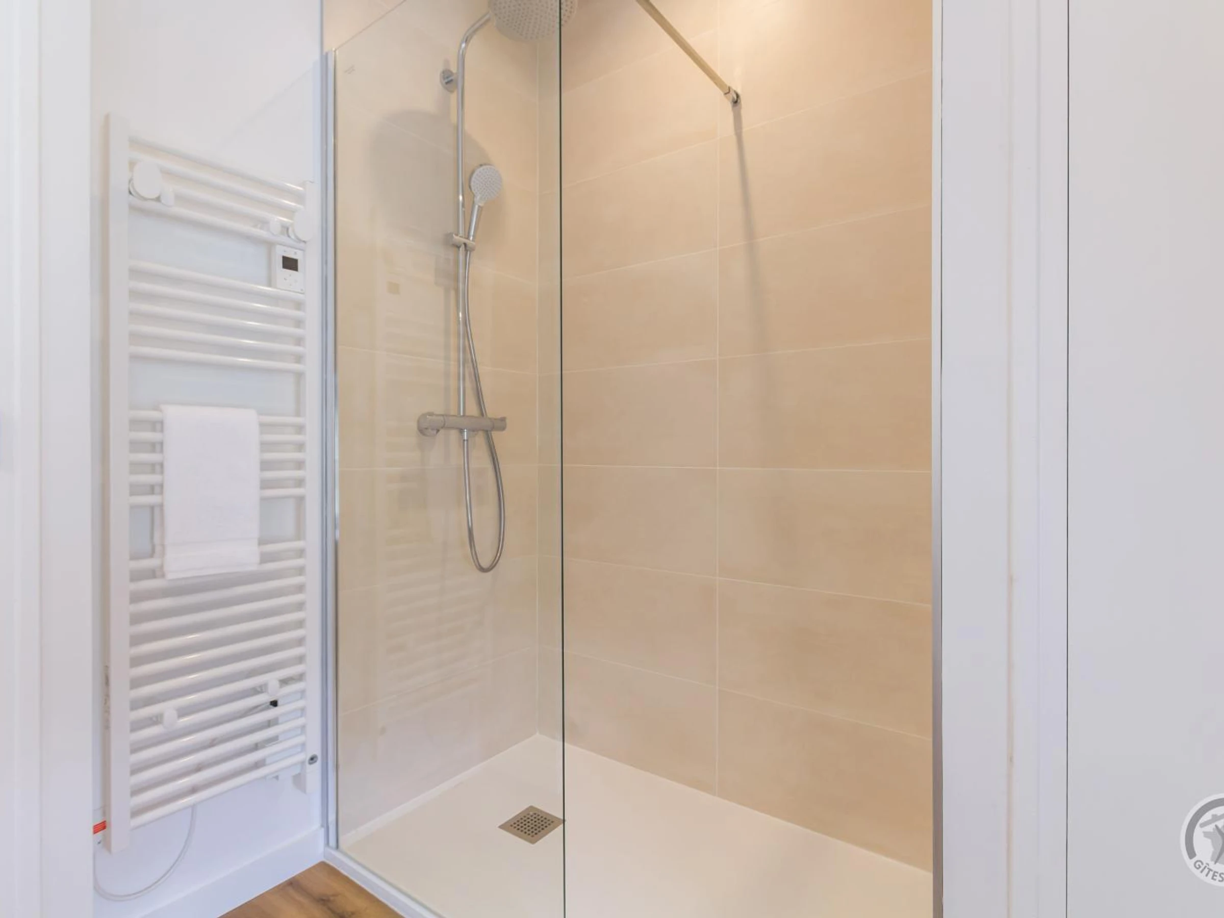 Doppelhaushälfte. Im Erdgeschoss: Eingangshalle (Waschmaschine). Wohnzimmer (Smart-TV, ADSL-Internet). Offene Küche (Induktionskochfeld, Dunstabzugshaube, Espressomaschine, Geschirrspüler, Elektroherd, Mikrowelle, Kühl-/Gefrierkombination). WC. Obergeschoss: Treppenabsatz mit Bürobereich. Schlafzimmer 1 (Bett 160x200). Schlafzimmer 2 (2 Einzelbetten 90x200). Duschraum mit WC (Waschbecken, begehbare Dusche, Handtuchwärmer, Föhn). Außenbereich: Gemeinsamer, nicht eingezäunter Garten. Gemeinsamer Hof mit Parkplatz. Private, überdachte Terrasse. Gartenmöbel. Liegestühle. Plancha. Teich vor Ort. Überdachter Unterstand (Fahrräder und Motorräder). Elektroheizung inklusive. Bettwäsche und Handtücher werden gestellt (Betten bei Ankunft gemacht). Bei längeren Aufenthalten wöchentlicher kompletter Wäschewechsel. Optionaler Reinigungsservice gegen Aufpreis. Babyausstattung auf Anfrage. Ein Haustier mit Zustimmung des Eigentümers erlaubt. Das Domaine les Sources in Portbail-sur-Mer an der Westküste der Halbinsel Cotentin bietet eine authentische Umgebung und Ruhe. Mit einem 8.000 m² großen Park und einem Teich können Sie durch die schattigen Gärten schlendern oder am Wasser entspannen. Carole, die Eigentümerin, die auch die Gästezimmer im Haupthaus verwaltet, hat kürzlich die alten Stallungen restauriert und bietet zwei weitere Ferienhäuser für vier Personen an: Paul und Justine. Sie freut sich darauf, Sie willkommen zu heißen und Ihnen diese Oase der Ruhe zu zeigen! Ein Bonus: Der Wanderweg GR223 und der Greenway befinden sich direkt neben dem Anwesen für Wanderfreunde. Genießen Sie eine Meeresfrüchteplatte (Reservierung erforderlich).