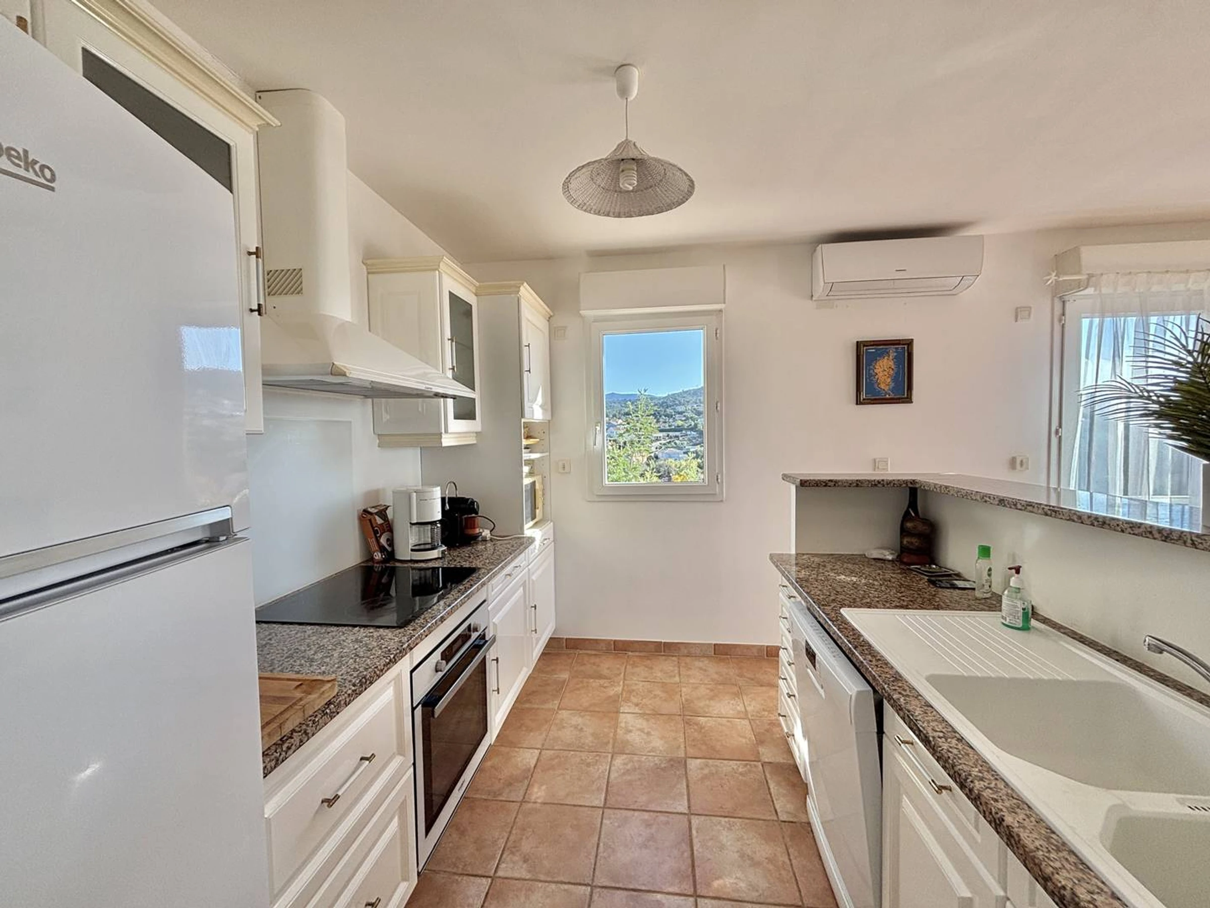 Diese voll klimatisierte Villa besteht aus: einem Eingang mit Abstellraum, einer Einbauküche mit angrenzender Speisekammer, die zum Wohn-Esszimmer führt, und alle führen auf die Terrasse mit Blick aufs Meer. Zwei Schlafzimmer mit gemeinsamem Duschraum und WC, ein separates WC und ein drittes Schlafzimmer mit Duschraum.