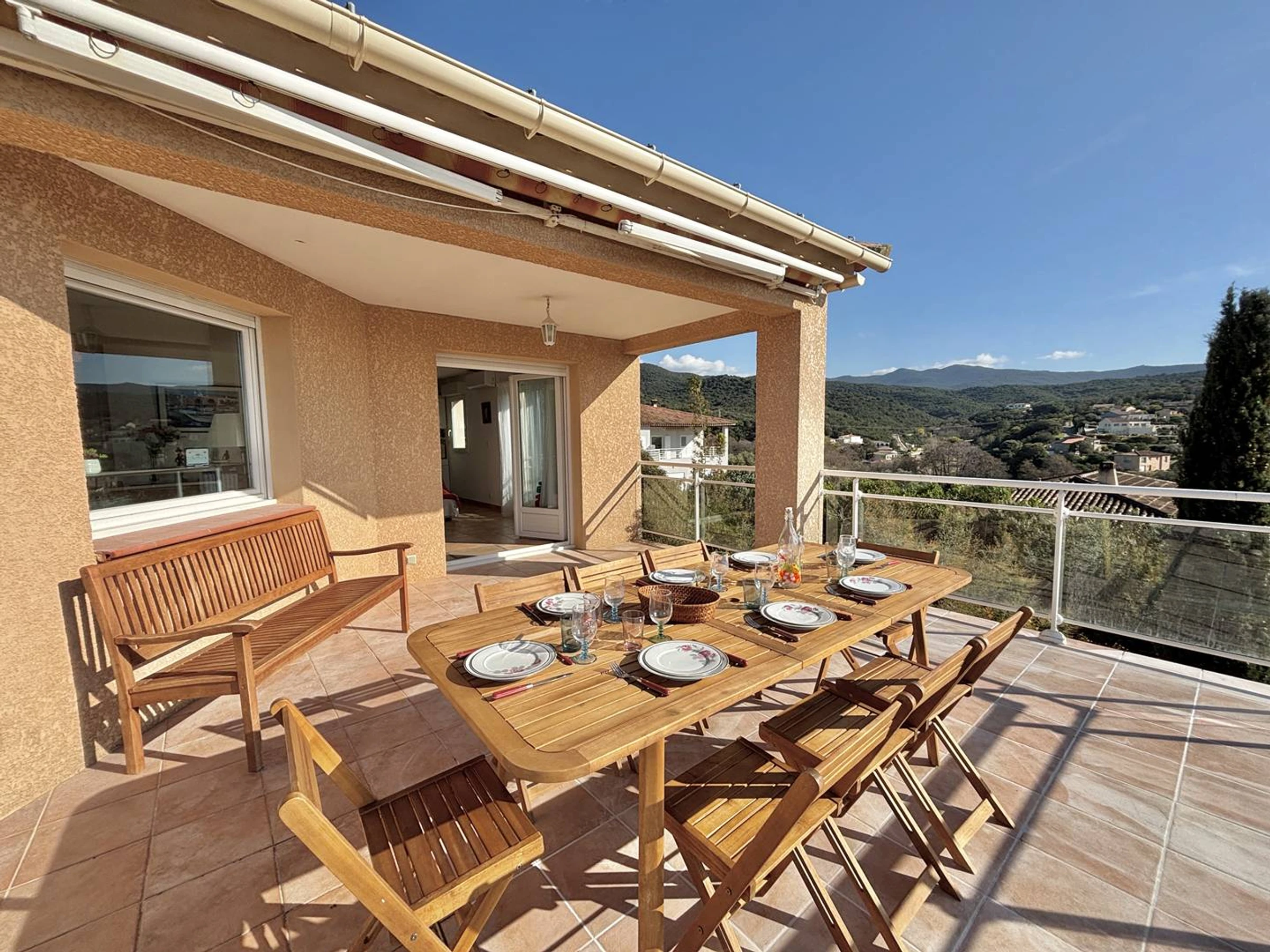 Die Villa „U Regalu“ liegt im Wohngebiet „Les Molini“ in Porticcio, nur 750 m vom Strand von Agosta und seinen Wassersportaktivitäten entfernt, und bietet Ihnen eine außergewöhnliche Lage, in der Sie die Ruhe dieses Wohngebiets genießen und gleichzeitig in der Nähe aller Annehmlichkeiten sind.
