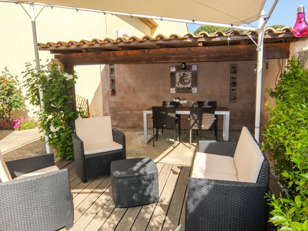 Portiragnes: Einfamilienhaus "Villa des Faisses". Im Ort, 150 m vom Zentrum von Portiragnes Village, ruhige, sonnige Lage in einem Wohnquartier, 2.5 km vom Meer, 2.5 km vom Strand, 400 m vom Kanal, Richtung Osten. Zur Alleinbenutzung: gepflegter Garten 350 m2 (eingezäunt) Pflanzen und Blumen, Parkplatz (für 2 Autos) auf dem Grundstück, öffentliche Parkplätze auf der Strasse. Nahe gelegene Sehenswürdigkeiten: Canal du Midi.