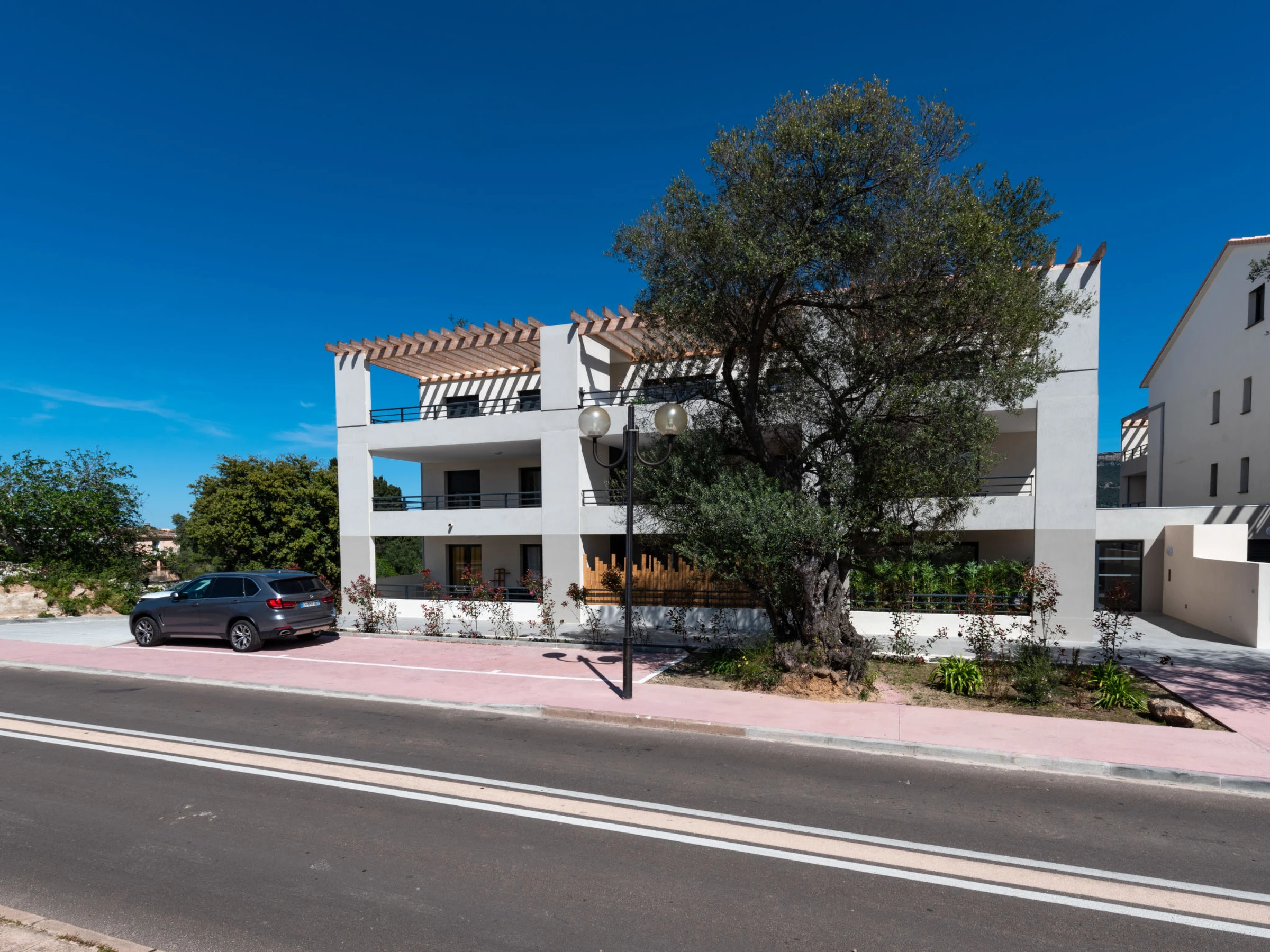 Moderne Residenz auf 3 Stockwerken, Baujahr 2021. Im Ort, 700 m vom Zentrum von Porto-Vecchio, 1.5 km vom Meer, 4 km vom Strand. Lebensmittelgeschäft 300 m, Supermarkt 1 km, Restaurant 700 m, Zentrum zu Fuss in 5 Minuten erreichbar, Bushaltestelle 160 m. Sporthafen 1 km. Nahe gelegene Sehenswürdigkeiten: Plage de Palombaggia 9 km, Plage de Santa Giulia 6 km, Bonifacio 24 km. Bekannte Seen in der Umgebung sind gut erreichbar: Lac de l'Ospédale 21 km. Wandergebiete: l'Ospédale 21 km, Les aiguilles de Bavella 50 km. Bitte beachten: Fahrzeug empfohlen.