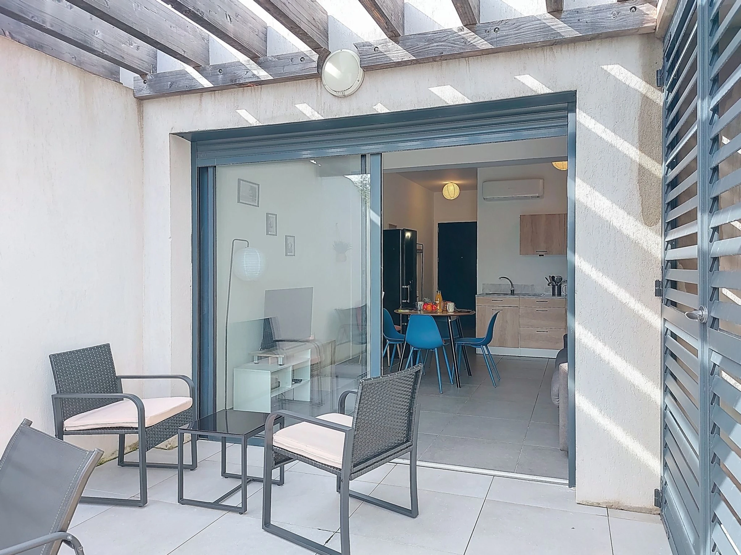 "Studio Côté Sud 5", 1-Zimmer-Studio 27 m2. Schön und modern eingerichtet: Wohn-/Esszimmer mit Panoramafenster mit 1 Doppeldiwanbett (160 cm, Länge 190 cm), TV (Flachbildschirm), elektrischem Rollladen. Ausgang zur Terrasse. Kochnische (Backofen, 3 Induktionskochplatten, Toaster, Wasserkocher, Mikrowelle, elektrische Kaffeemaschine). Dusche/WC. E-Heizung, Klimaanlage. Terrasse 20 m2, Ostlage. Terrassenmöbel. Sicht auf die Landschaft. Zur Verfügung: Waschmaschine, Bügeleisen, Haartrockner. Internet (WLAN, gratis). Parkplatz Nr. 58 (1 Auto). Bitte beachten: Maximal 1 Haustier/Hund erlaubt. Rauchmelder. Inserat einer Privatperson nach Artikel 155, IV, CGI. [hidden]