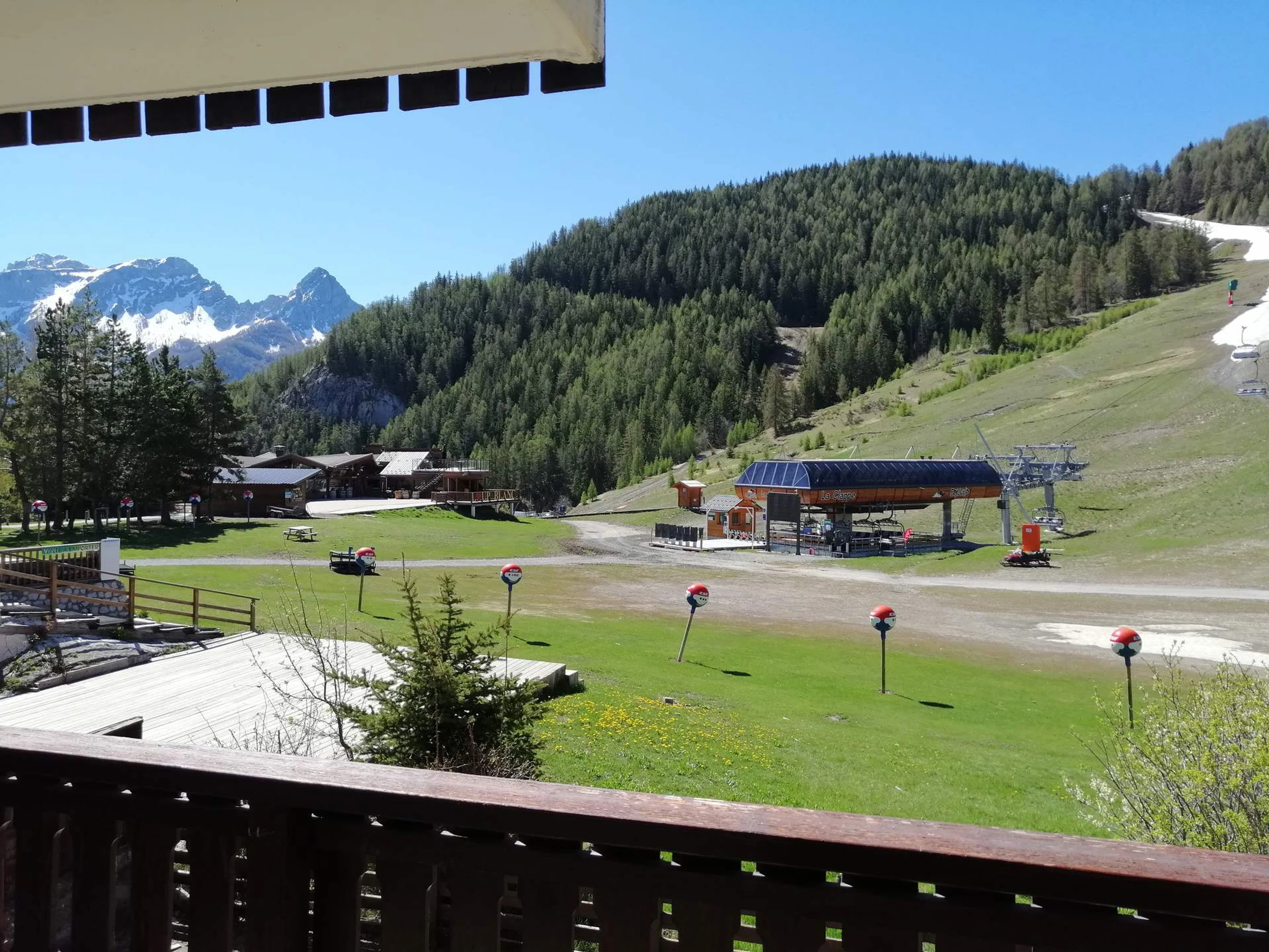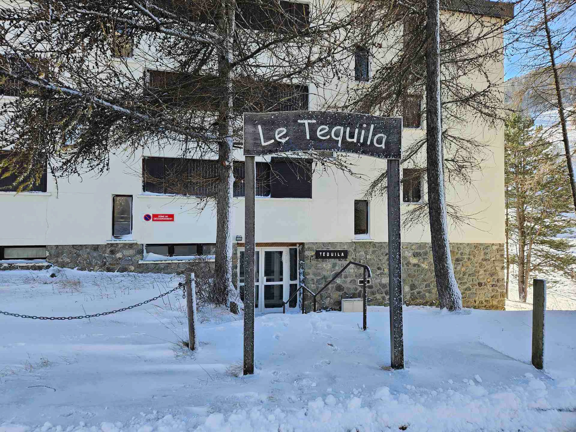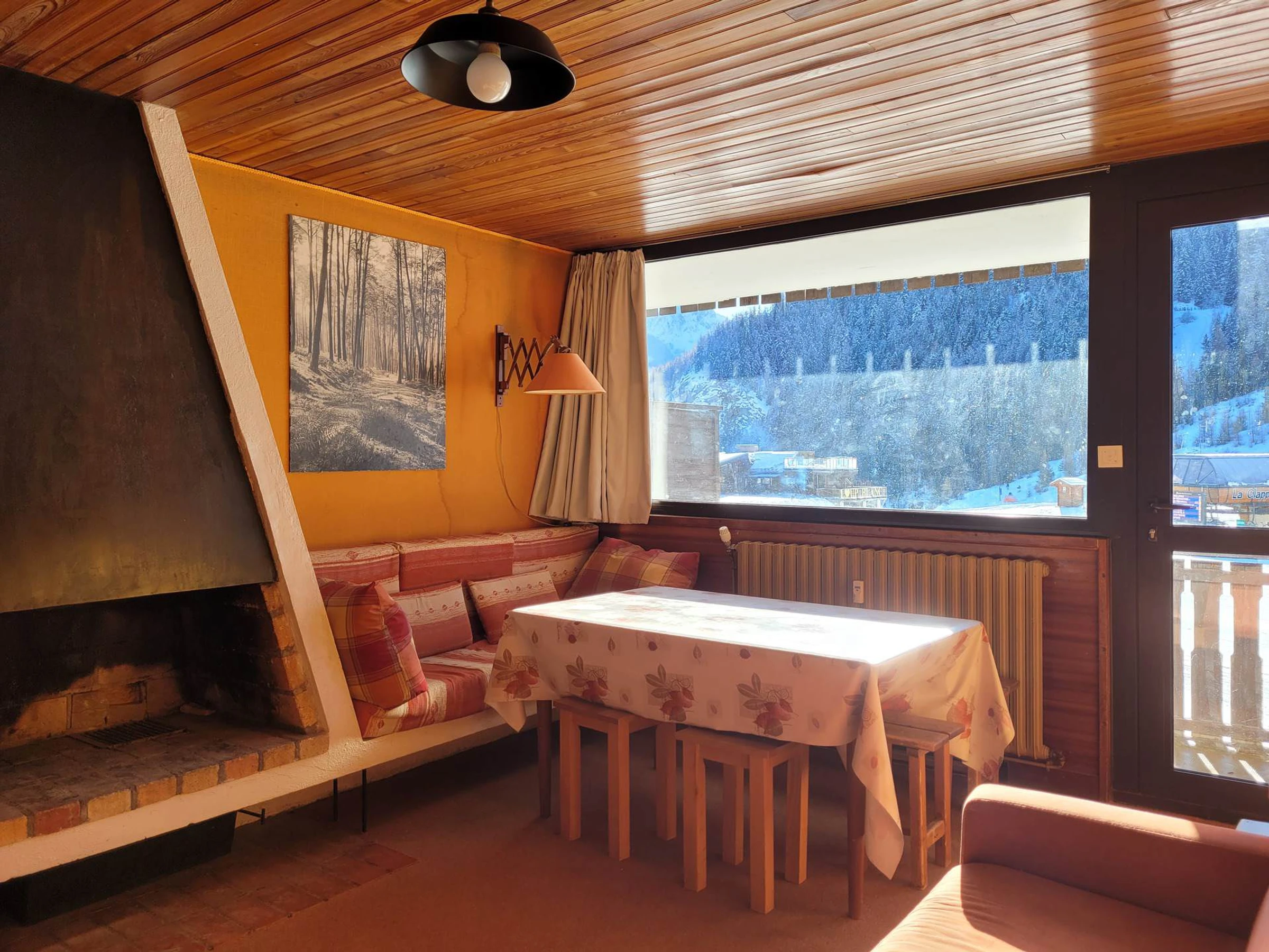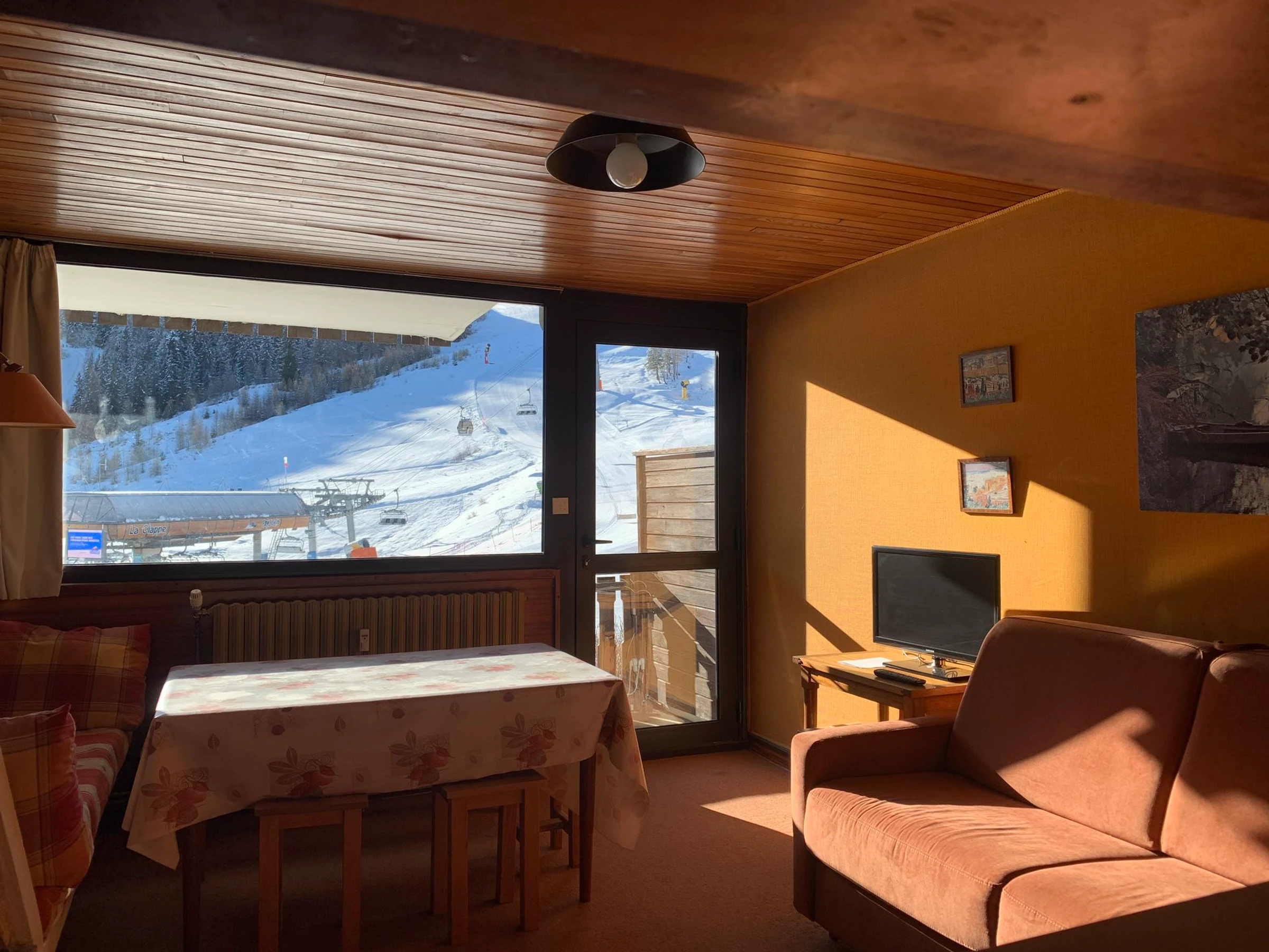 1-Zimmer-Apartment für 4–6 Personen, ca. 42 m². Im 1. Stock, Treppenhaus C, direkt an der Piste gelegen. Südbalkon mit Blick auf die Pisten und den Gipfel des „Pain de Sucre“.