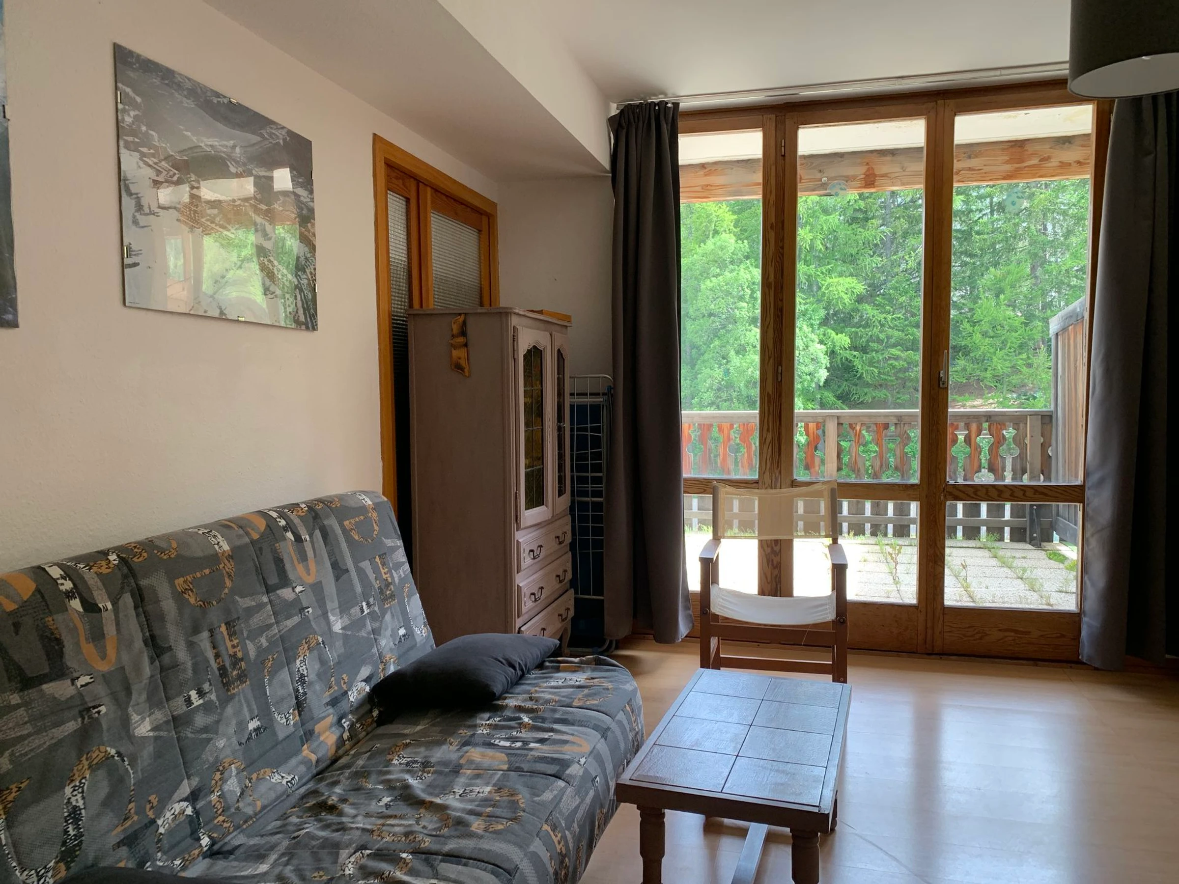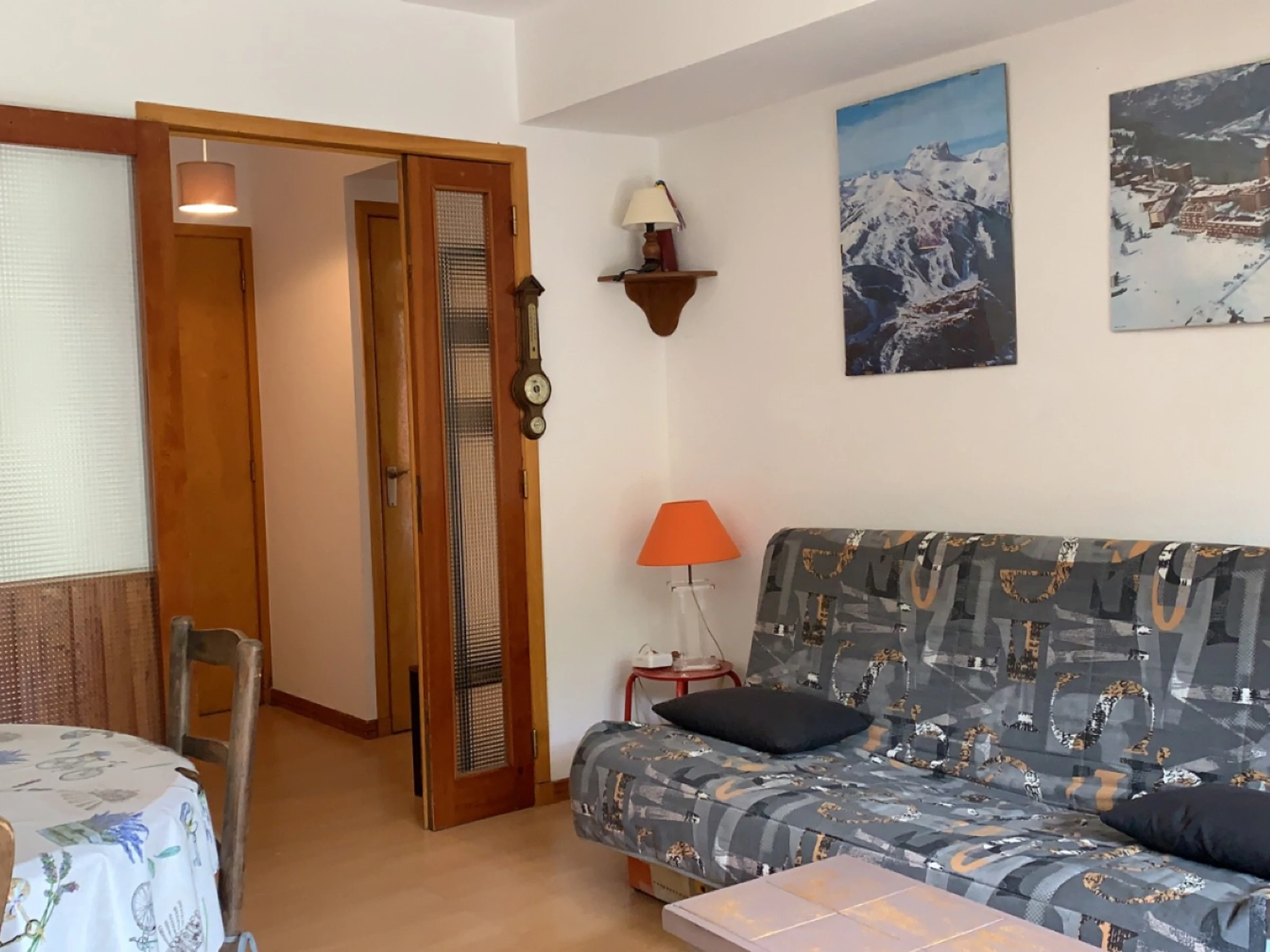 1-Zimmer-Wohnung für 4-6 Personen, ca. 48 m². Im 1. Obergeschoss gelegen. Südlage mit Terrasse und Panoramablick auf die Pisten, die Eisbahn und die Geschäfte.