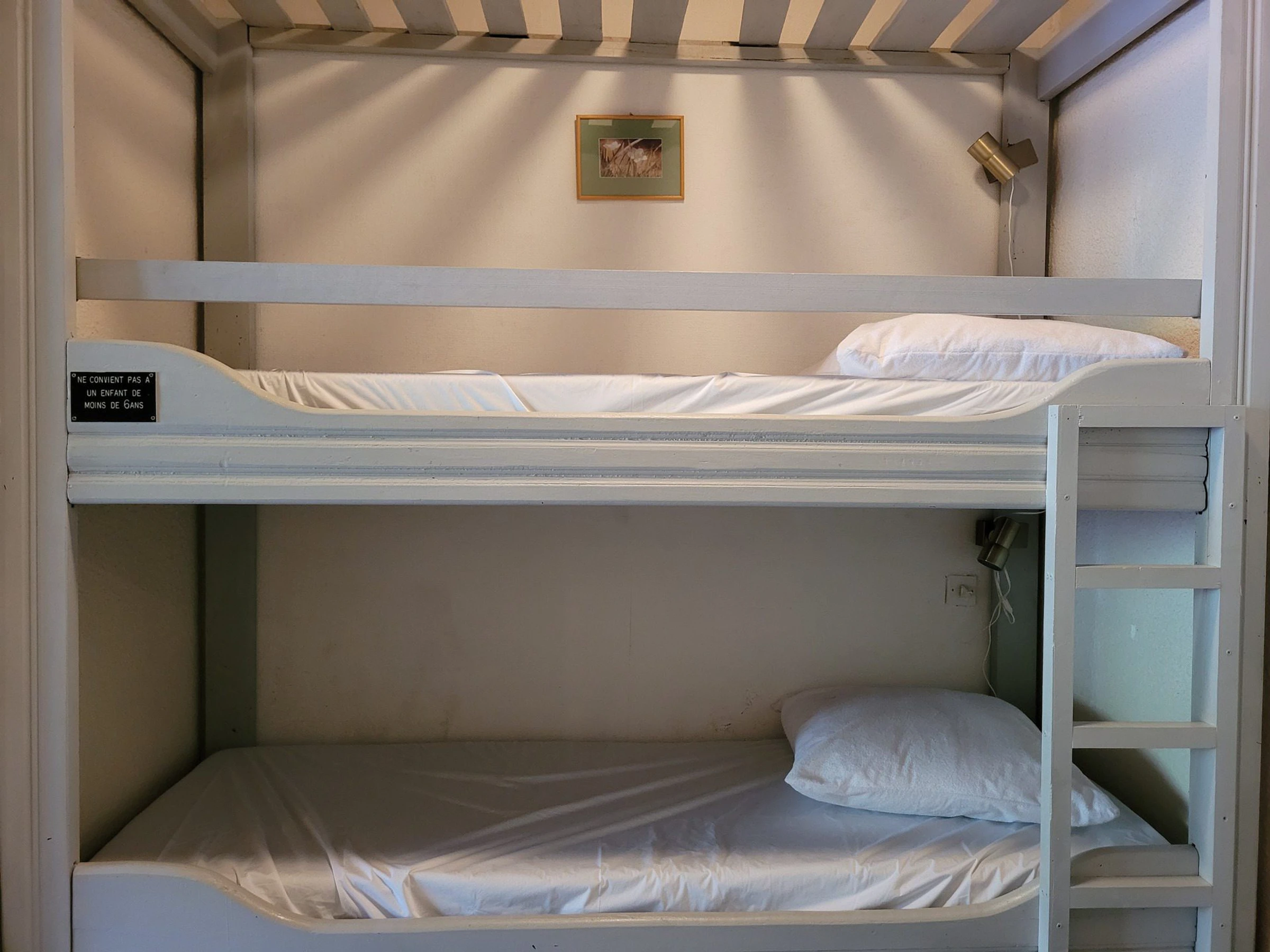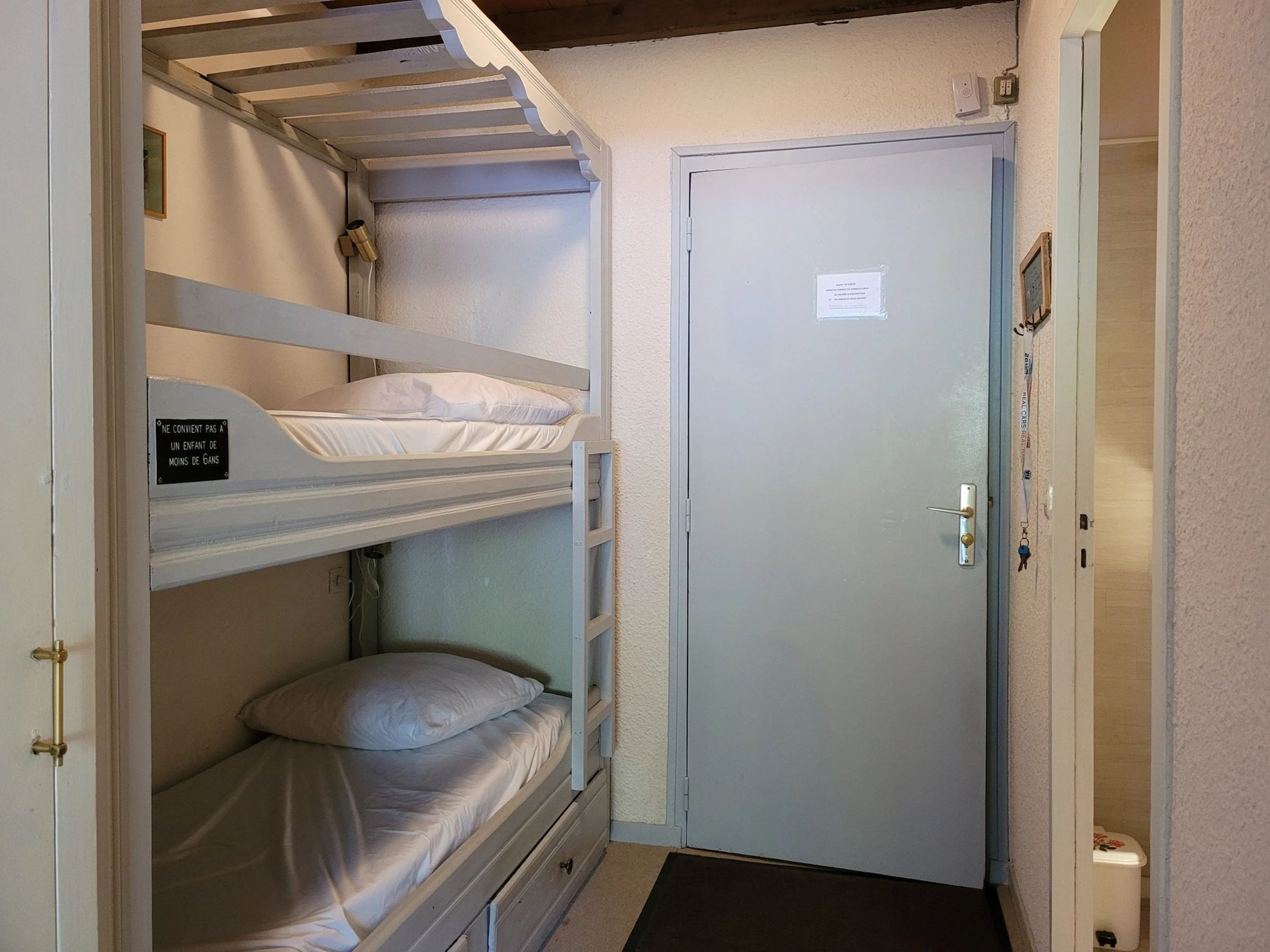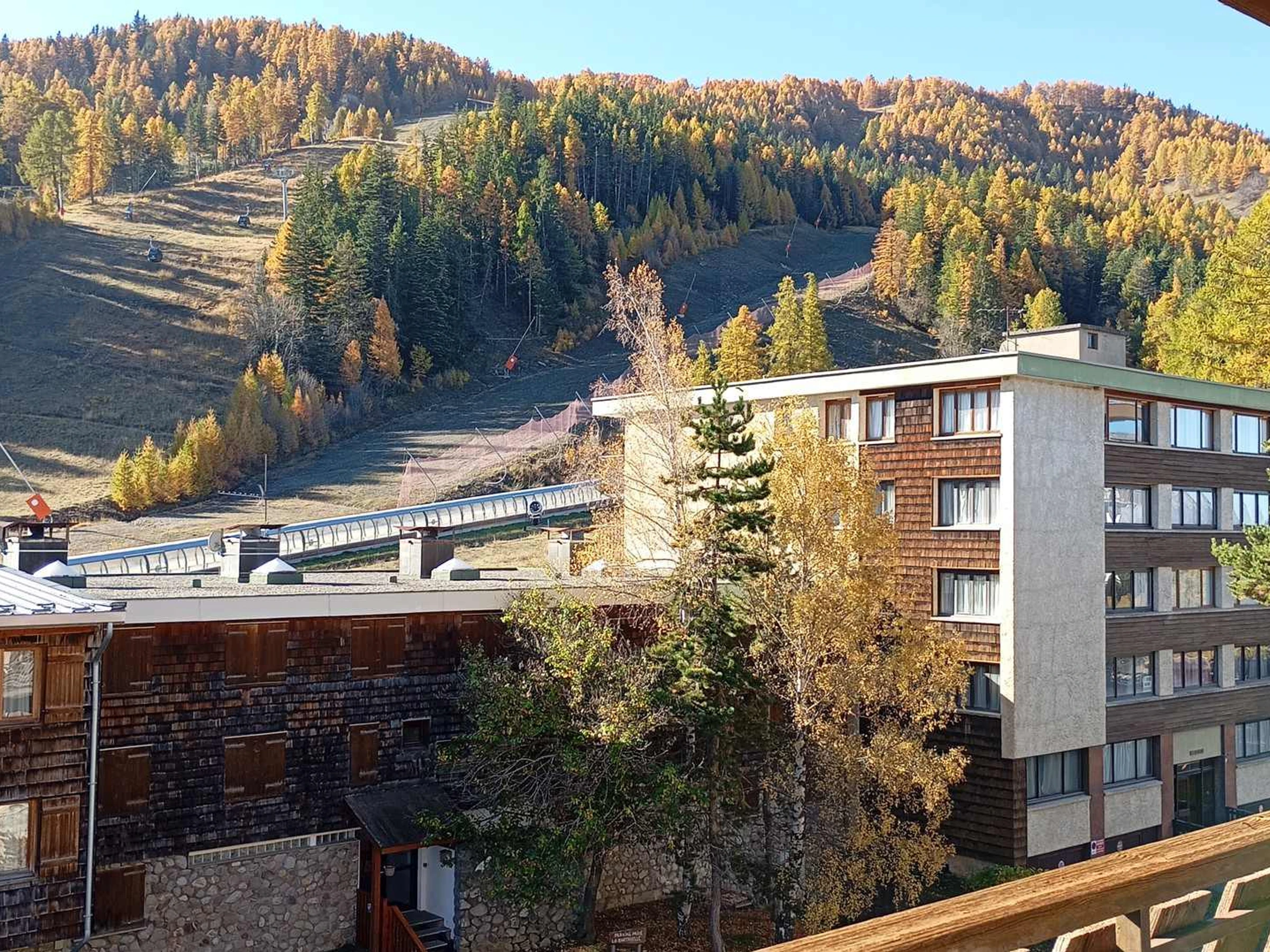 Studio für 4 Personen, ca. 31 m². Im 4. Stock mit Aufzug. Südlage mit Balkon und Blick auf die Pisten und den Berg „Pain de Sucre“.