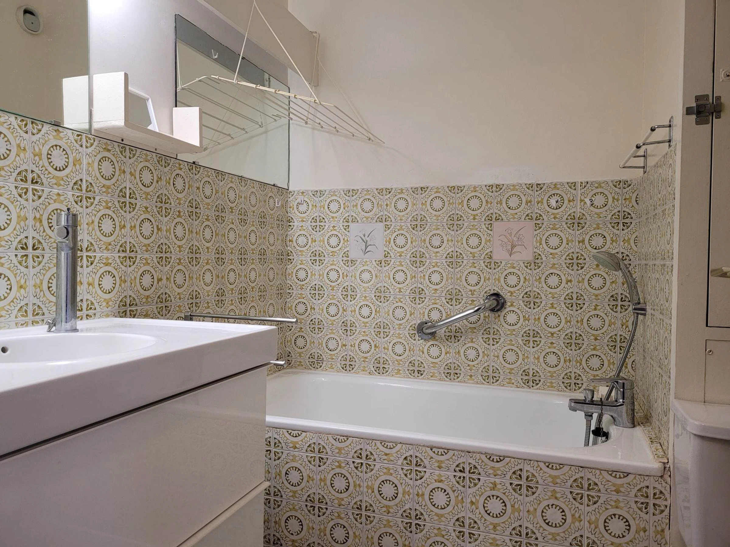 * Badezimmer mit Badewanne und WC.